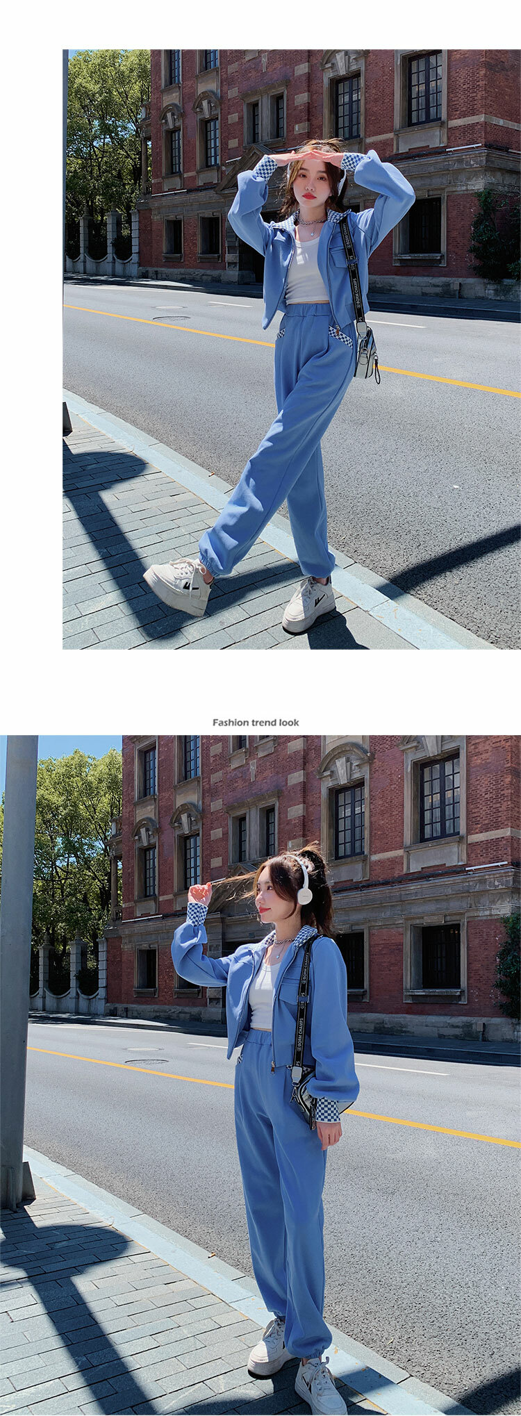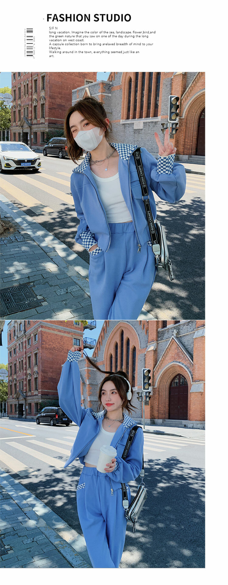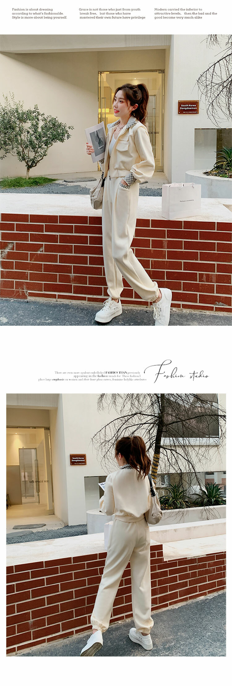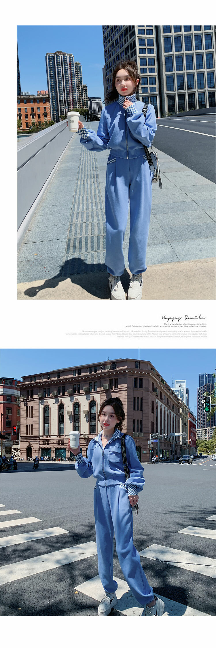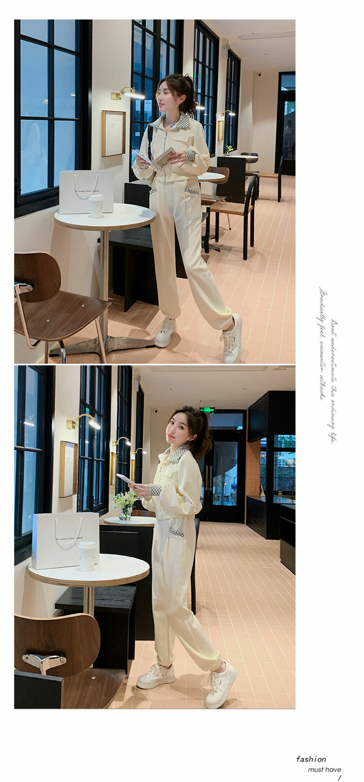 獨家訂製│韓系休閒感格紋翻領外套+休閒褲兩件式套裝組-2色(03H6032)