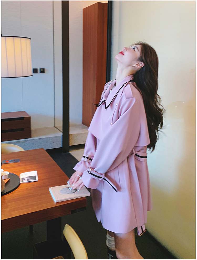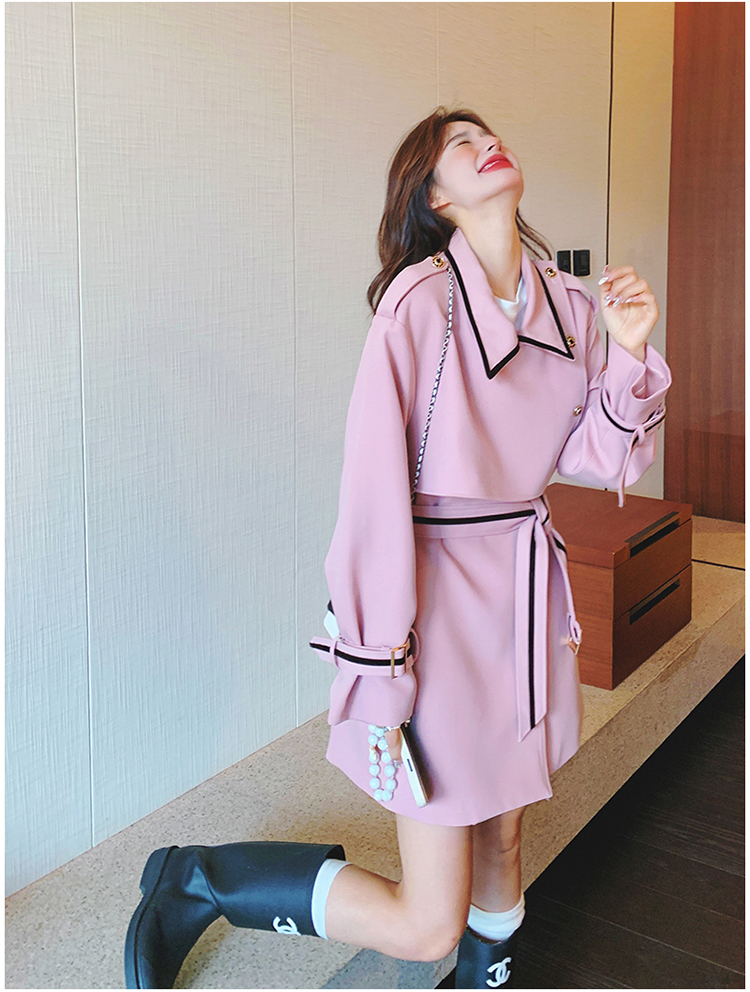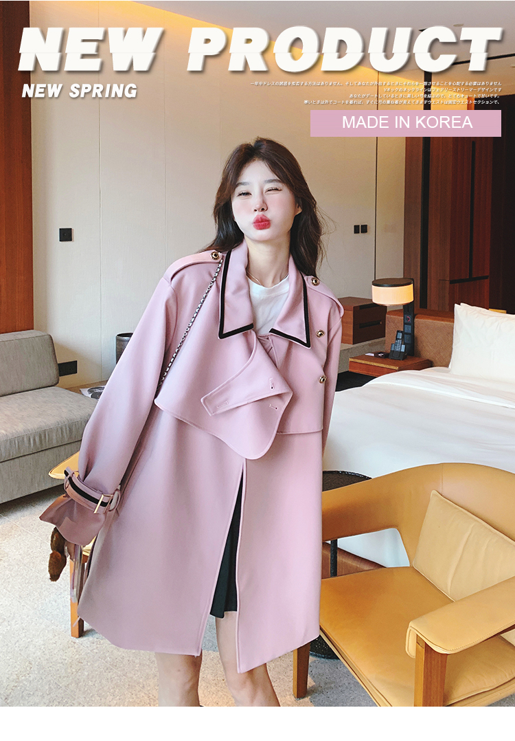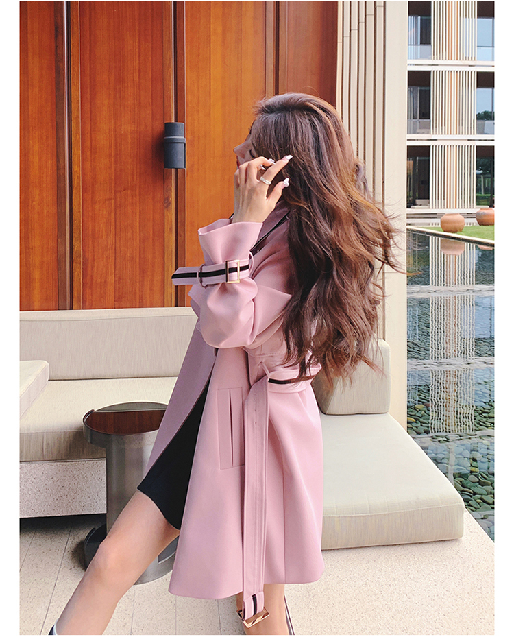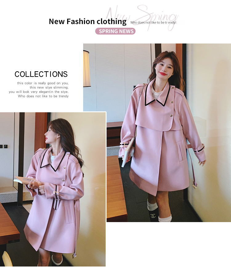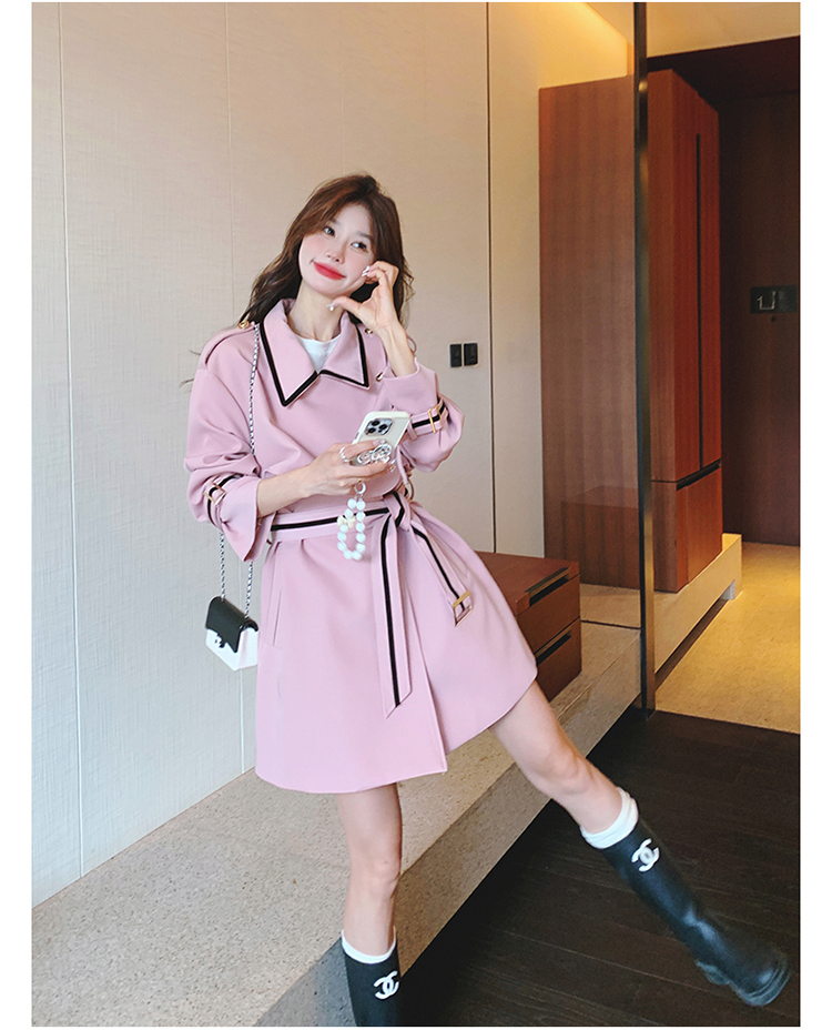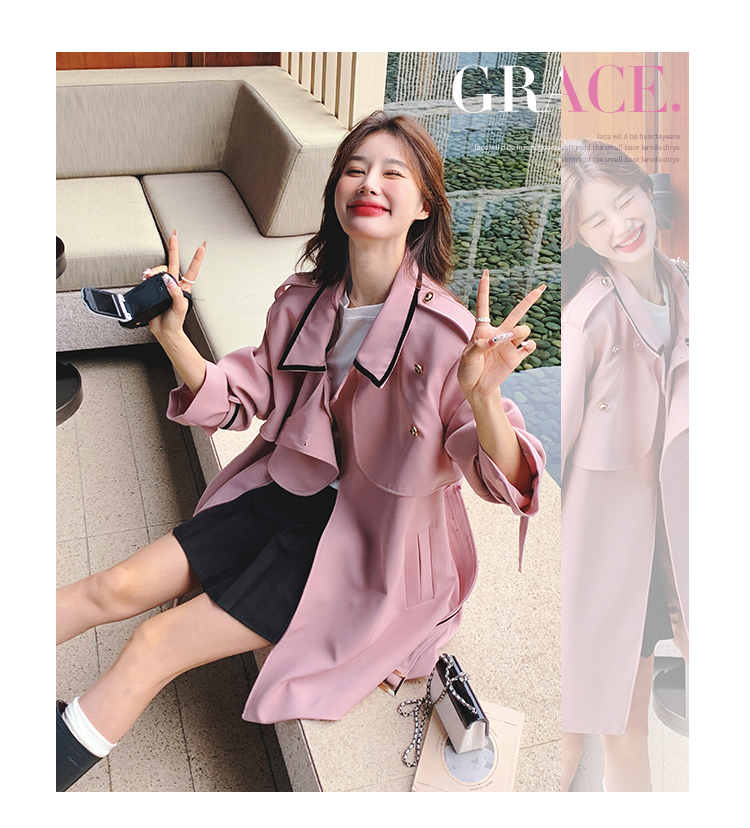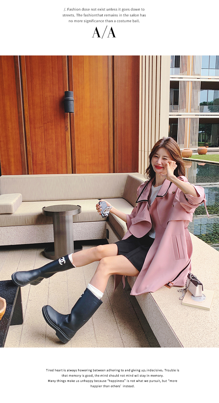 獨家訂製│韓系知性百搭拼接造型繫帶風衣外套(03H6041)