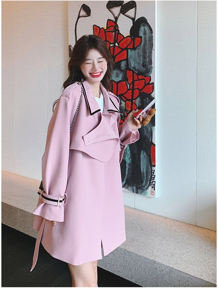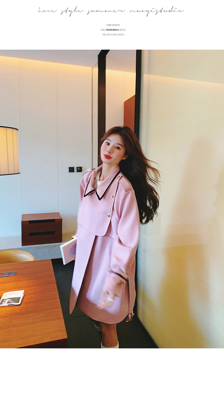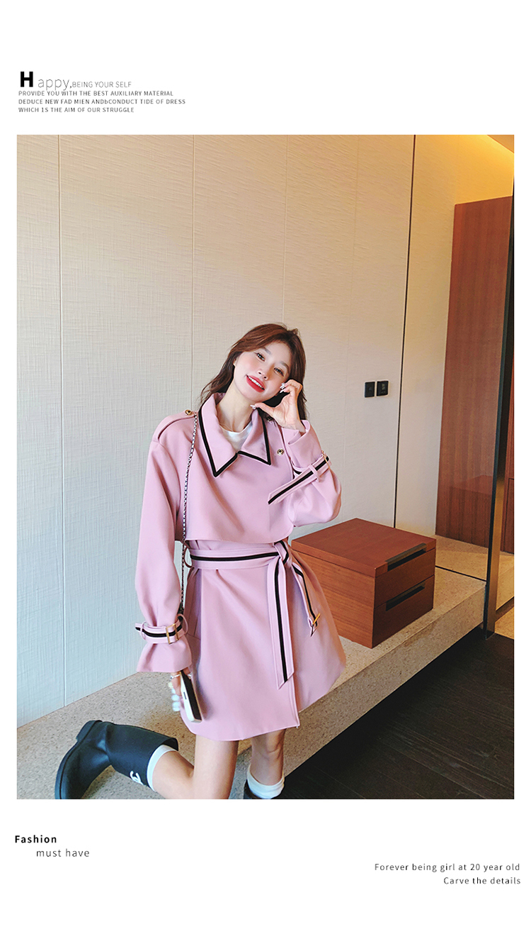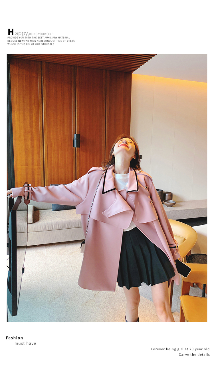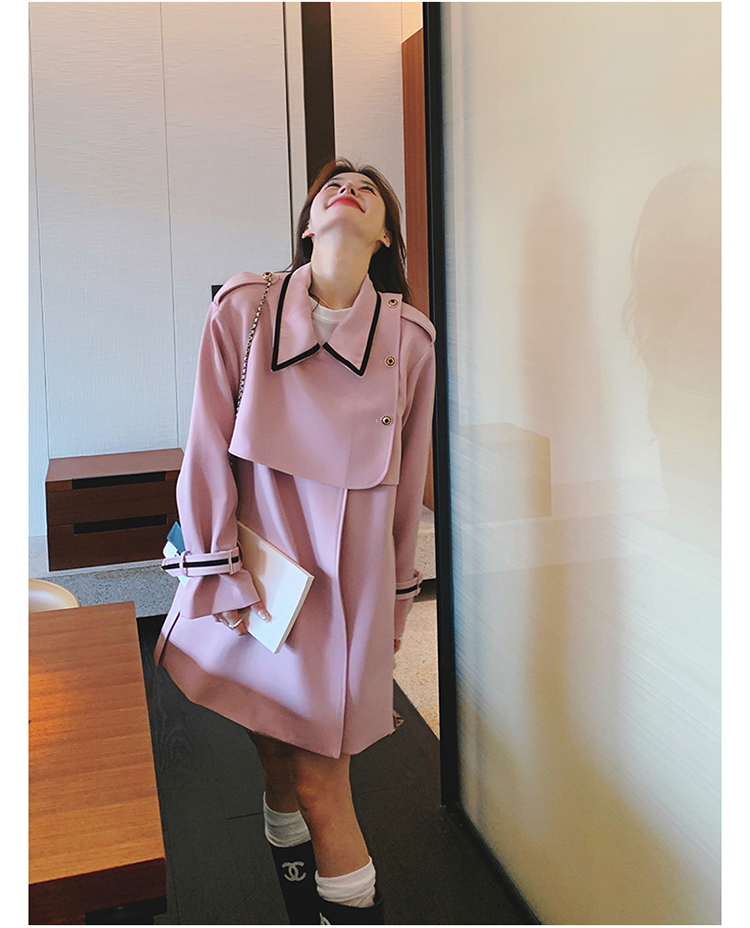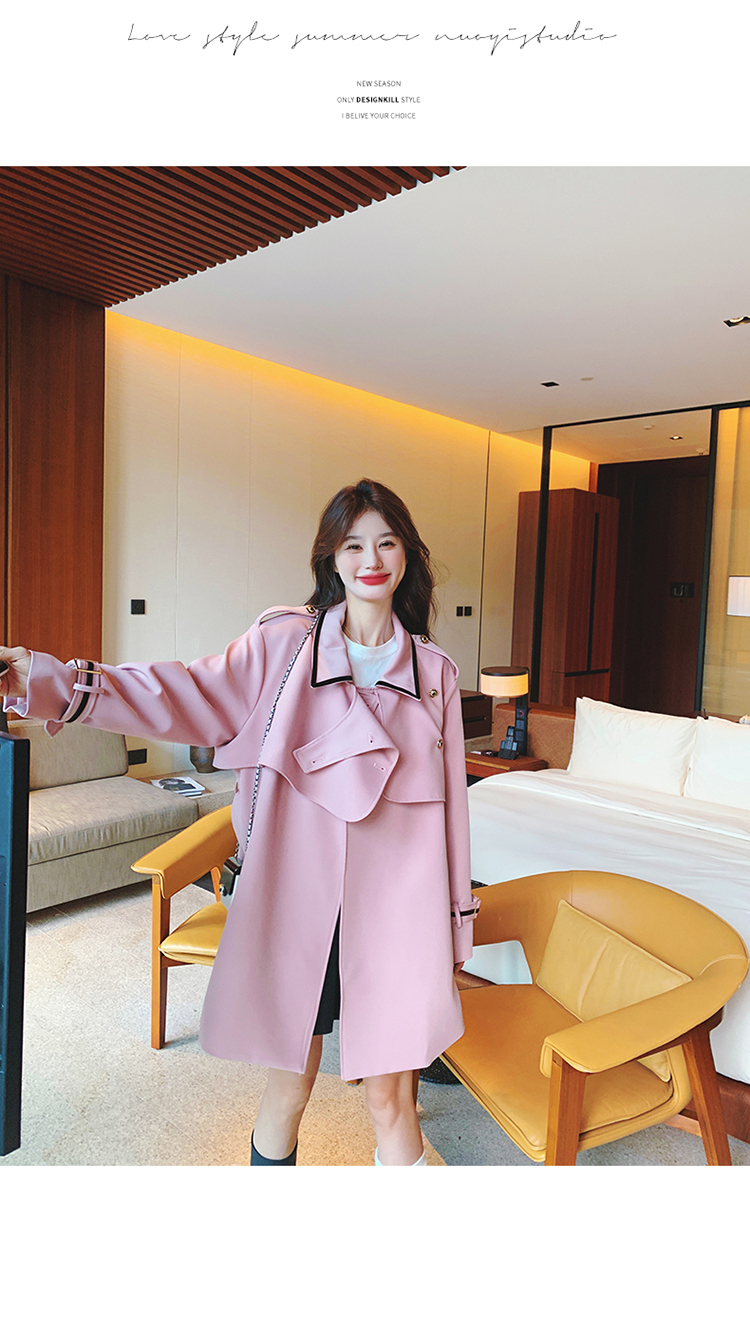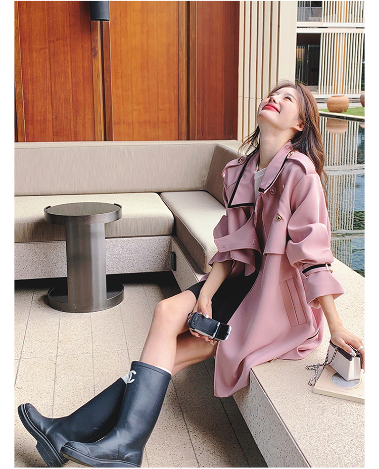 獨家訂製│韓系知性百搭拼接造型繫帶風衣外套(03H6041)