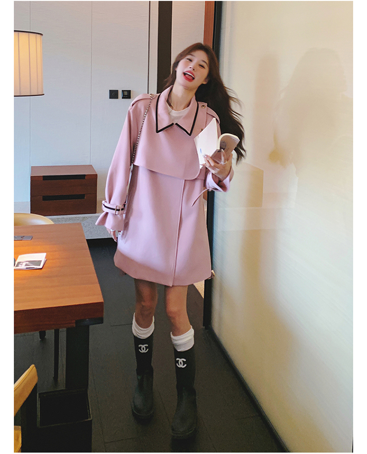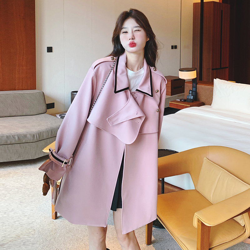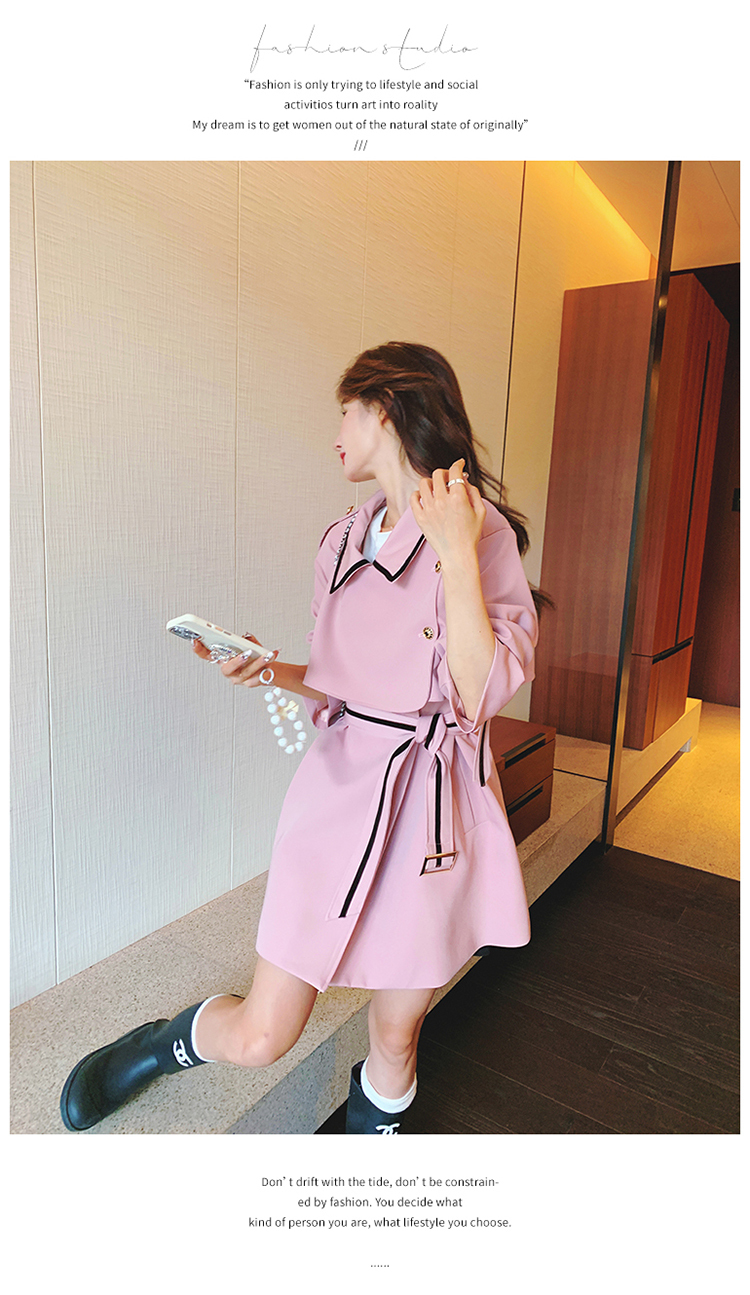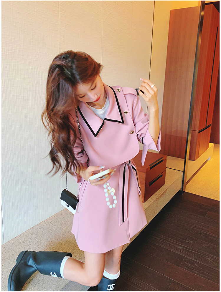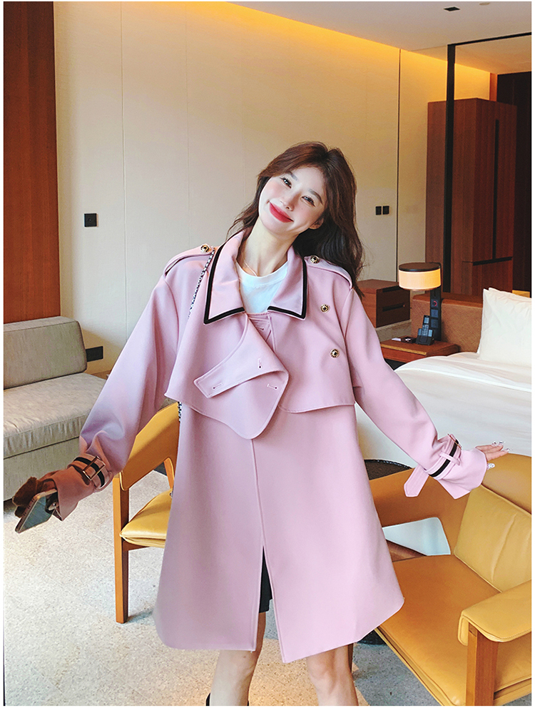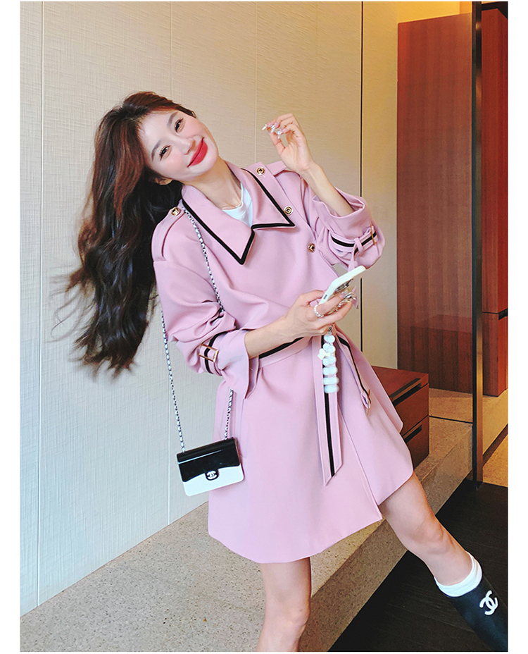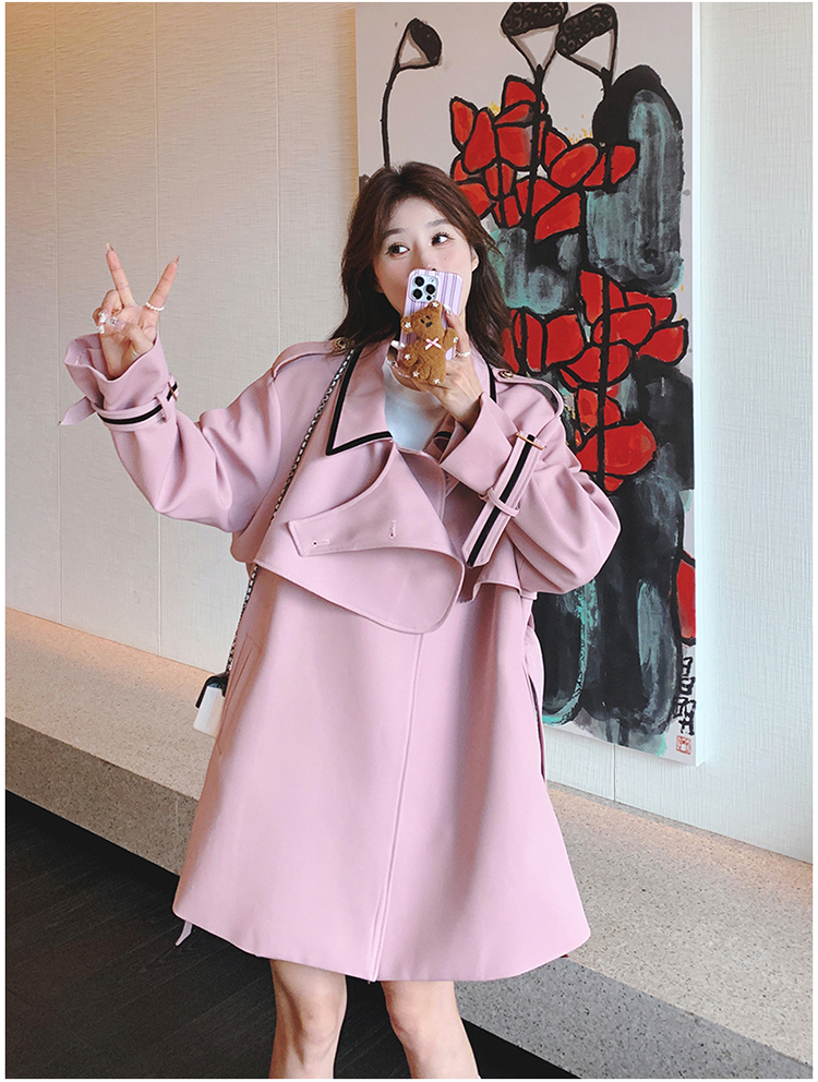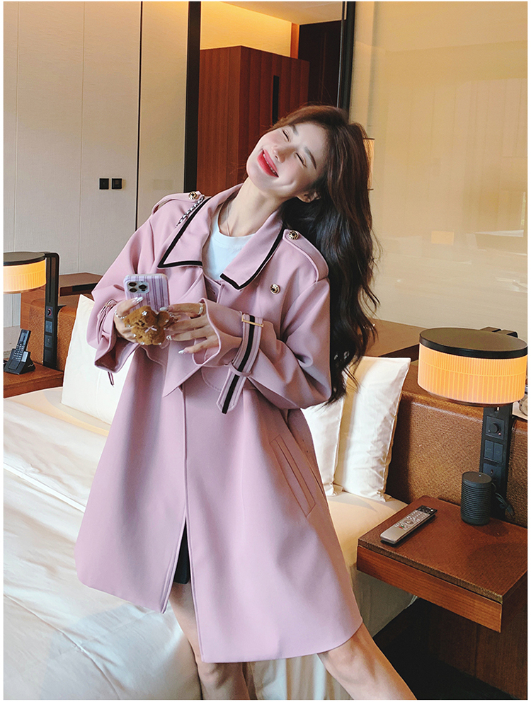 獨家訂製│韓系知性百搭拼接造型繫帶風衣外套(03H6041)
