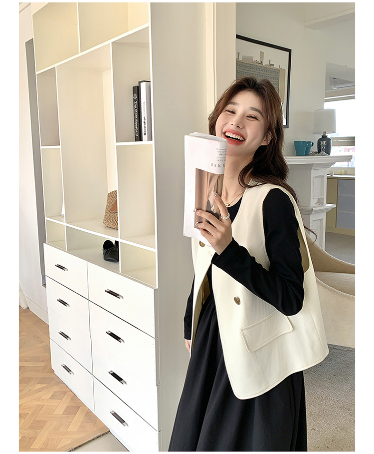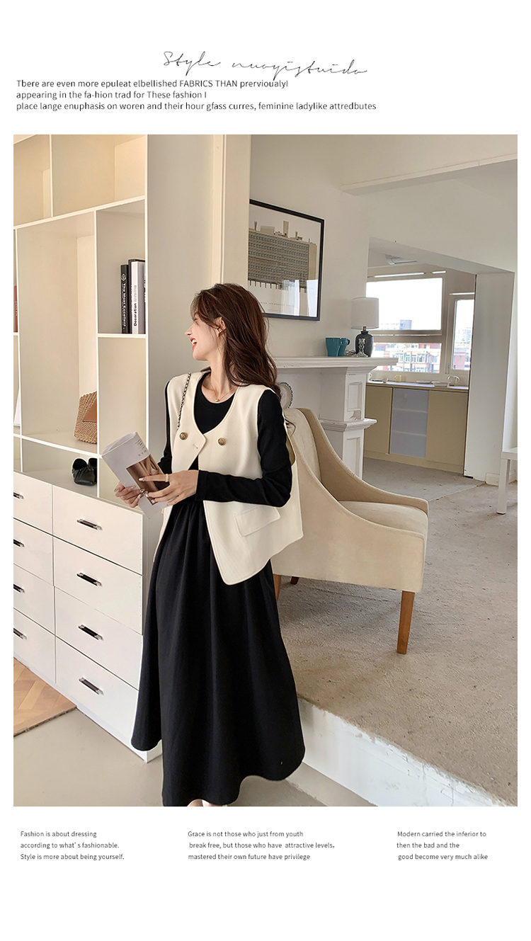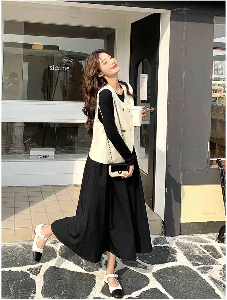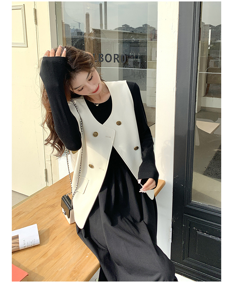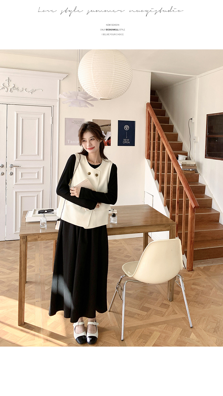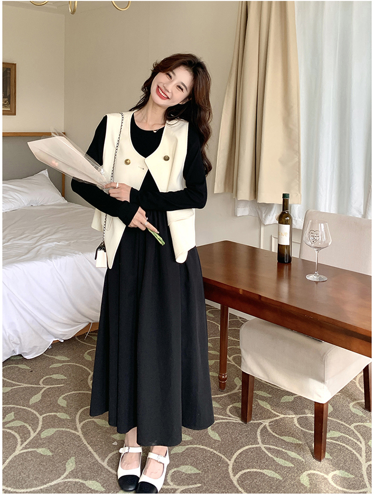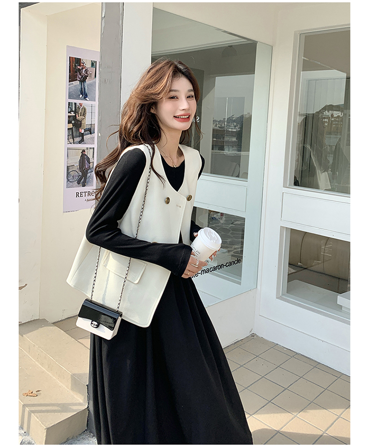 獨家訂製│韓系甜姐兒雙排釦背心+收腰連衣裙兩件式套裝組(03H6042)