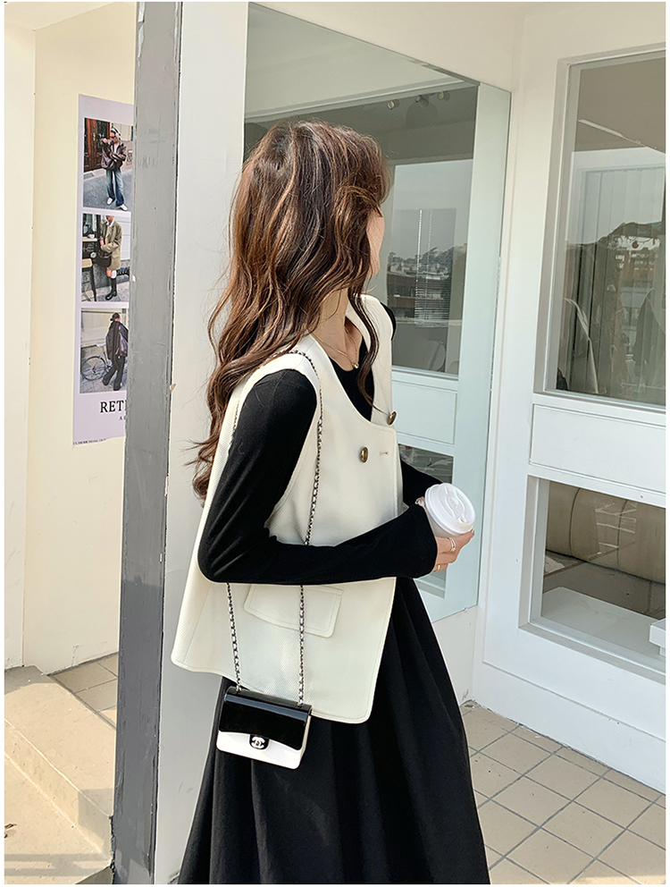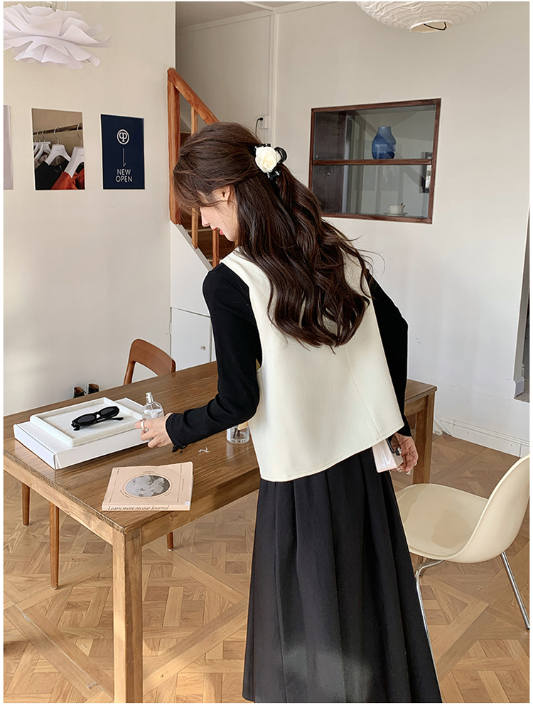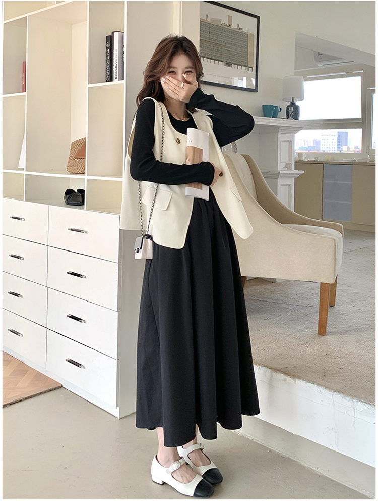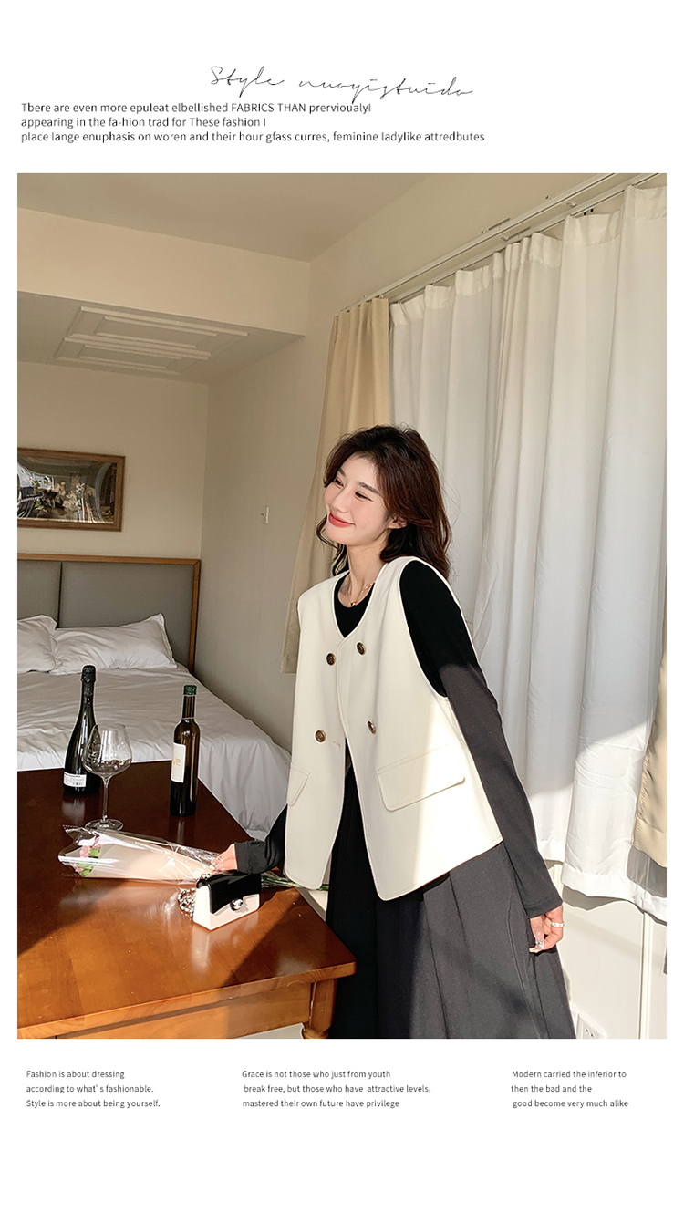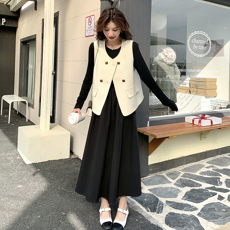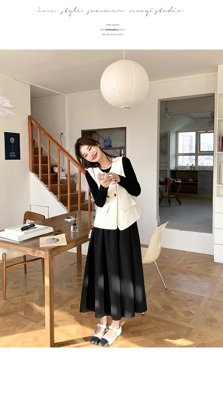獨家訂製│韓系甜姐兒雙排釦背心+收腰連衣裙兩件式套裝組(03H6042)