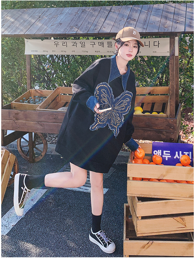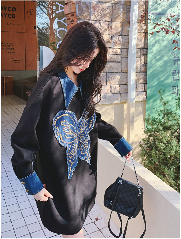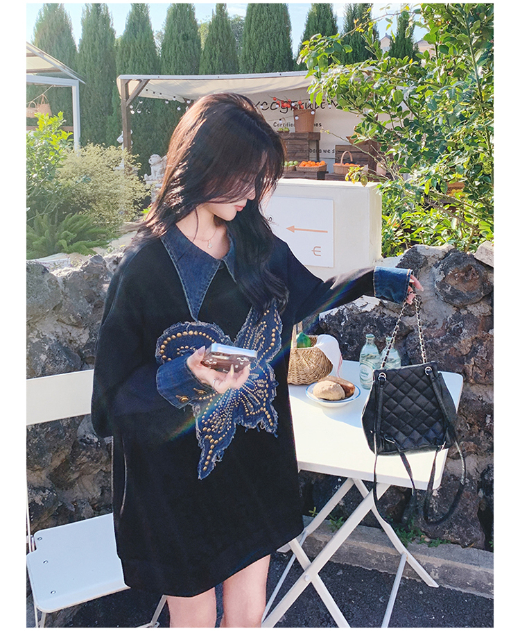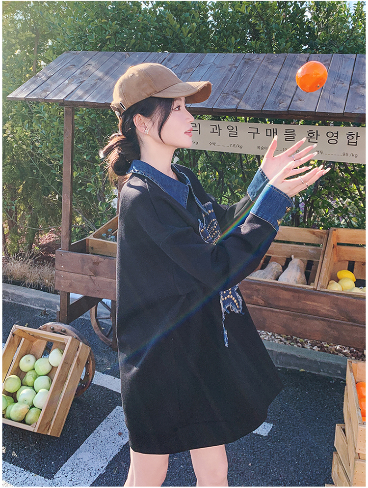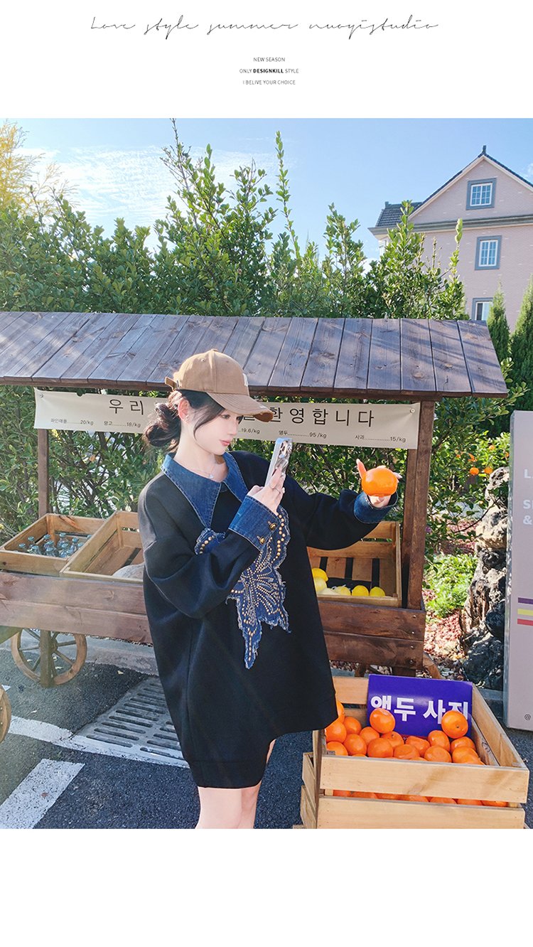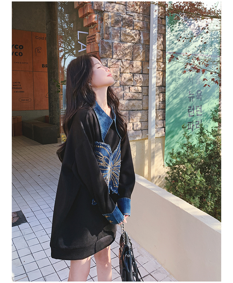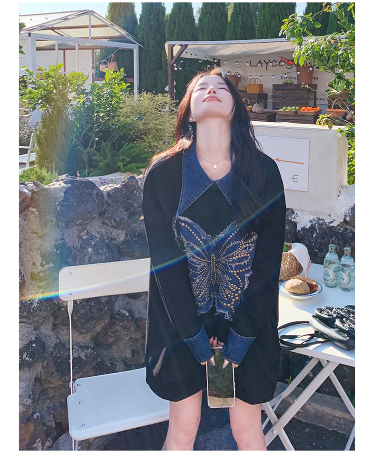 獨家訂製│韓系甜酷風重工刺繡牛仔拼接長版衣(03H6045)