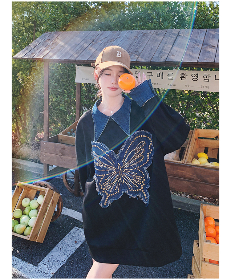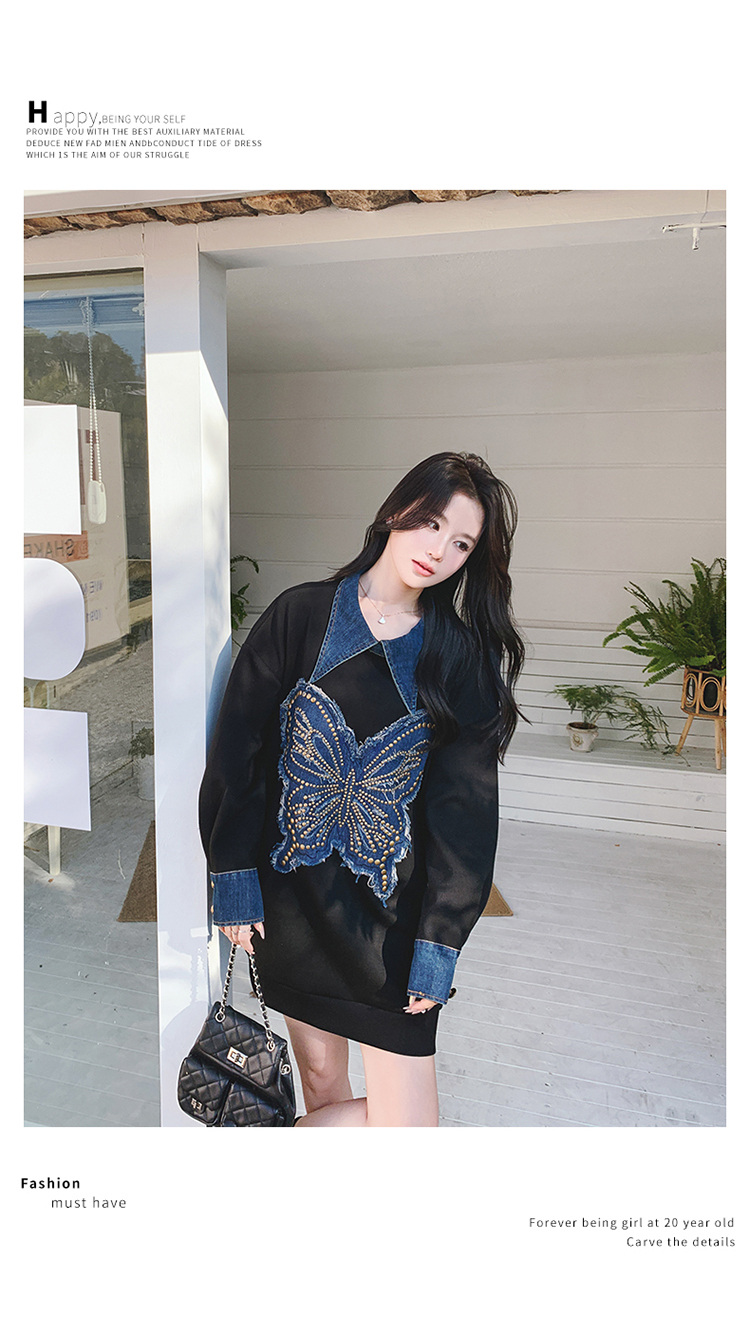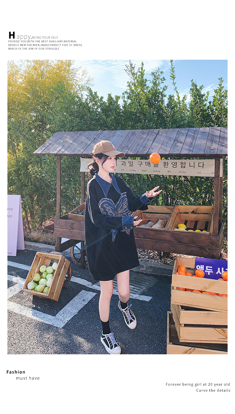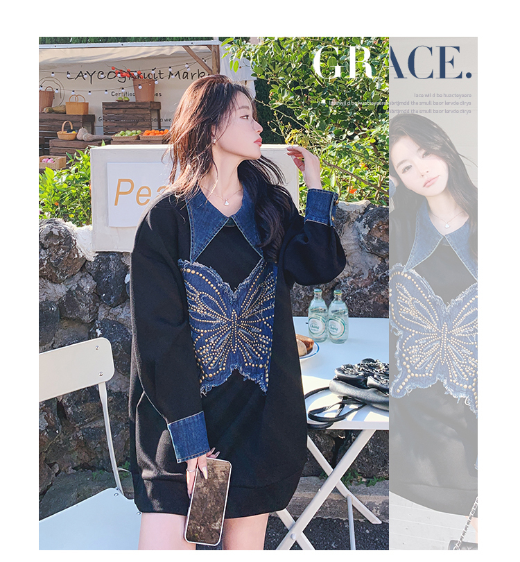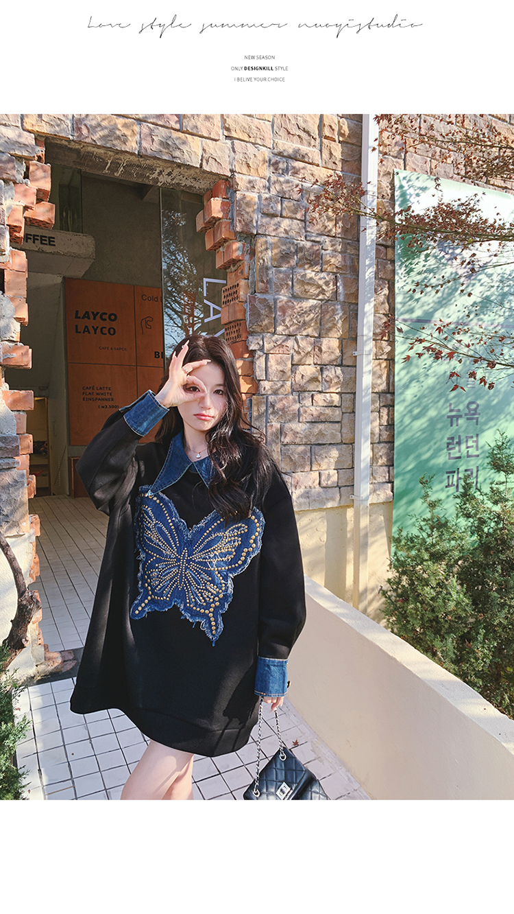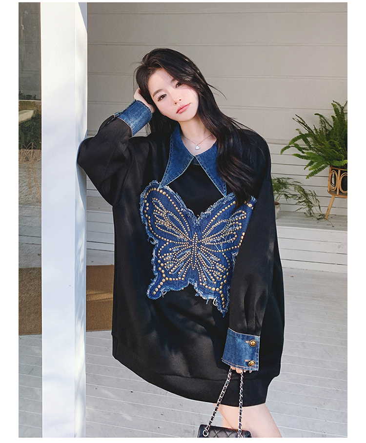 獨家訂製│韓系甜酷風重工刺繡牛仔拼接長版衣(03H6045)