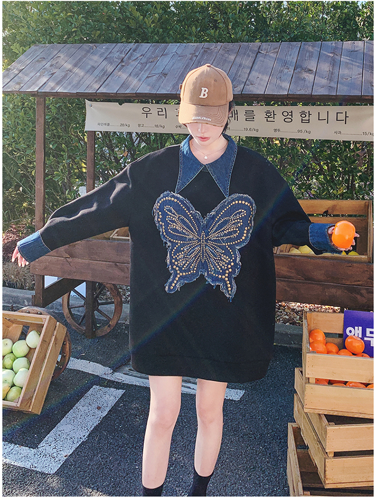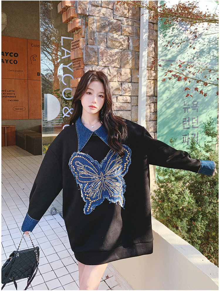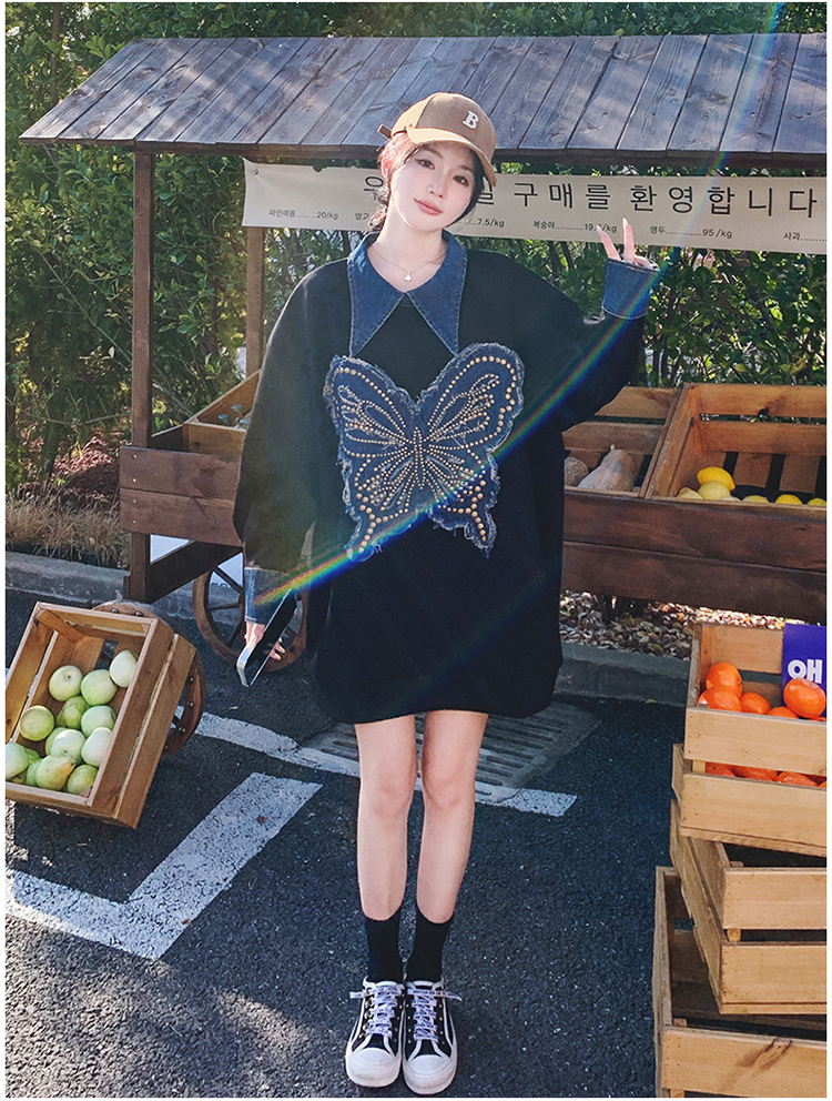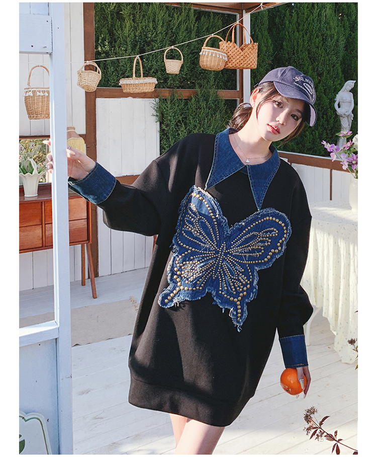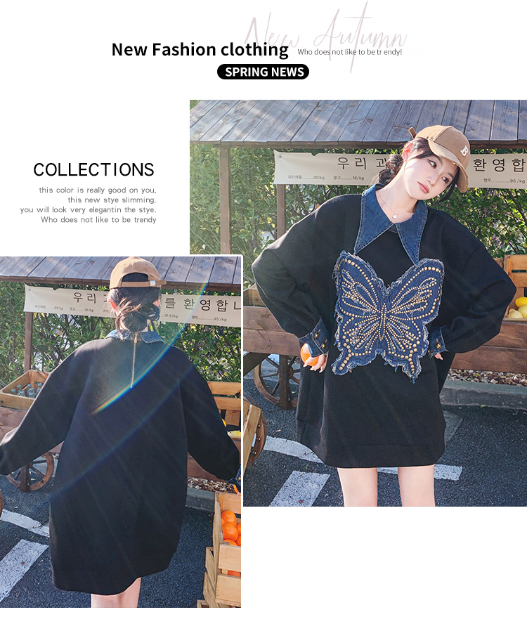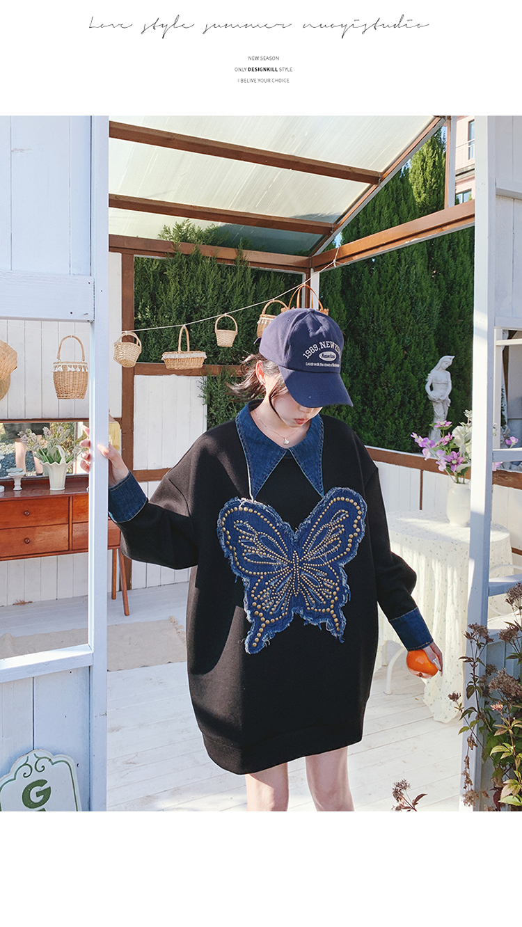 獨家訂製│韓系甜酷風重工刺繡牛仔拼接長版衣(03H6045)