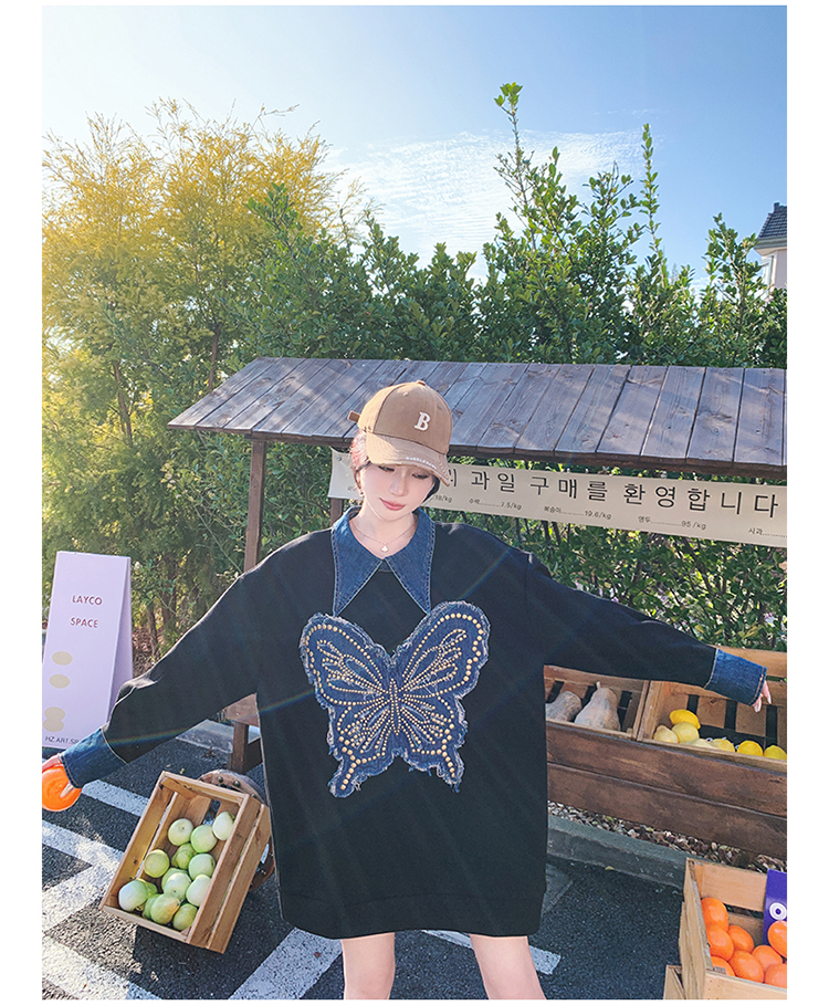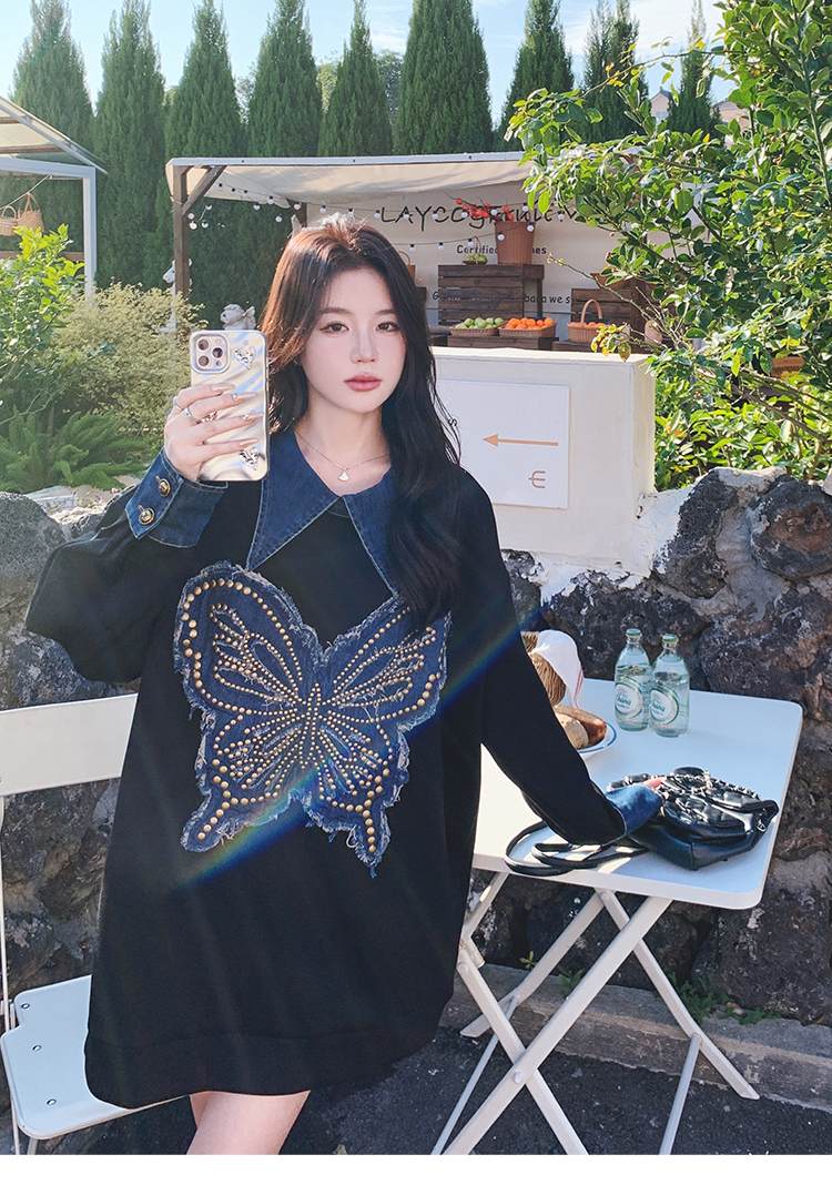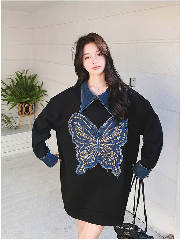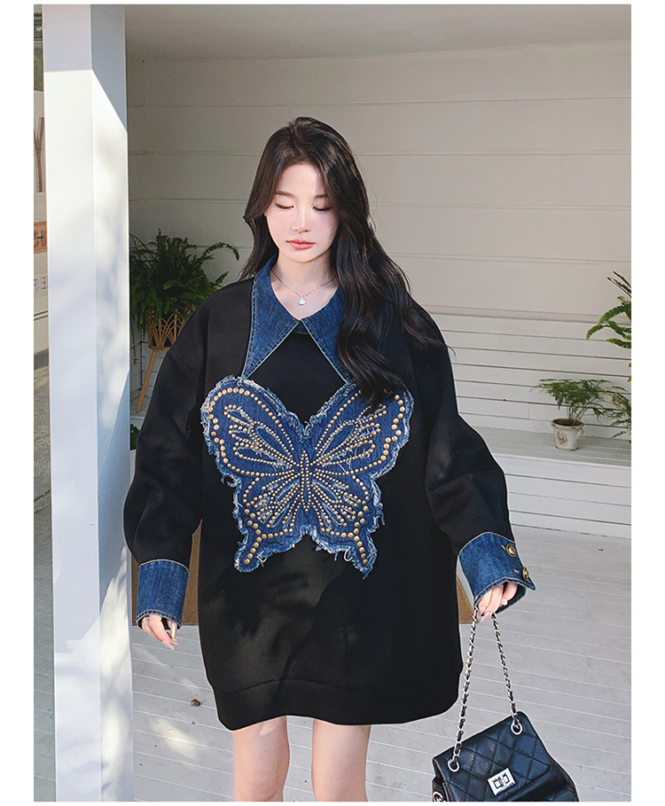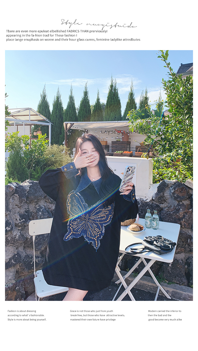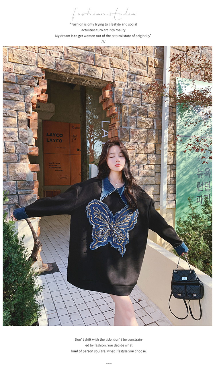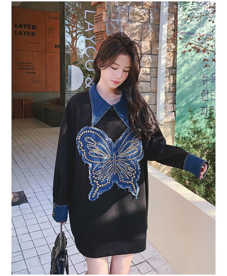 獨家訂製│韓系甜酷風重工刺繡牛仔拼接長版衣(03H6045)