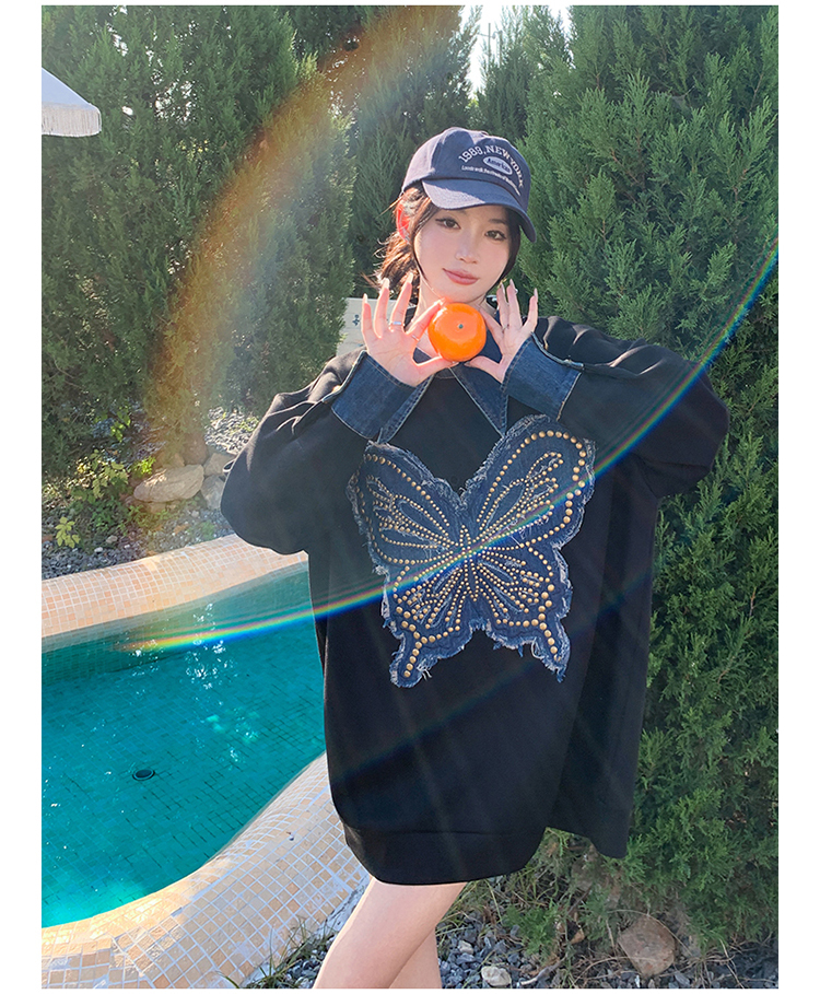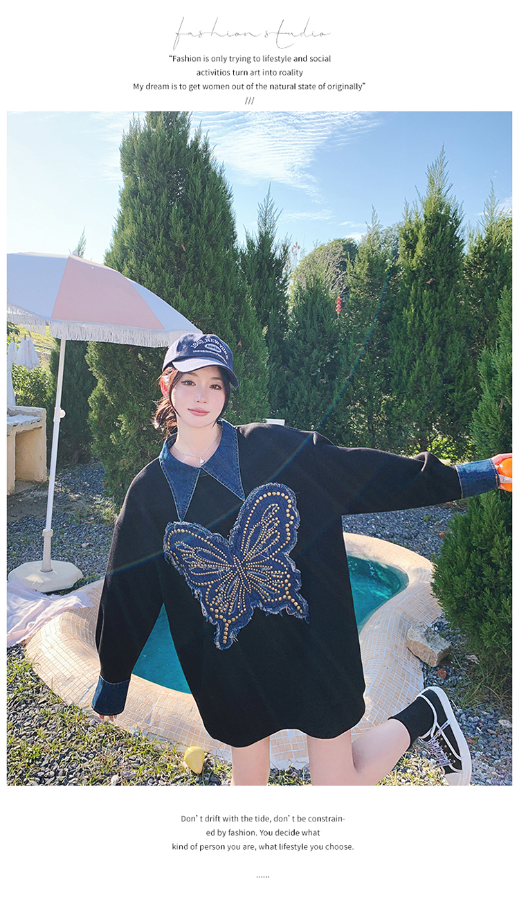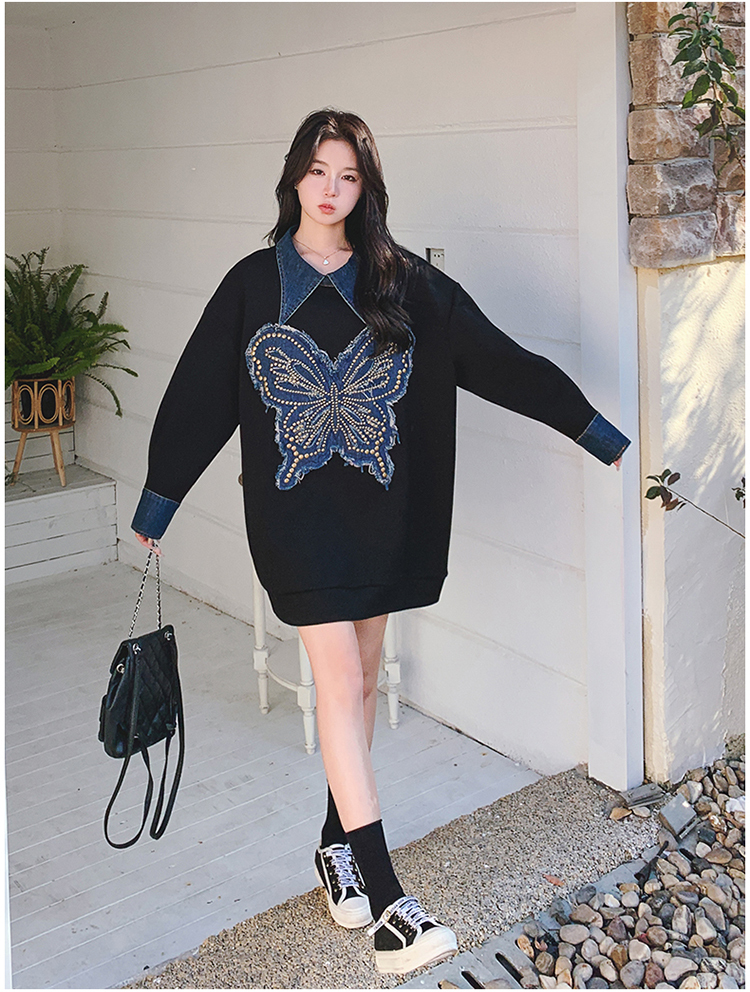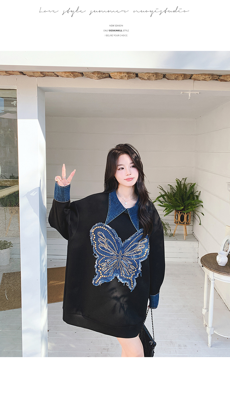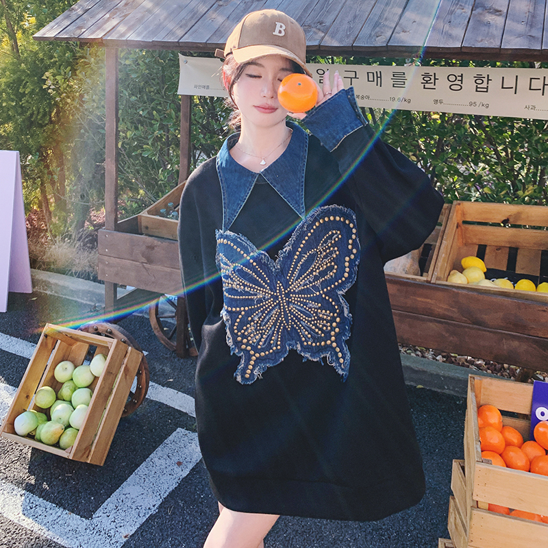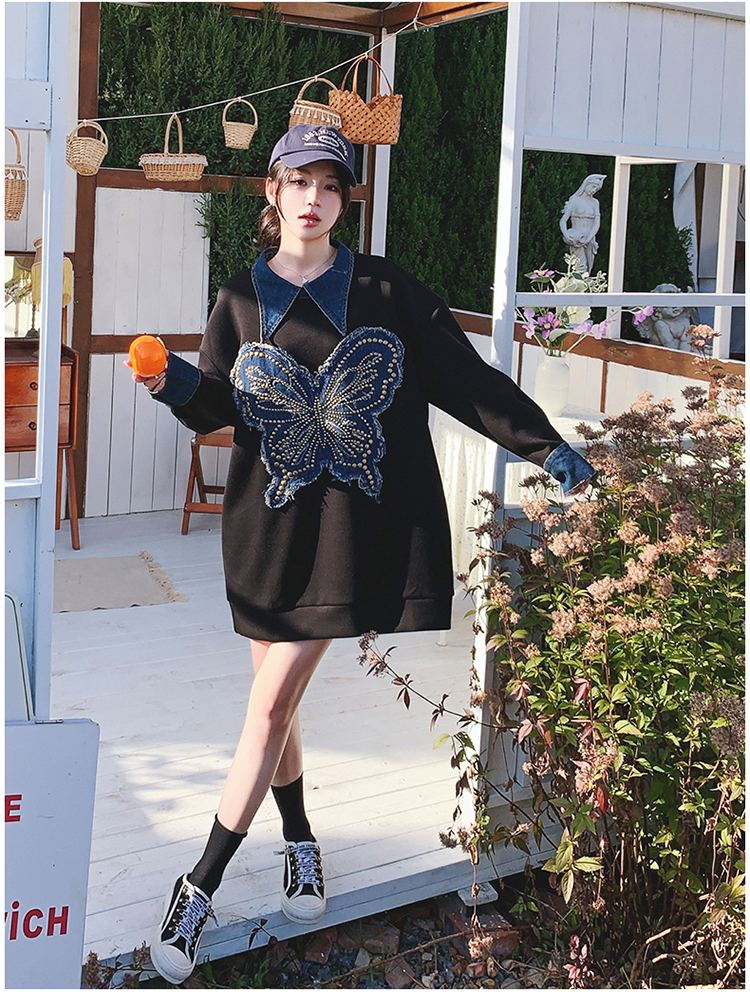 獨家訂製│韓系甜酷風重工刺繡牛仔拼接長版衣(03H6045)