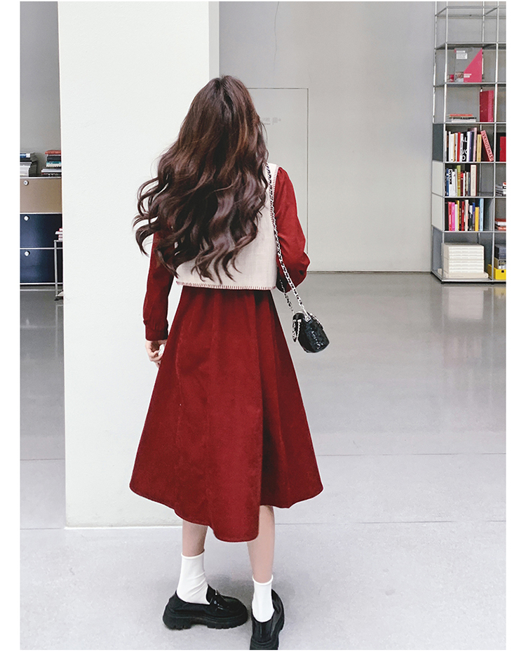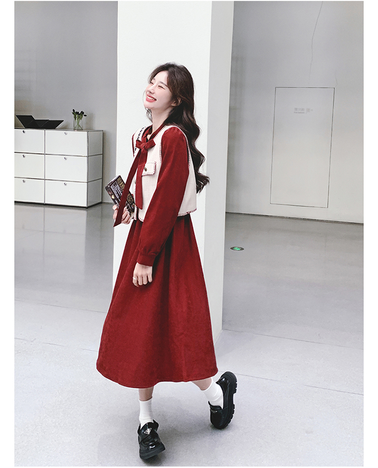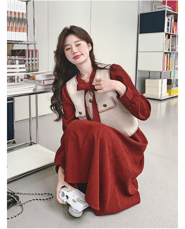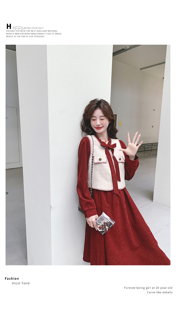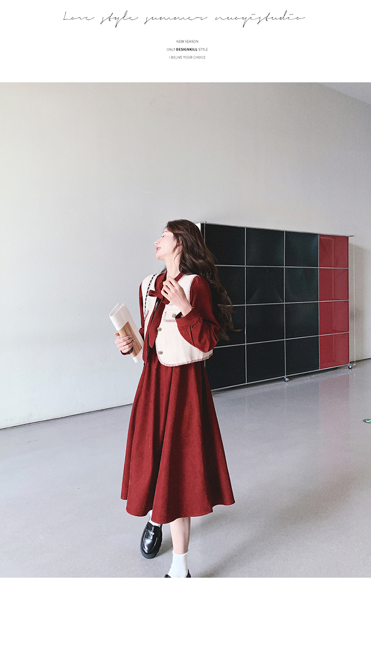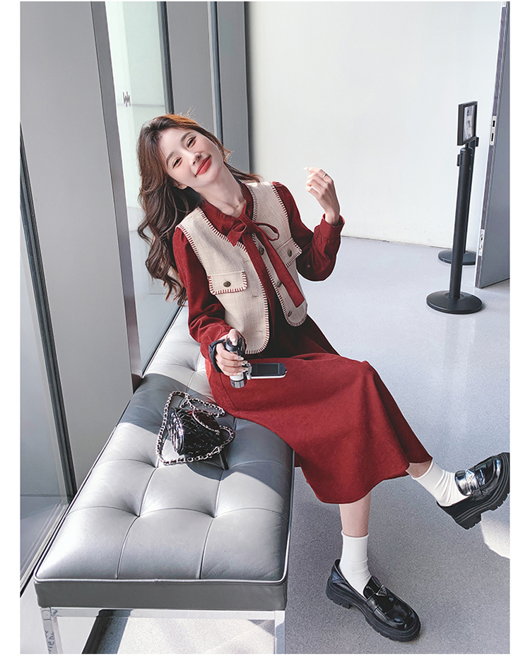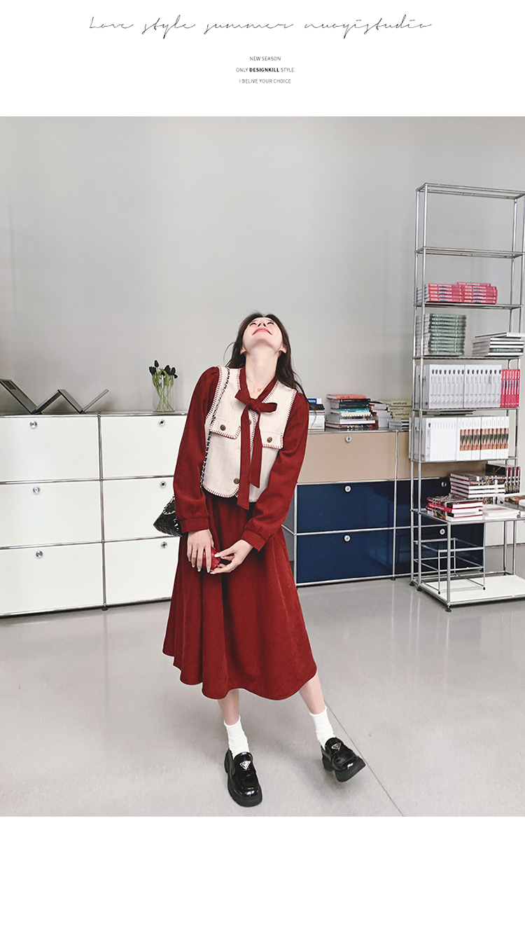 獨家訂製│韓系甜姐兒假口袋背心+繫帶收腰連衣裙兩件式套裝組(03H6047)