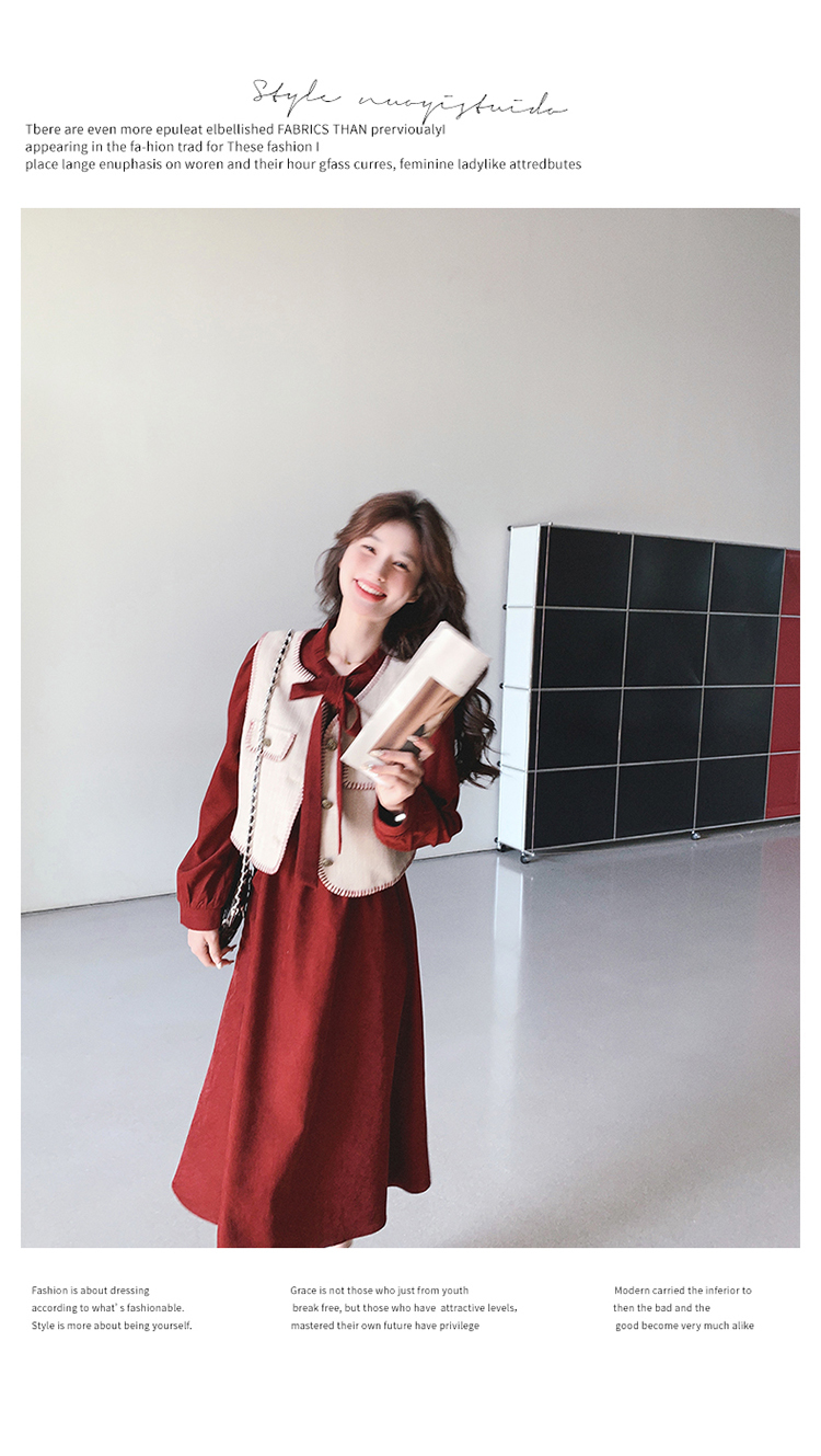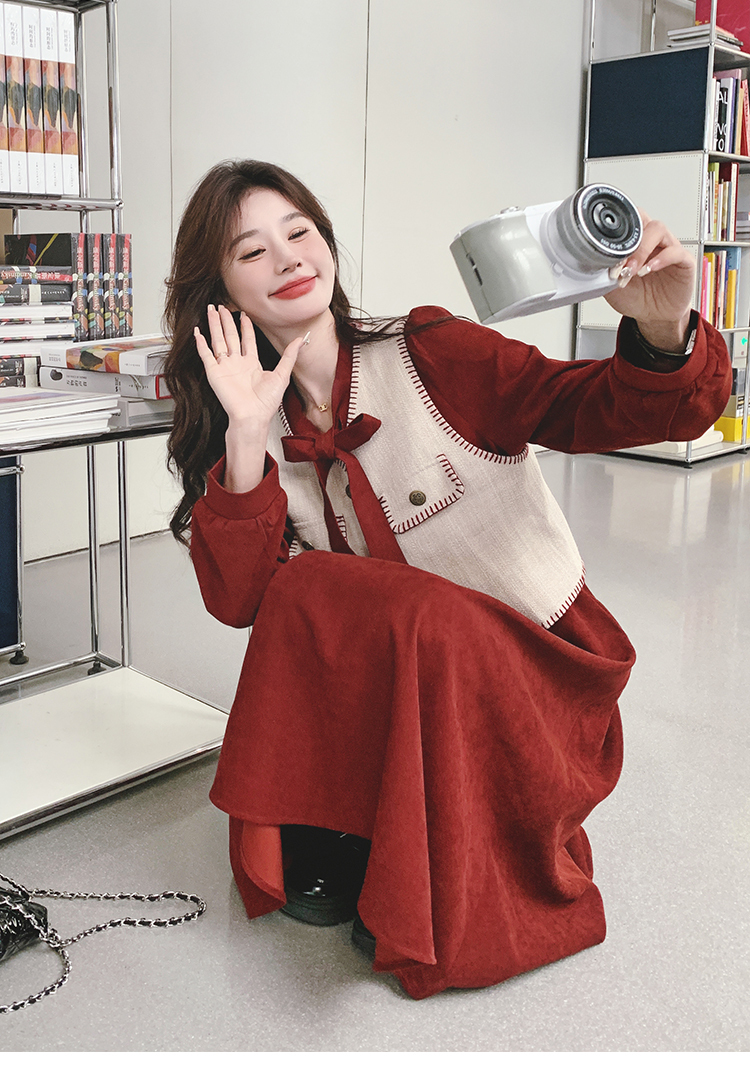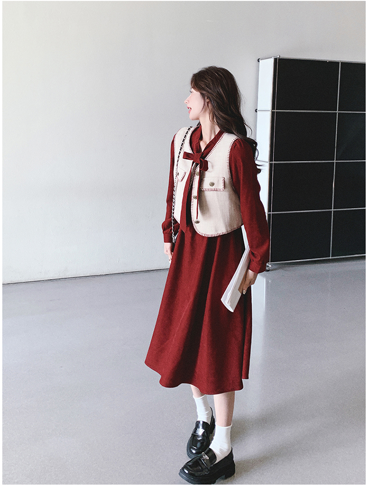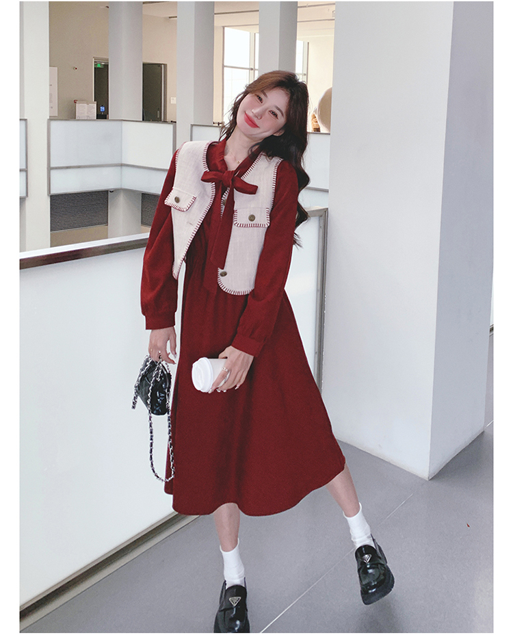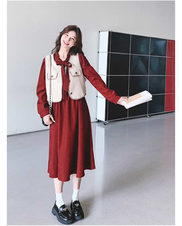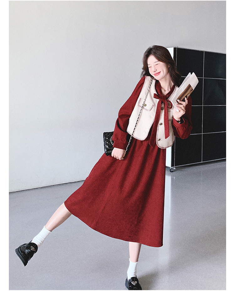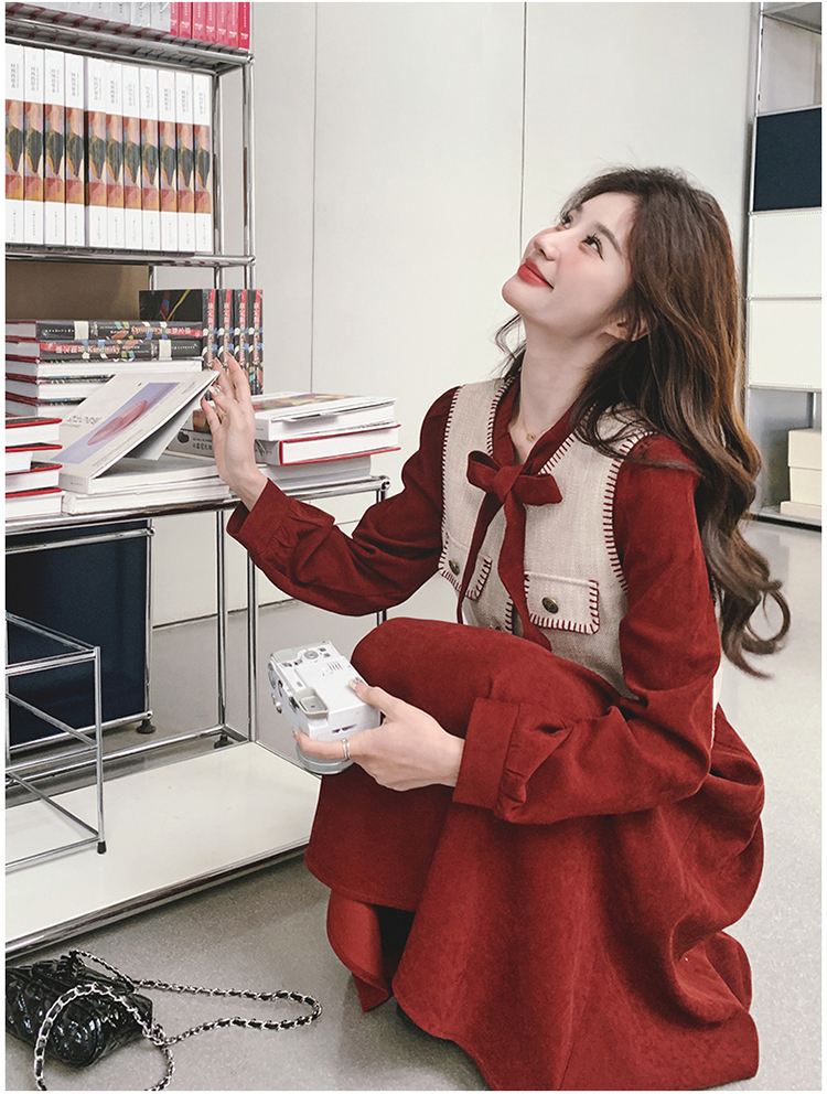 獨家訂製│韓系甜姐兒假口袋背心+繫帶收腰連衣裙兩件式套裝組(03H6047)