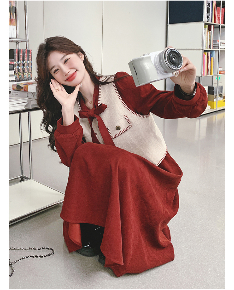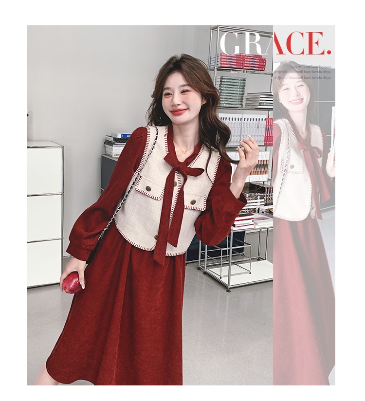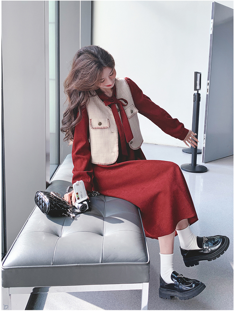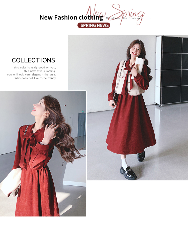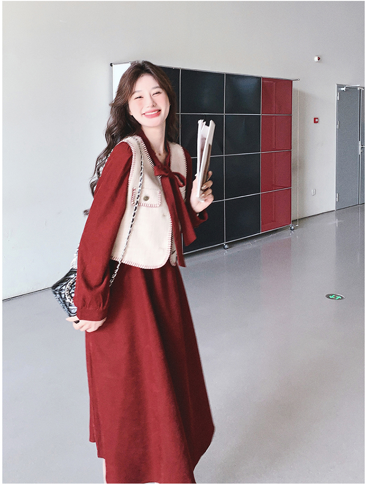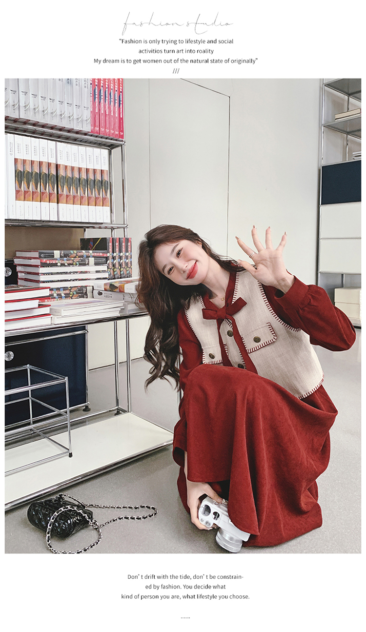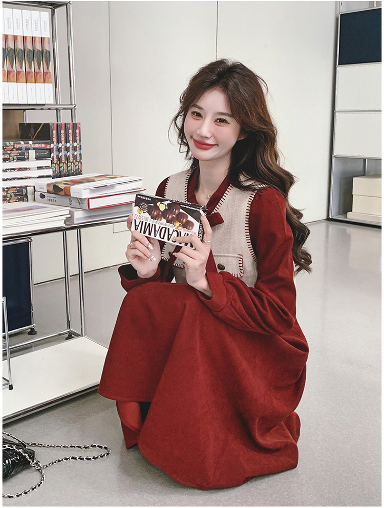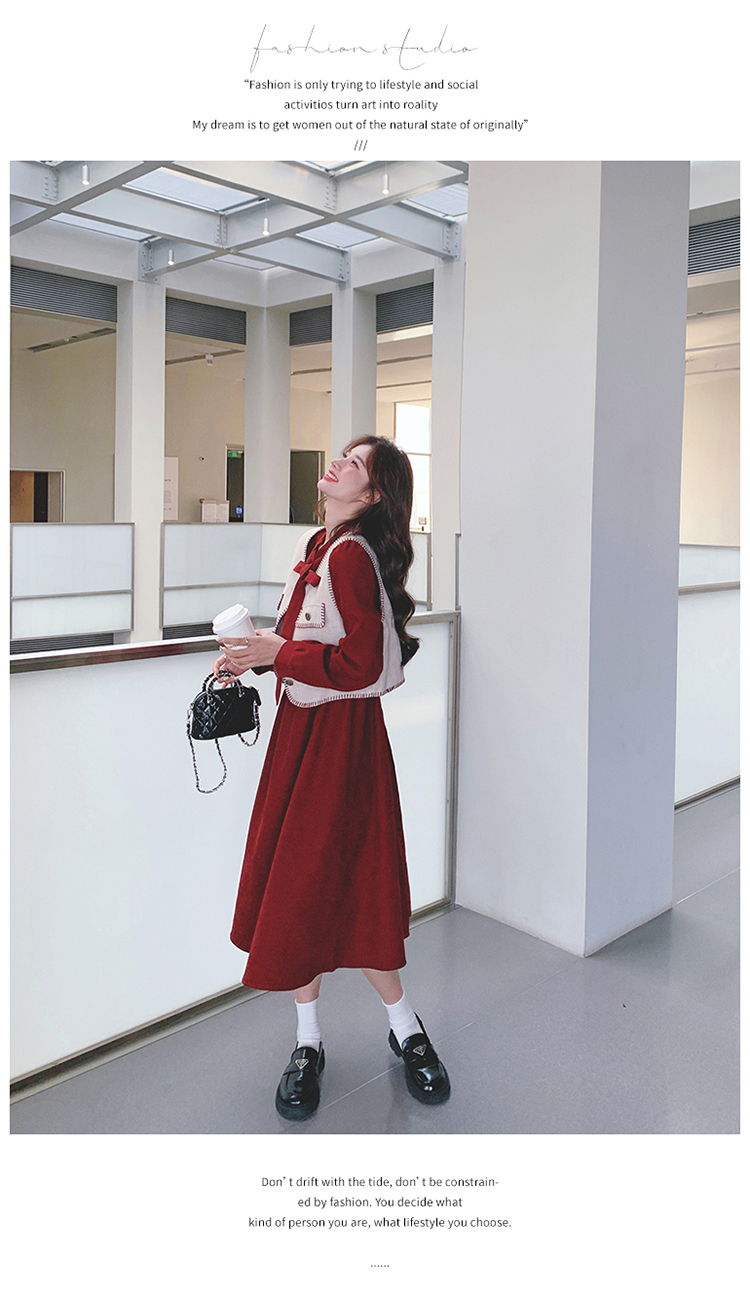 獨家訂製│韓系甜姐兒假口袋背心+繫帶收腰連衣裙兩件式套裝組(03H6047)