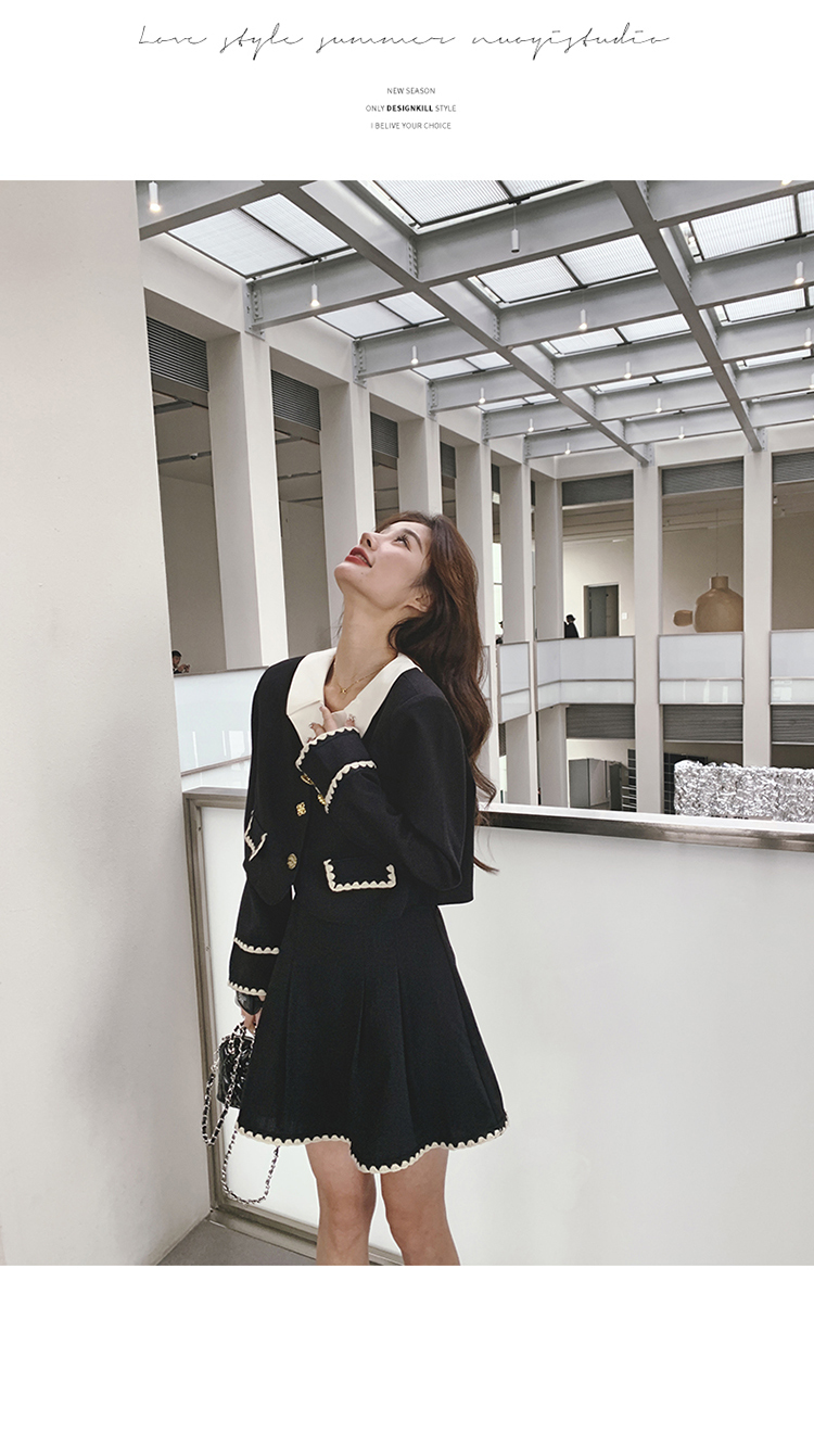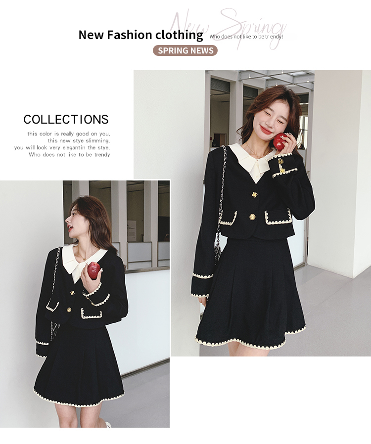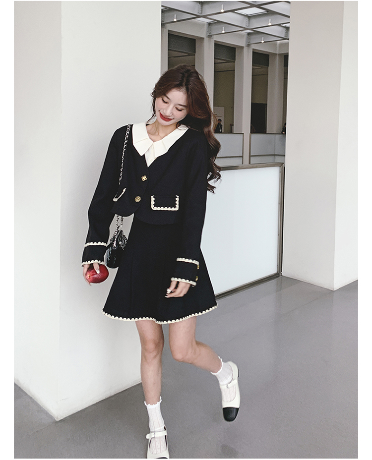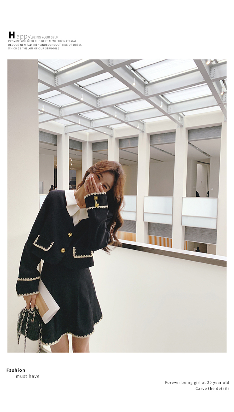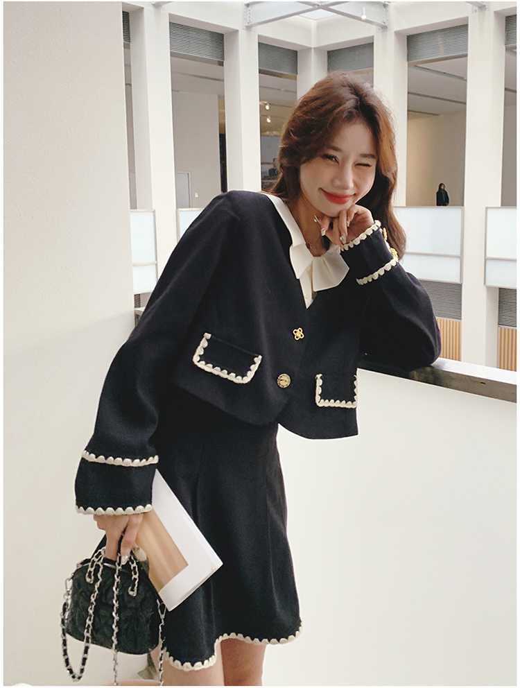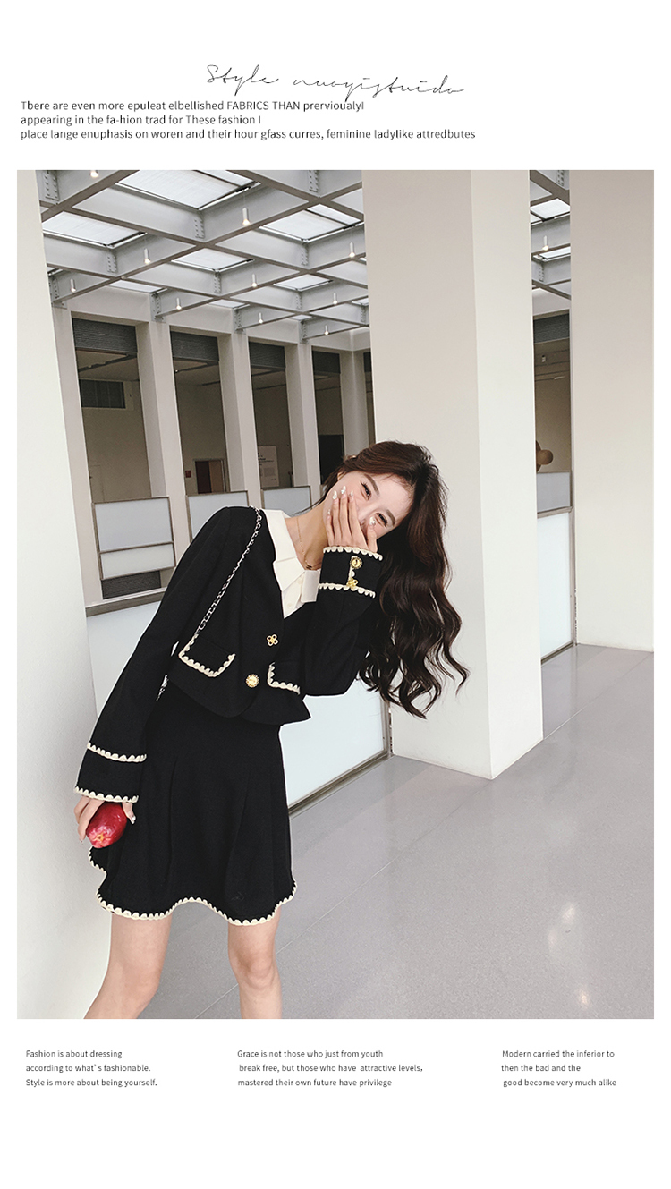 獨家訂製│韓系小香風撞色拼接假兩件式上衣+短裙兩件式套裝組(03H6080)