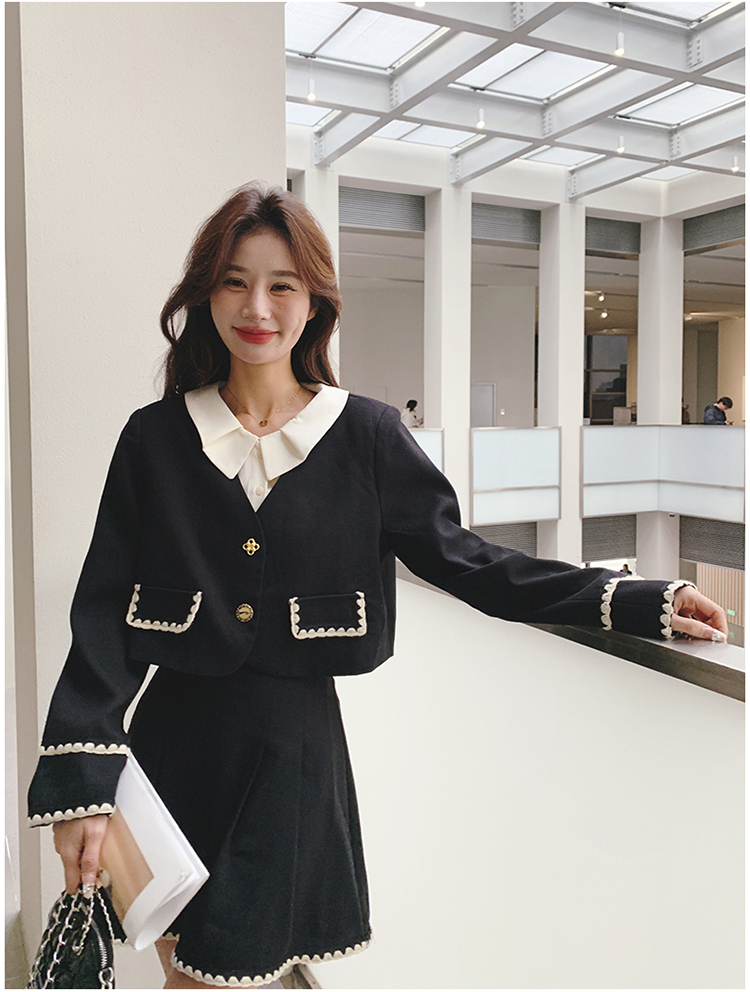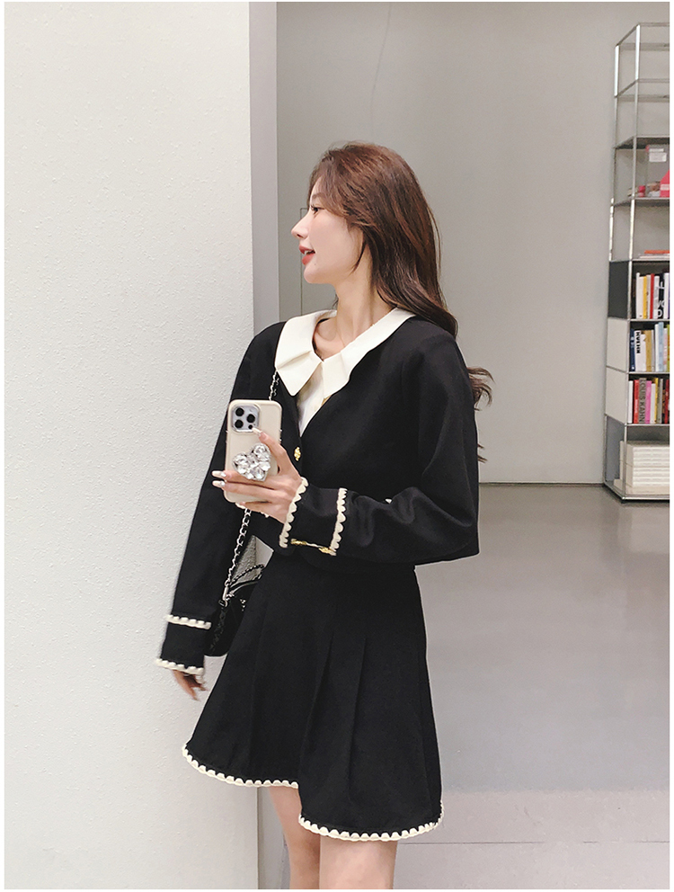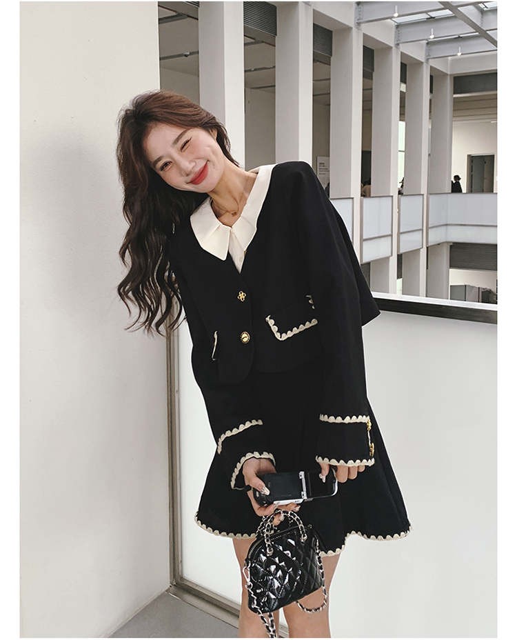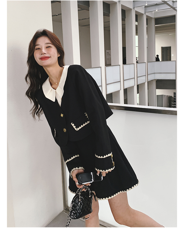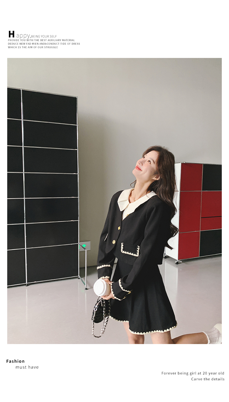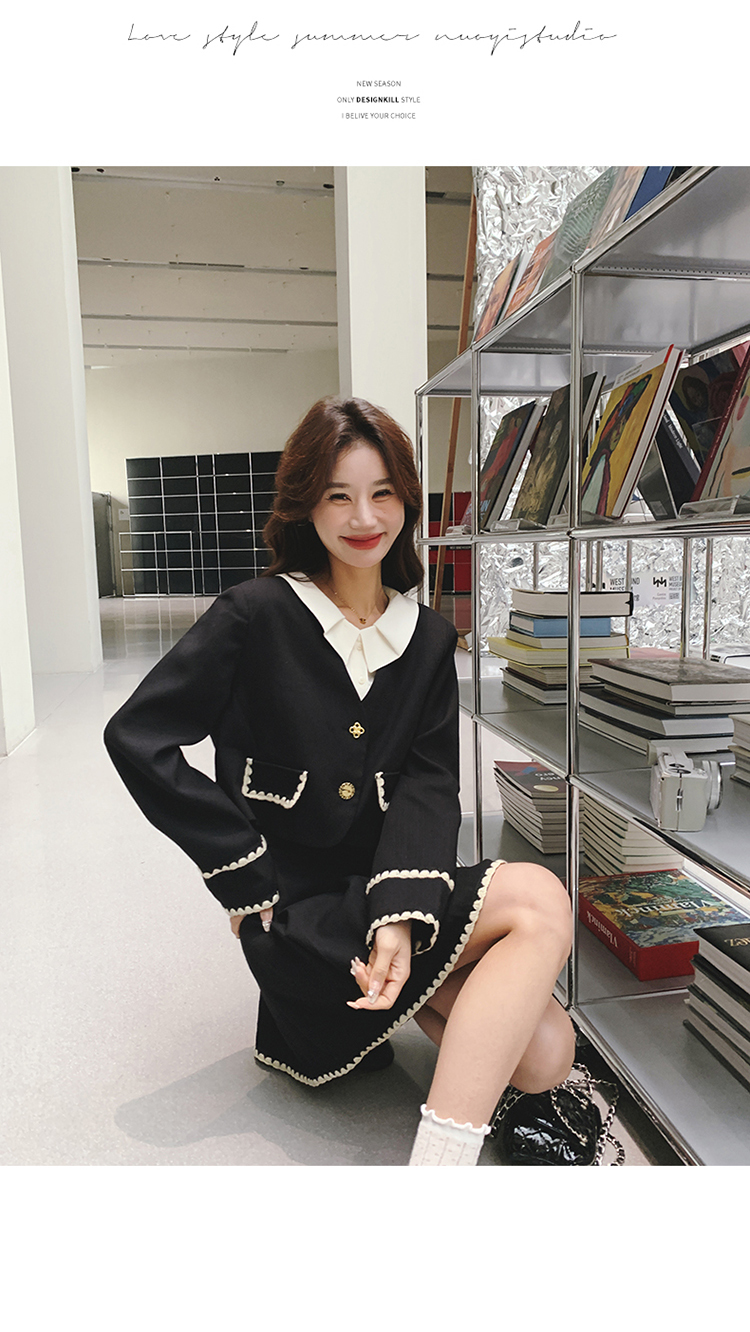 獨家訂製│韓系小香風撞色拼接假兩件式上衣+短裙兩件式套裝組(03H6080)