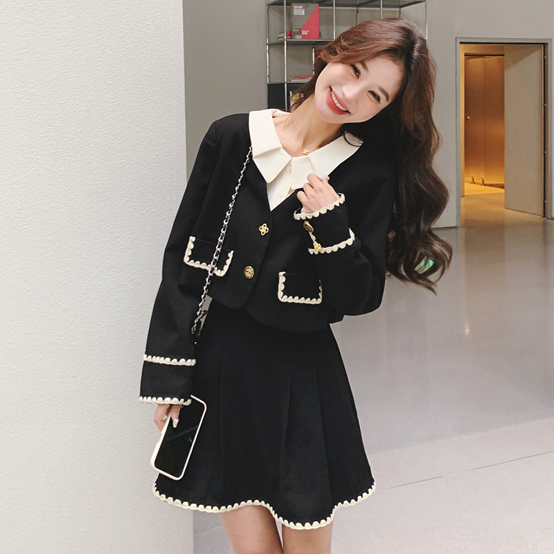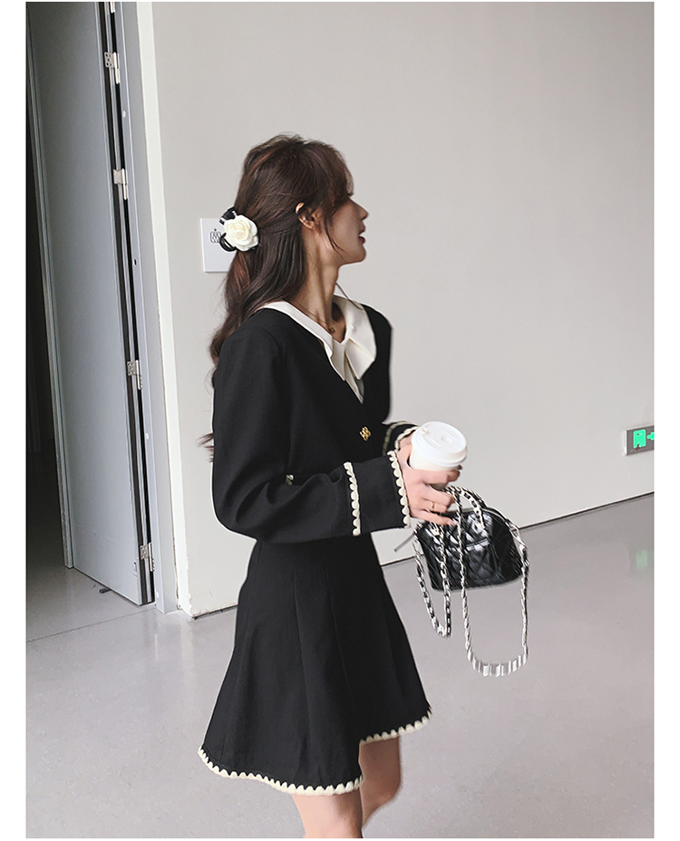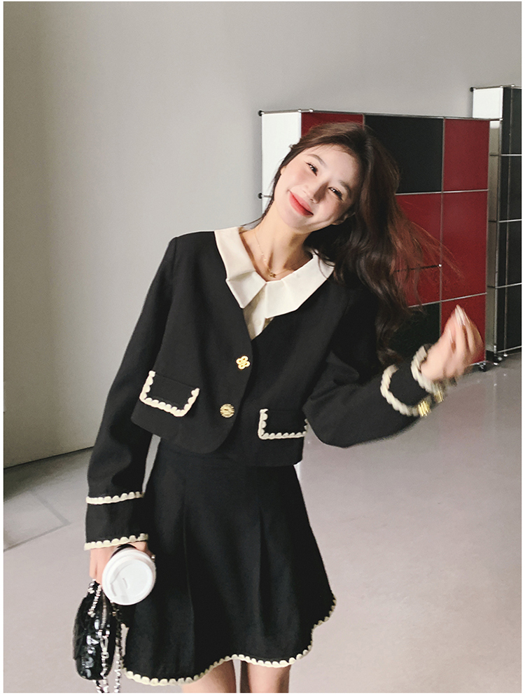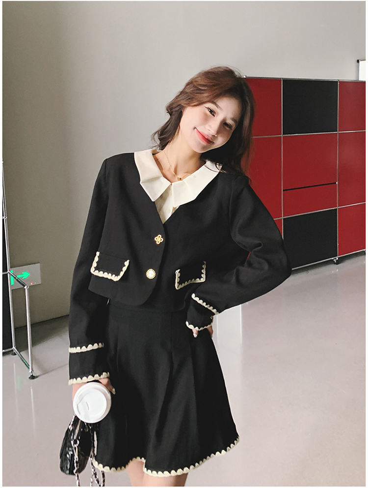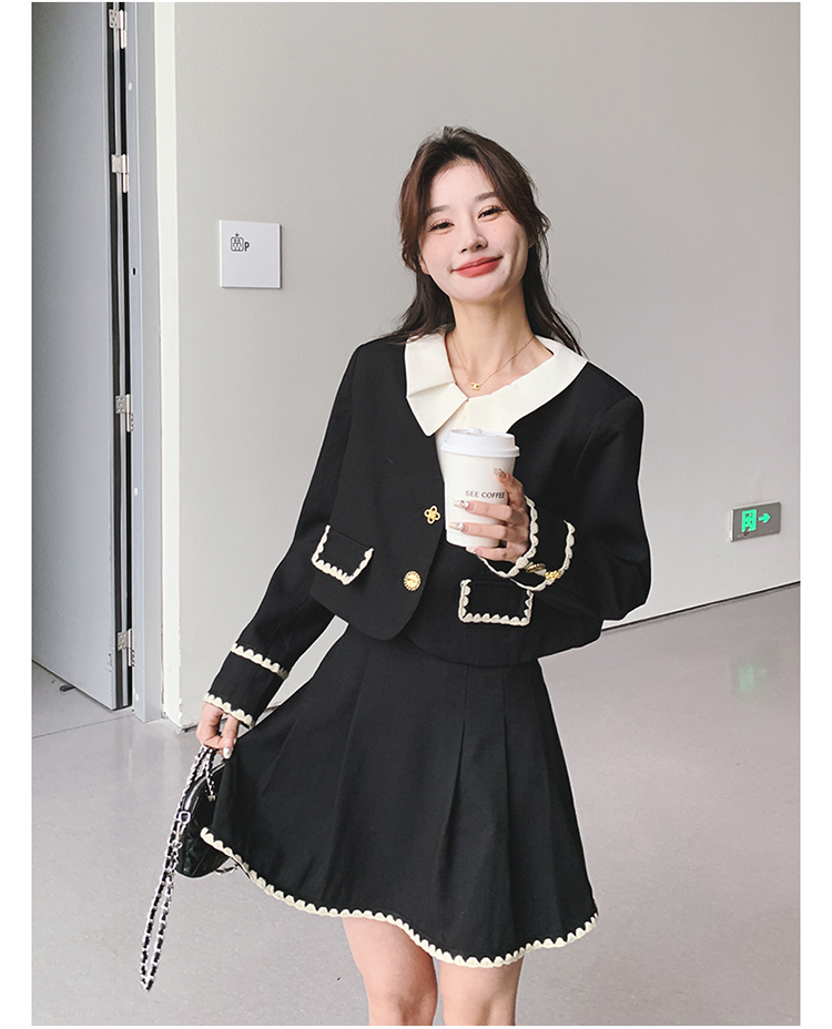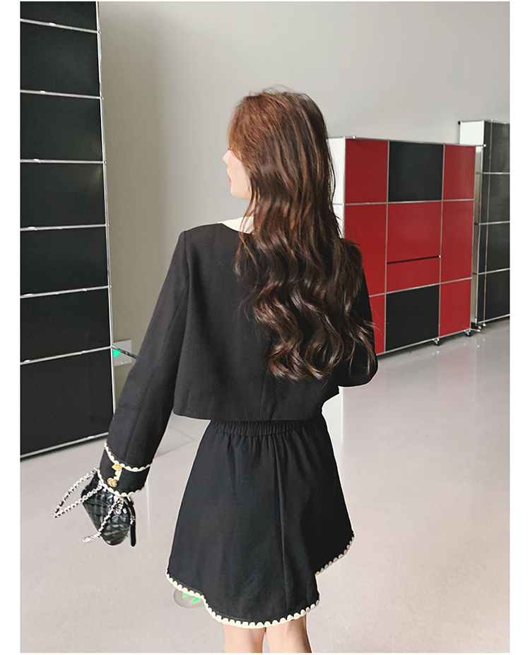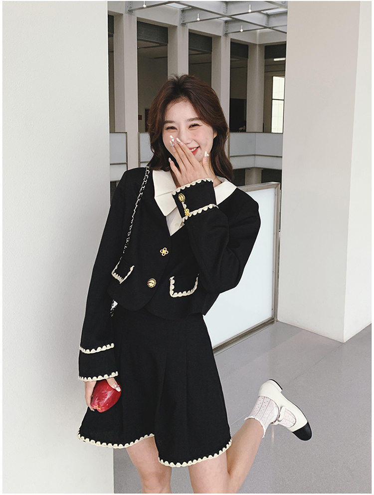 獨家訂製│韓系小香風撞色拼接假兩件式上衣+短裙兩件式套裝組(03H6080)