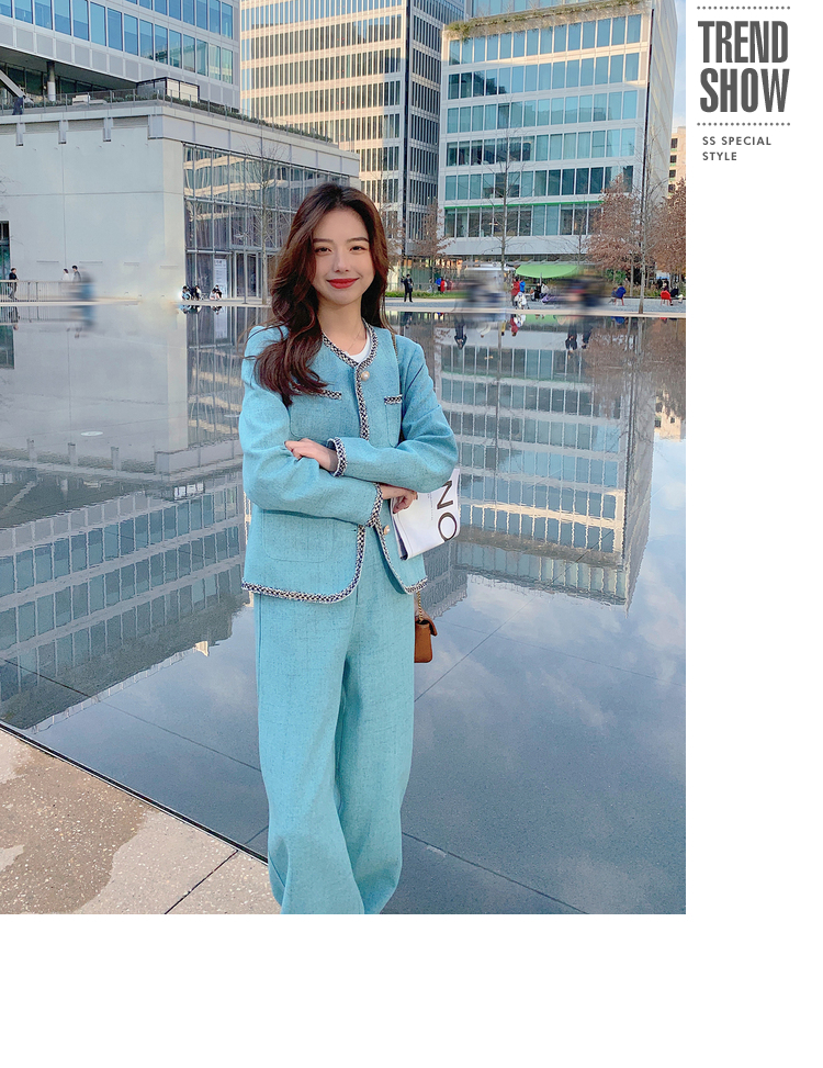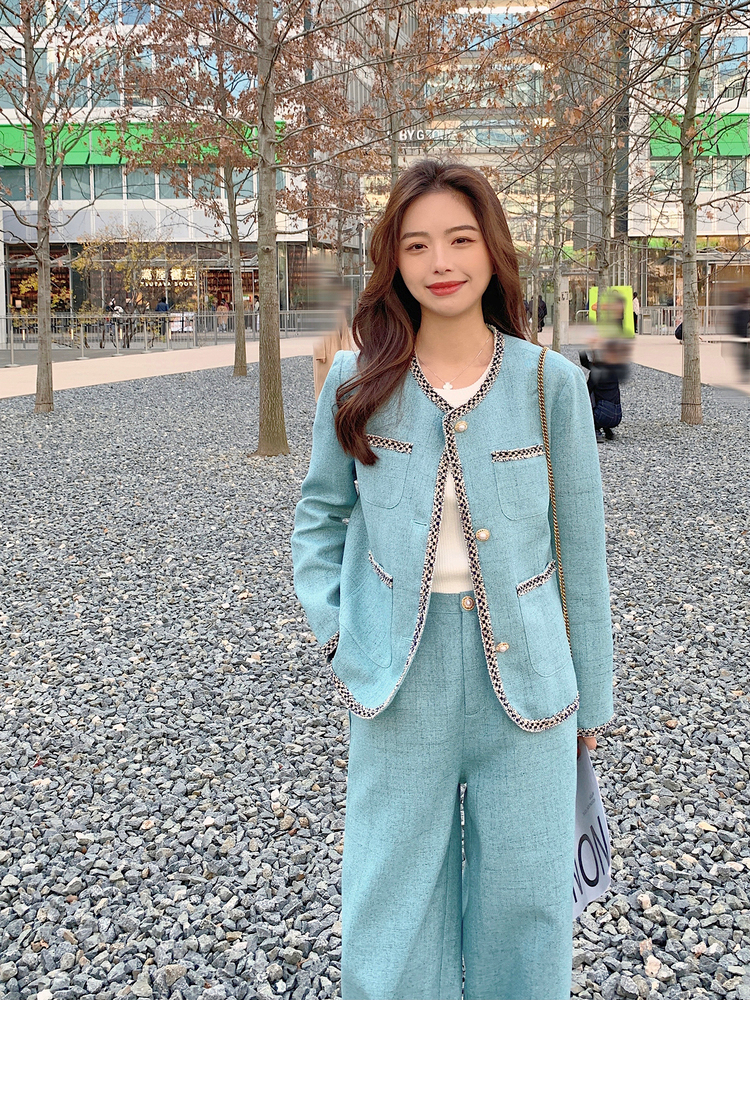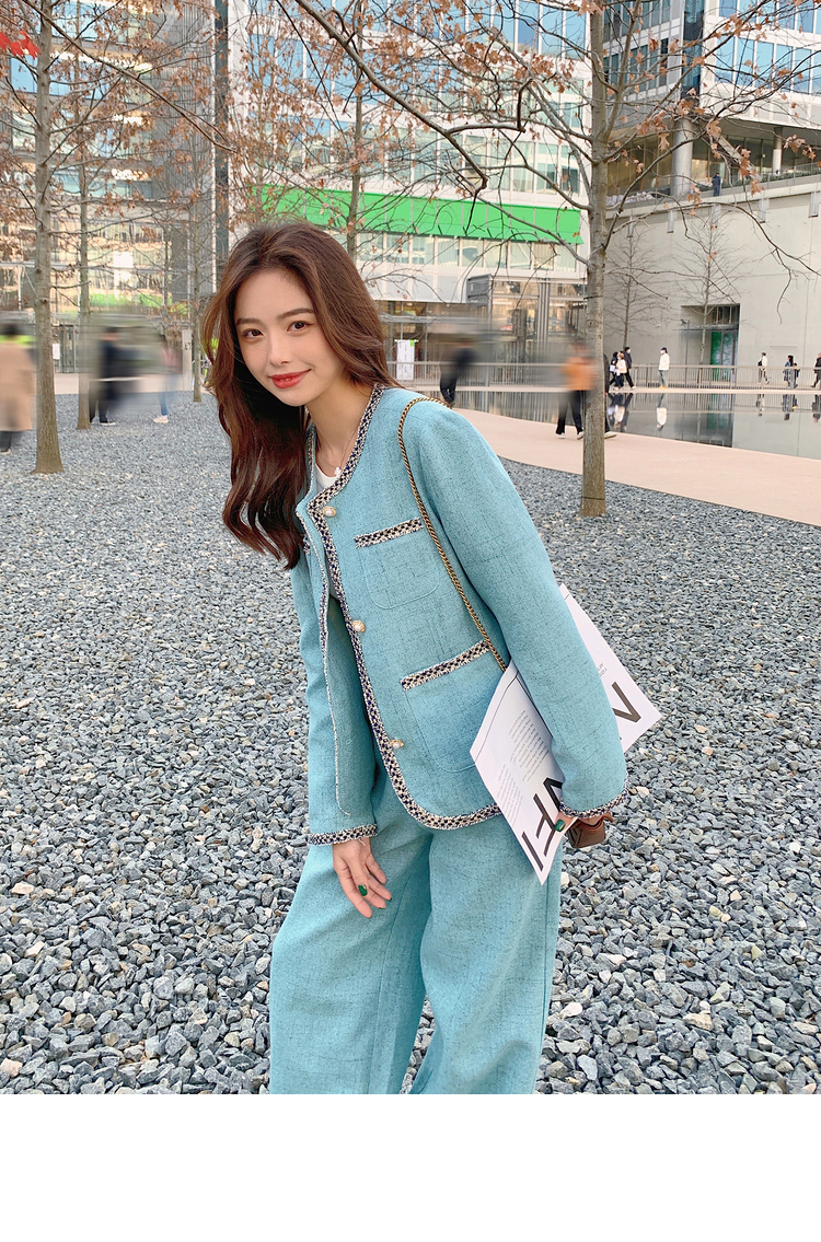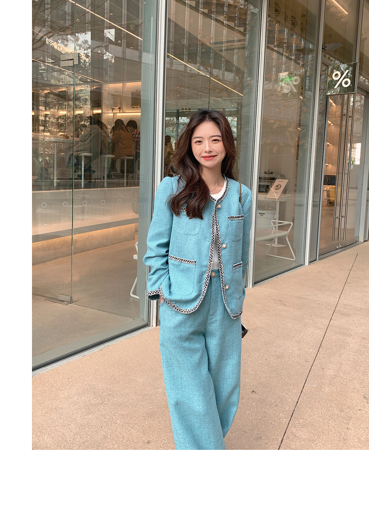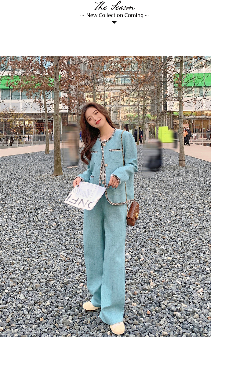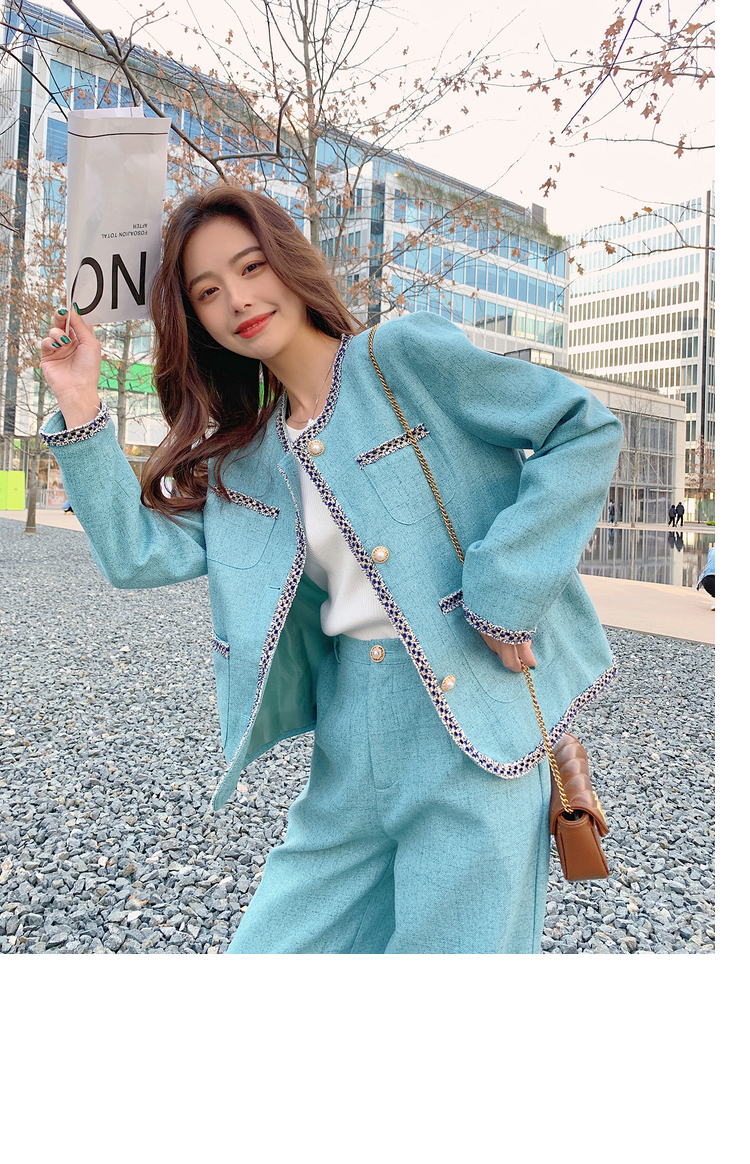 獨家訂製│韓系甜姐兒小香風外套+闊腿褲兩件式套裝組(03H6089)