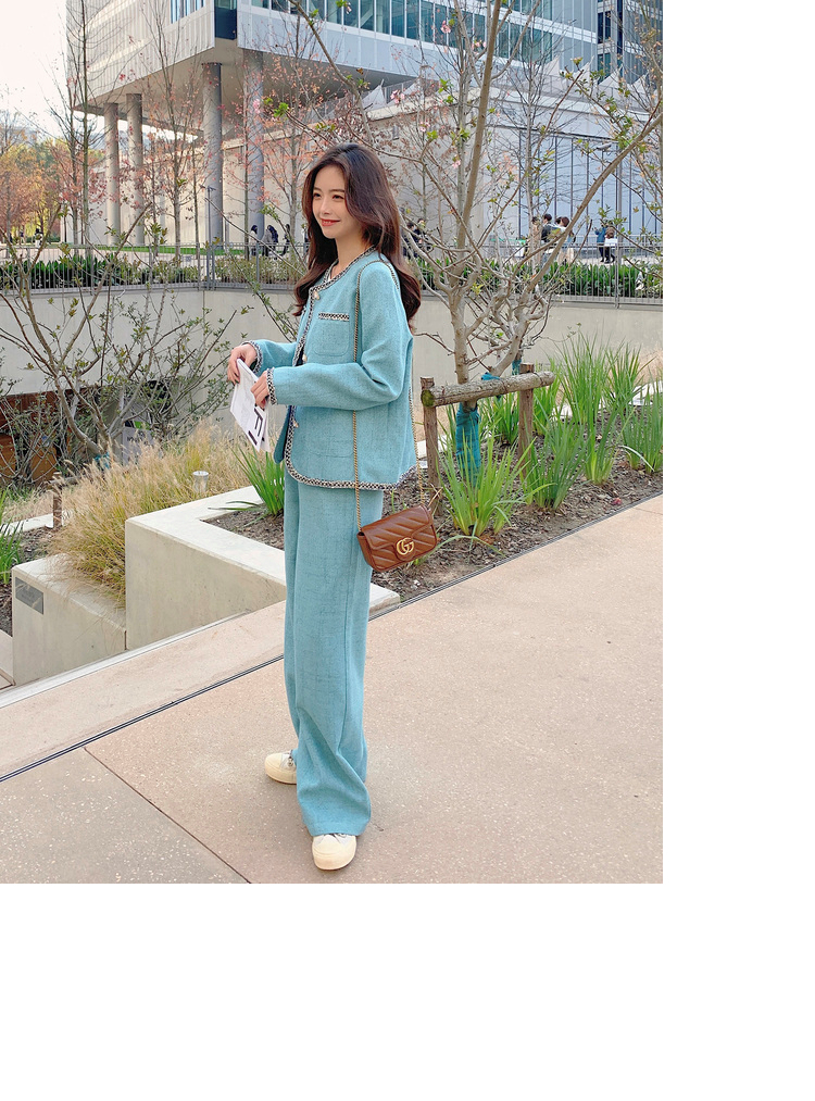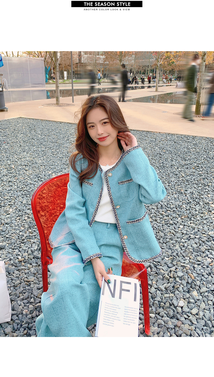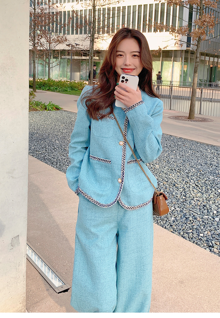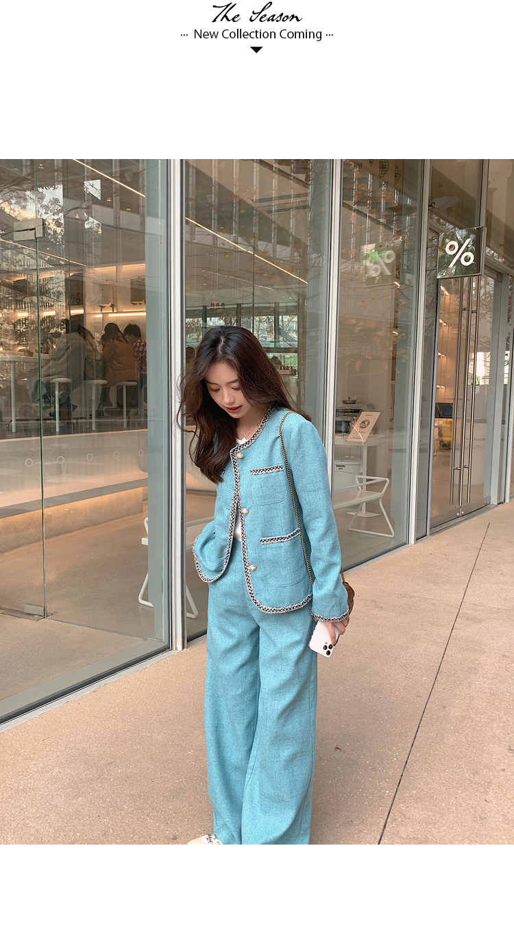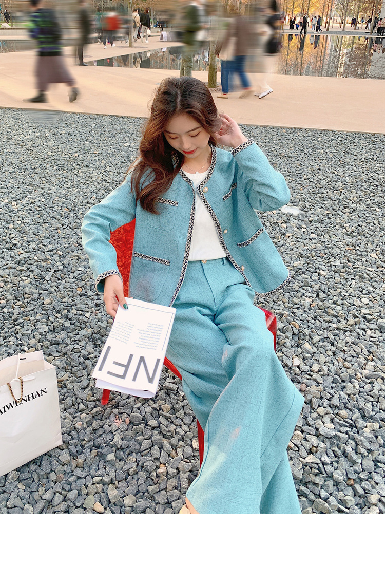 獨家訂製│韓系甜姐兒小香風外套+闊腿褲兩件式套裝組(03H6089)