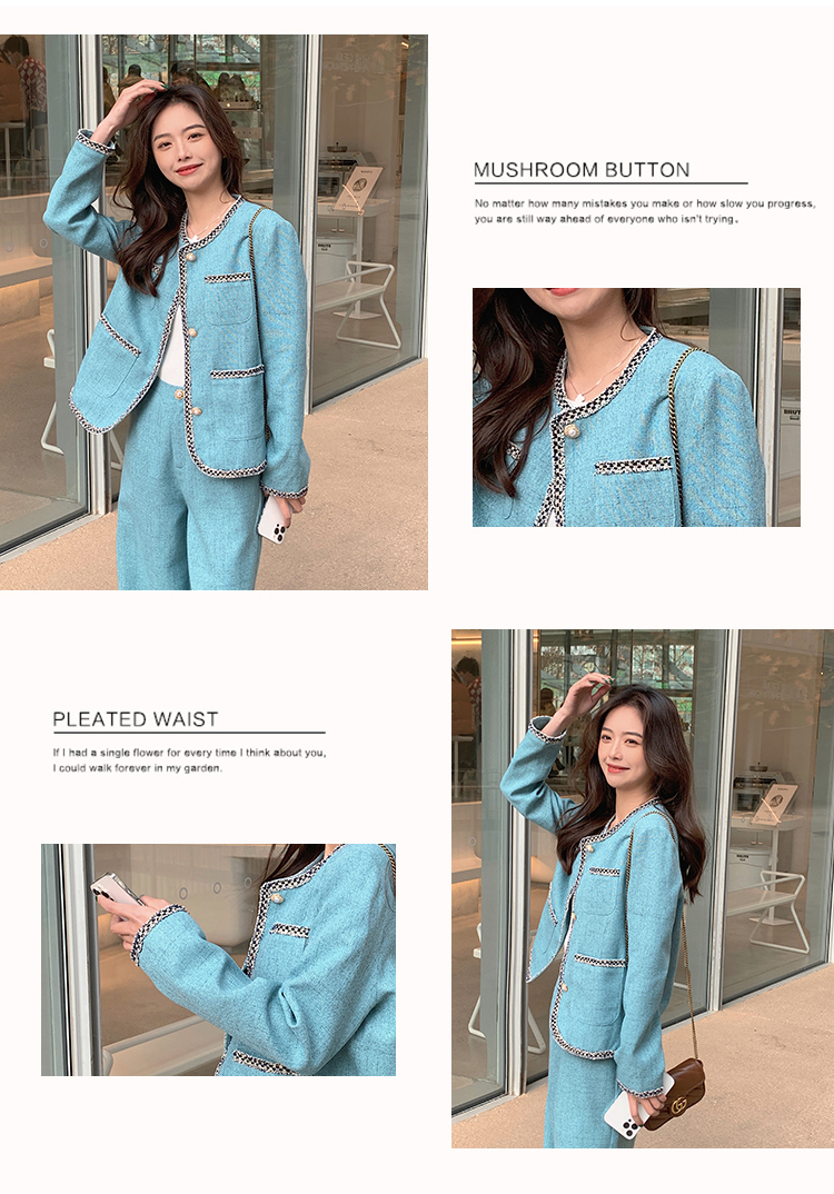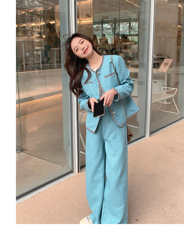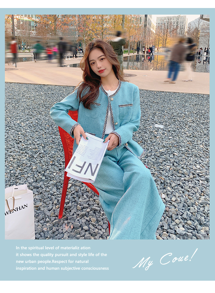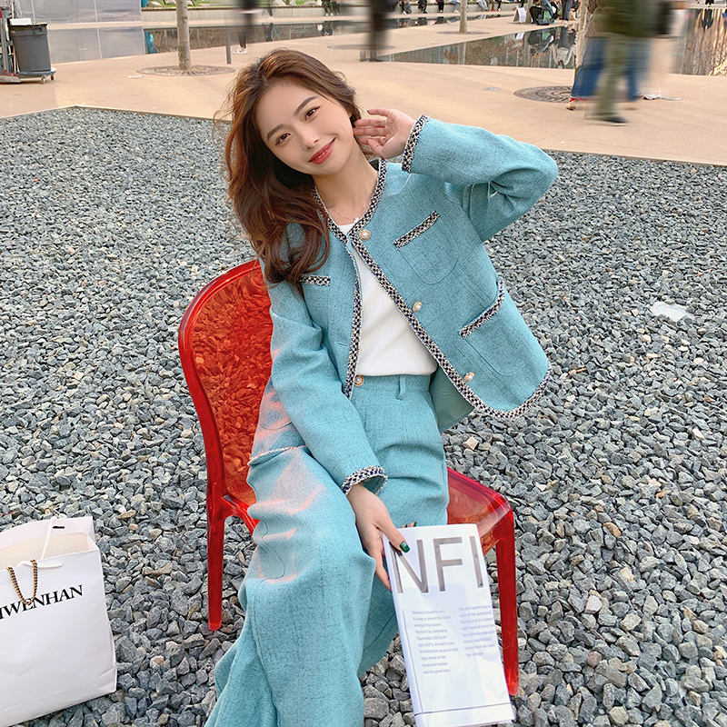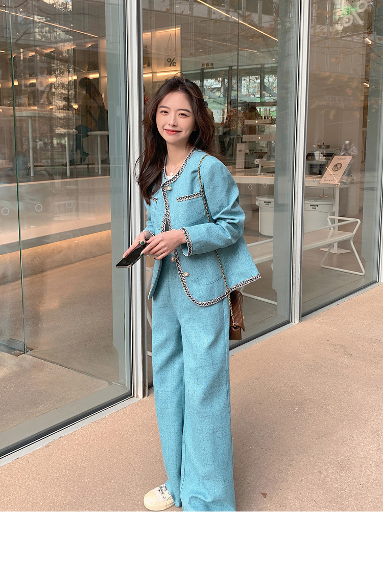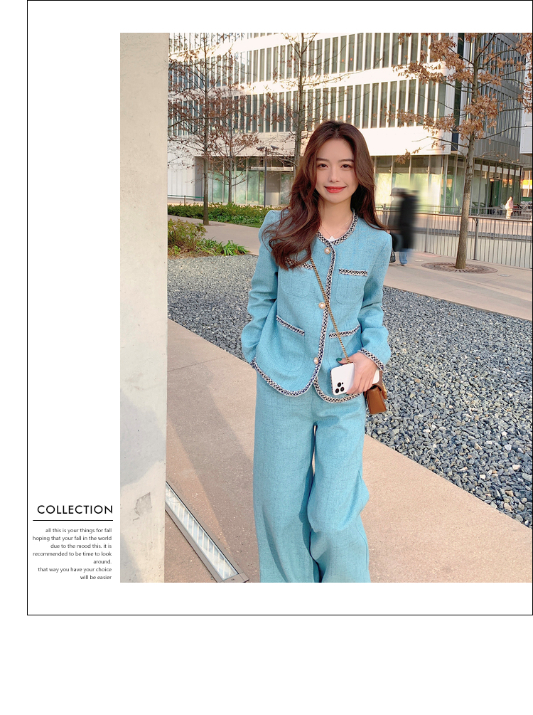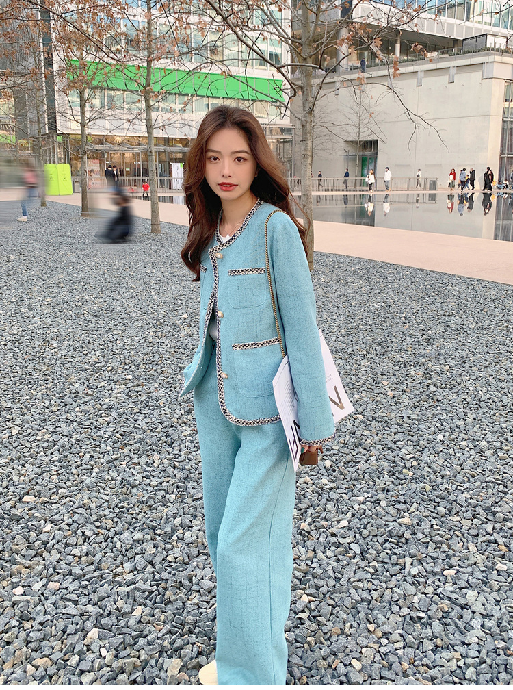 獨家訂製│韓系甜姐兒小香風外套+闊腿褲兩件式套裝組(03H6089)