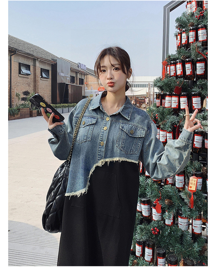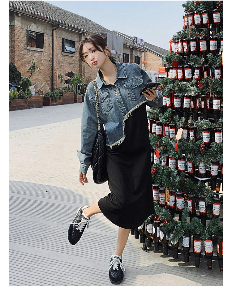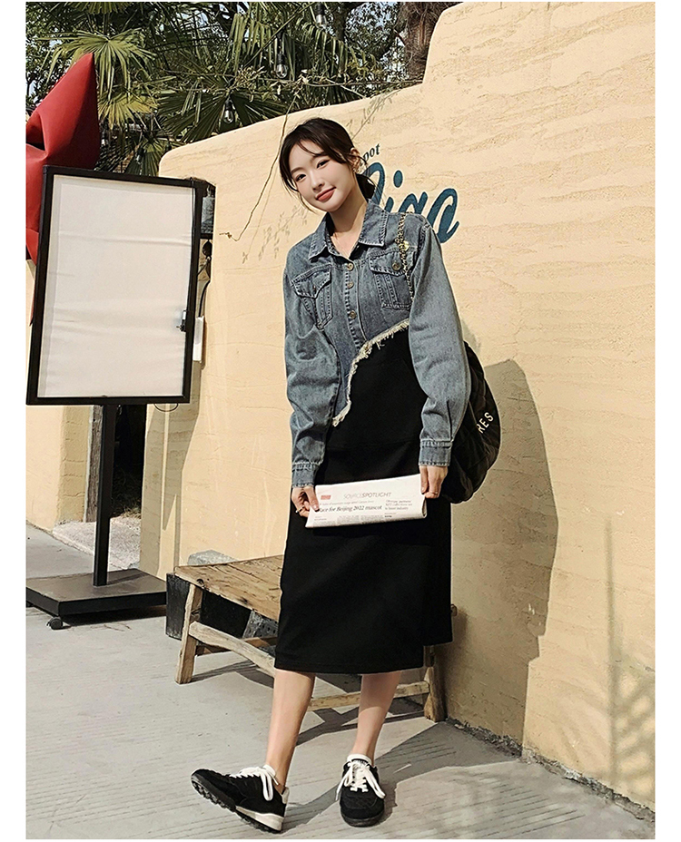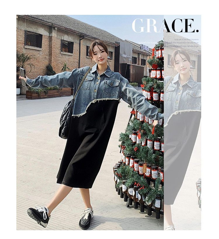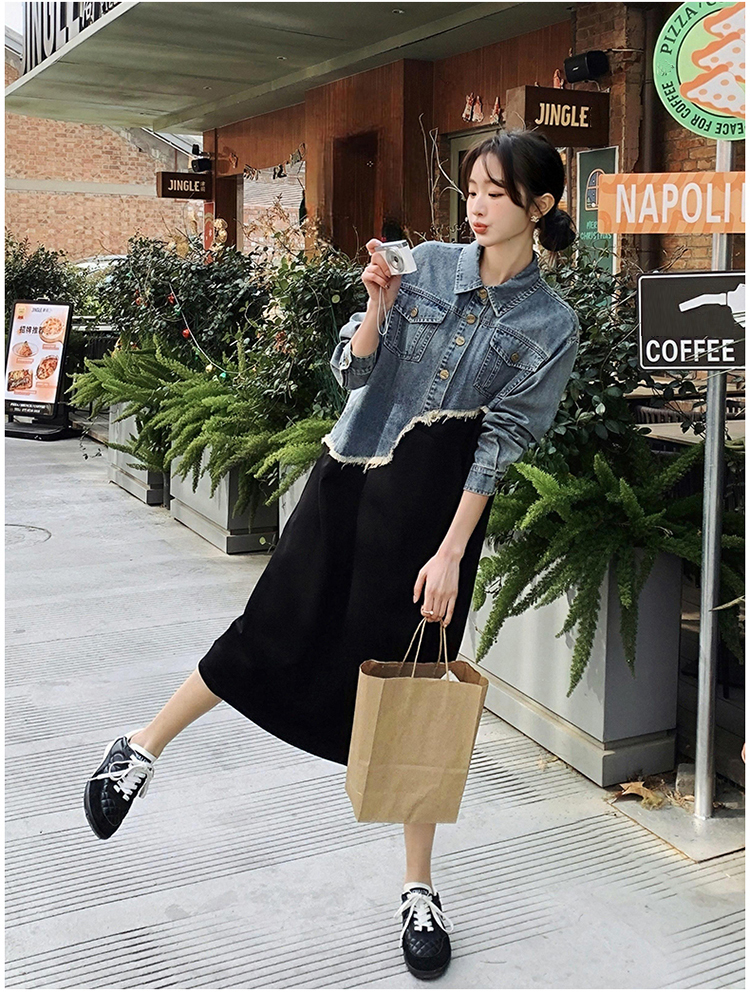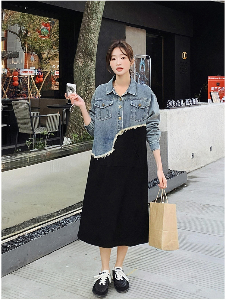獨家訂製│韓系甜酷風拼接刷毛邊牛仔造型連衣裙(03H6111)