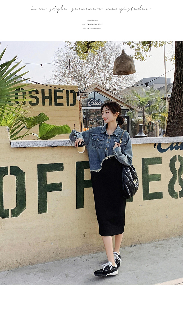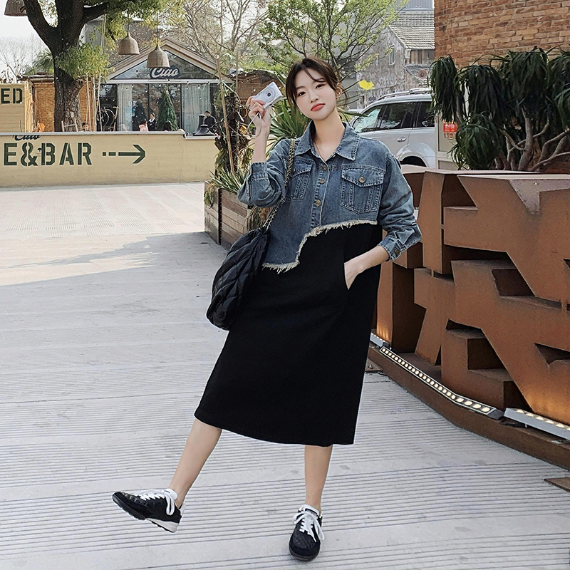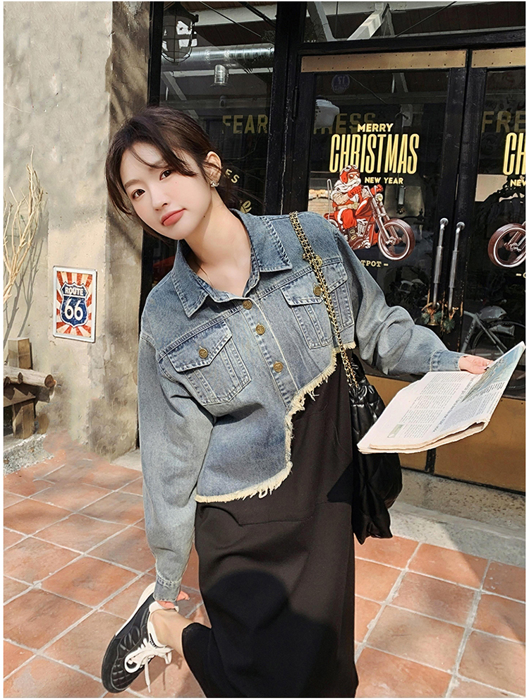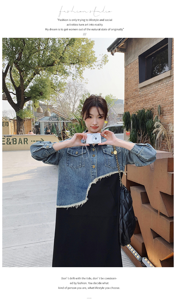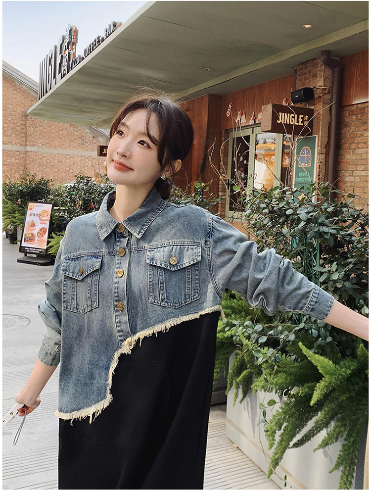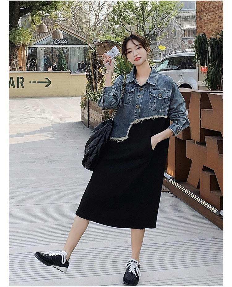 獨家訂製│韓系甜酷風拼接刷毛邊牛仔造型連衣裙(03H6111)