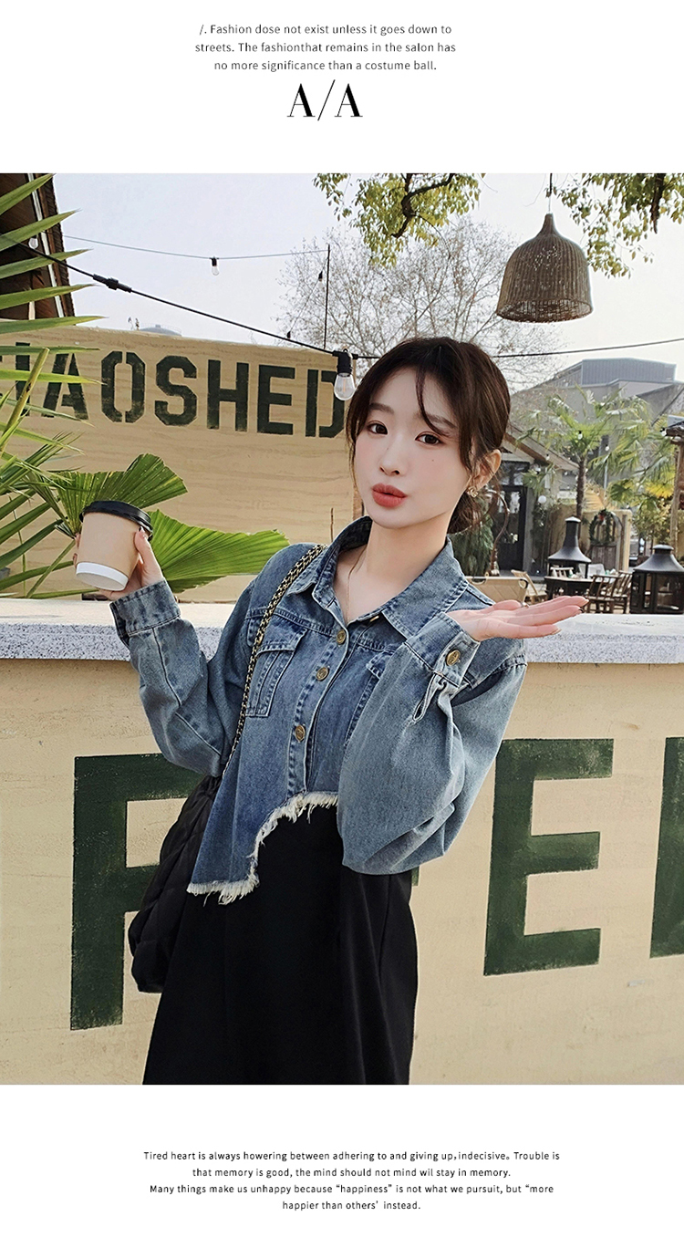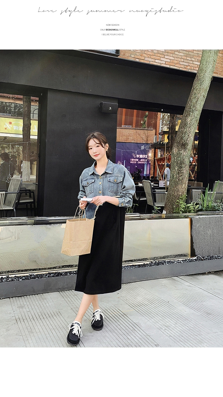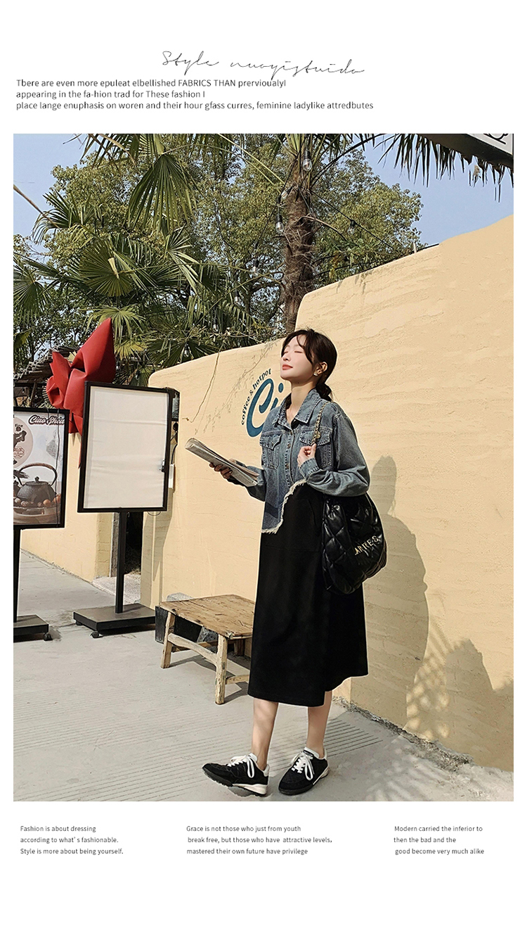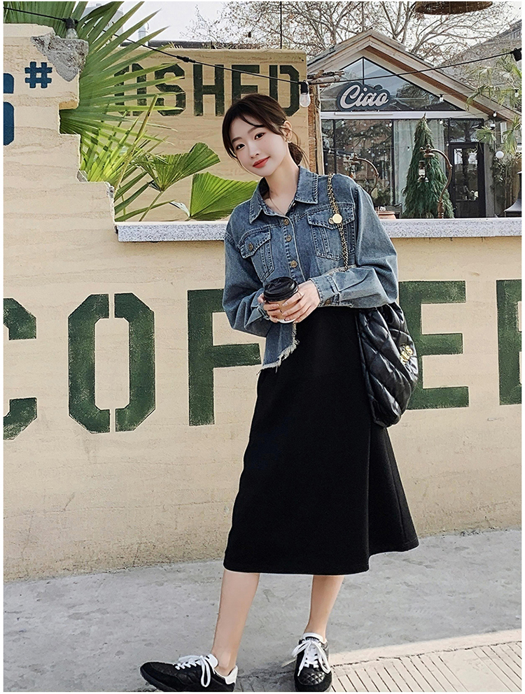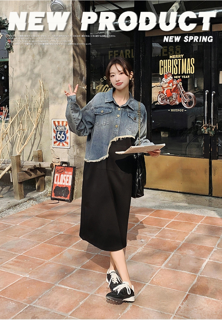 獨家訂製│韓系甜酷風拼接刷毛邊牛仔造型連衣裙(03H6111)