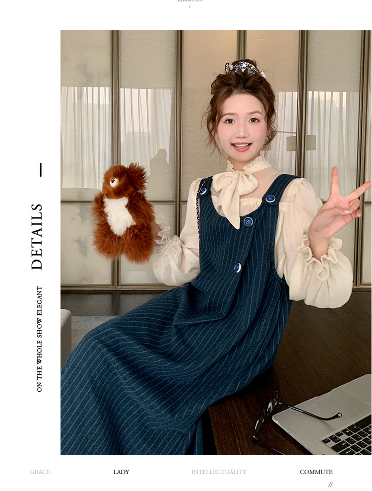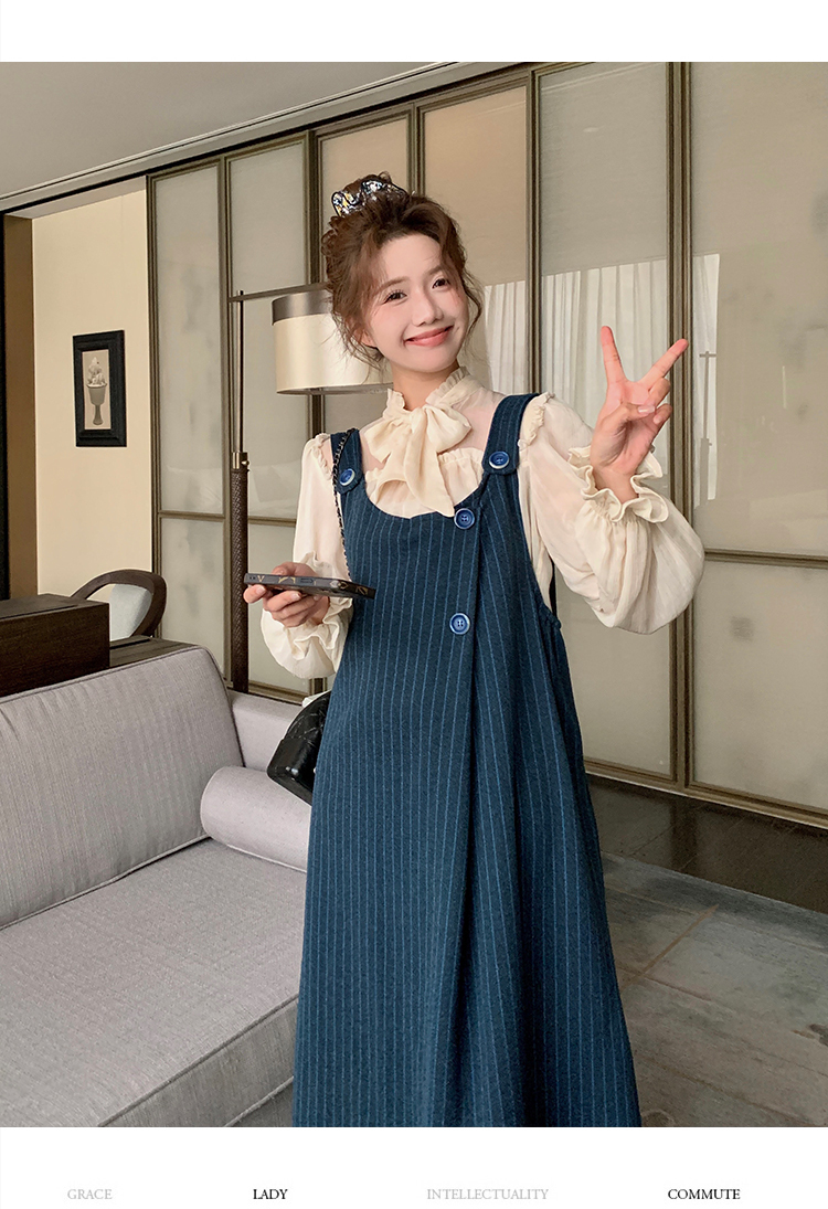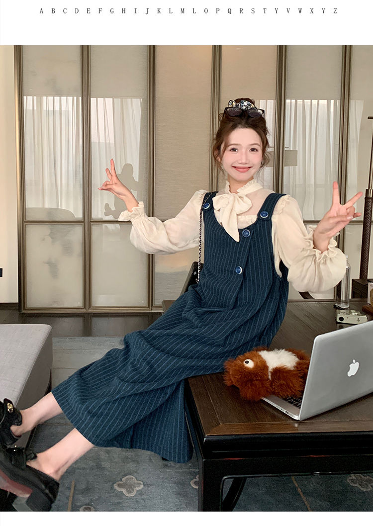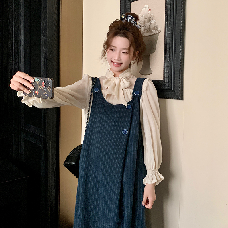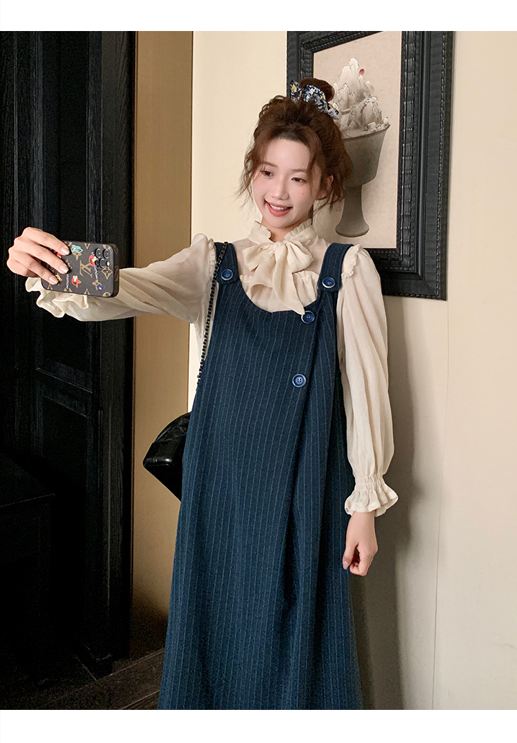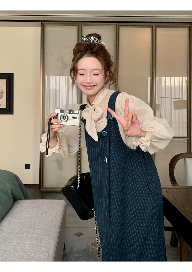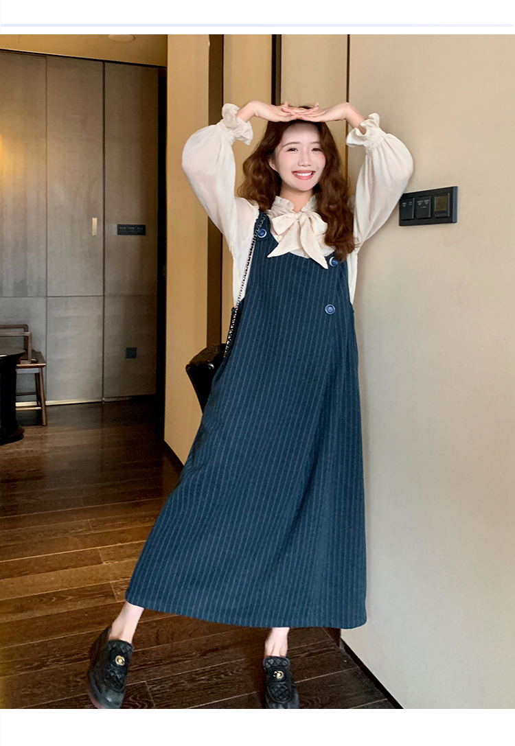 獨家訂製│韓系減齡感鈕扣抓褶造型吊帶裙(03H6112)