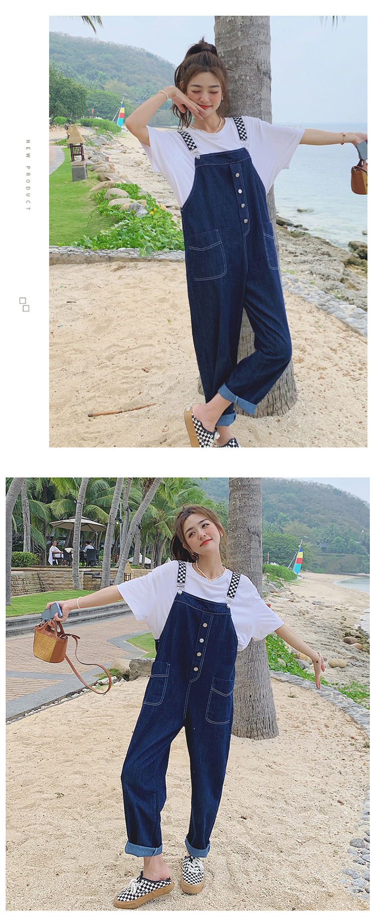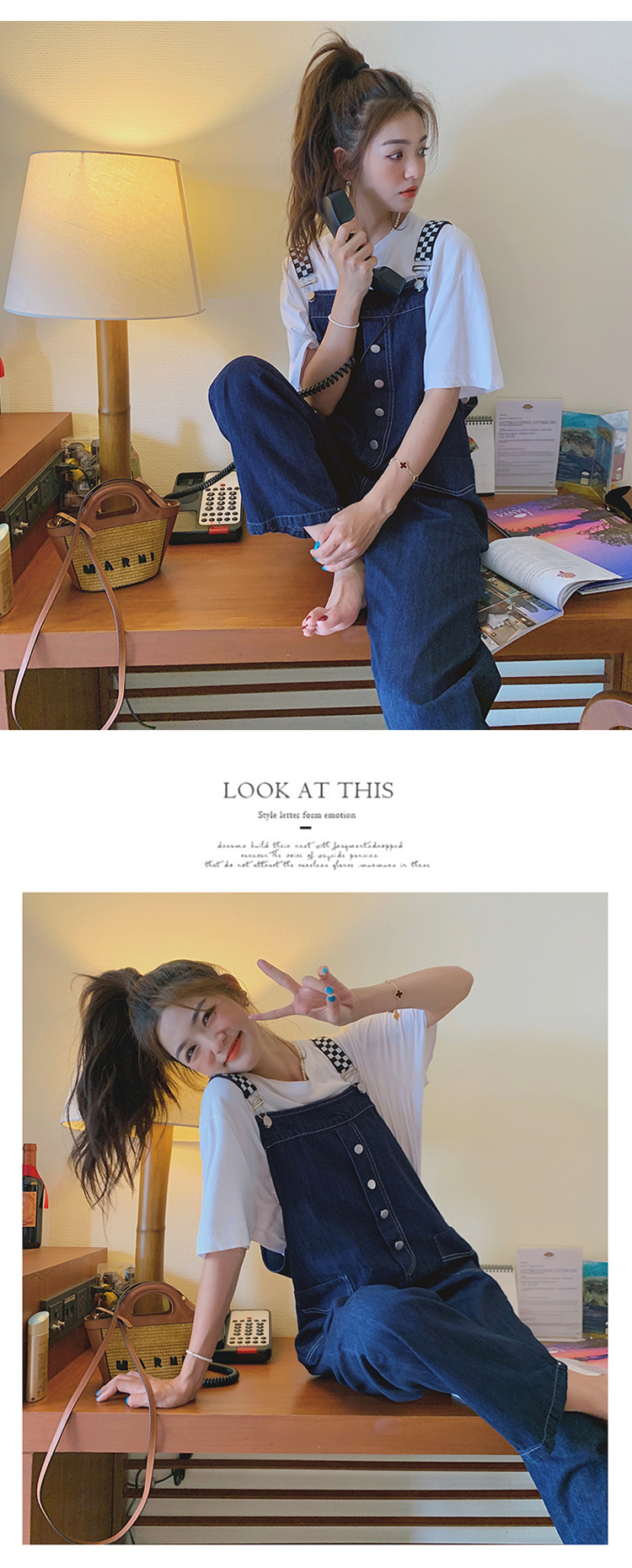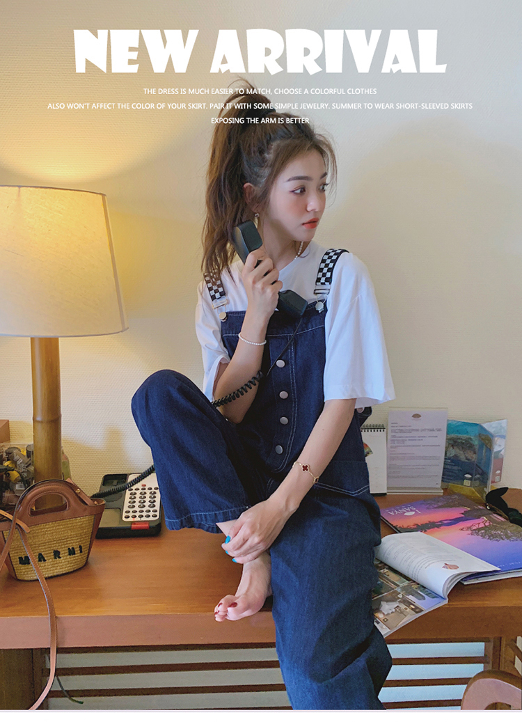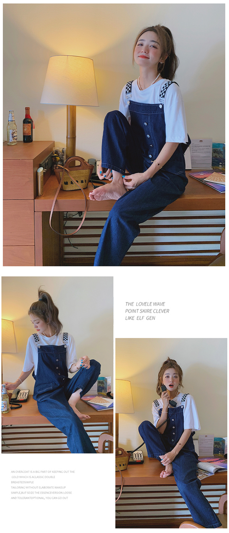 獨家訂製│韓系甜酷風棋盤格肩帶排釦造型吊帶褲(03H6134)