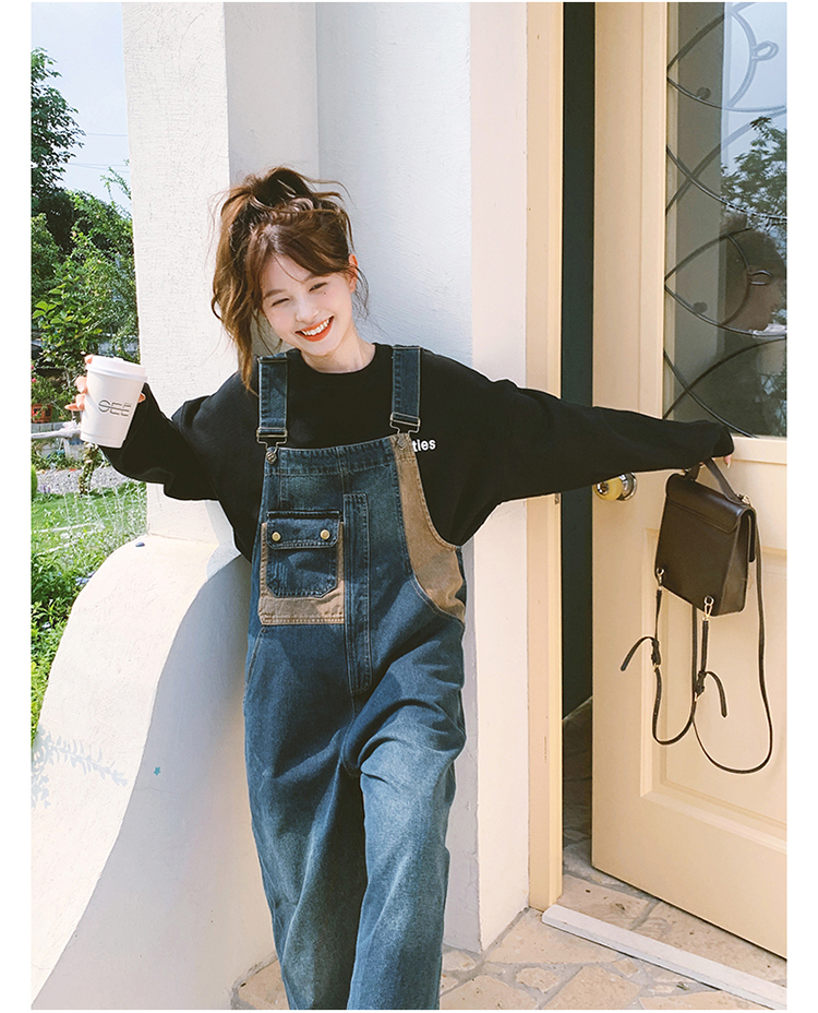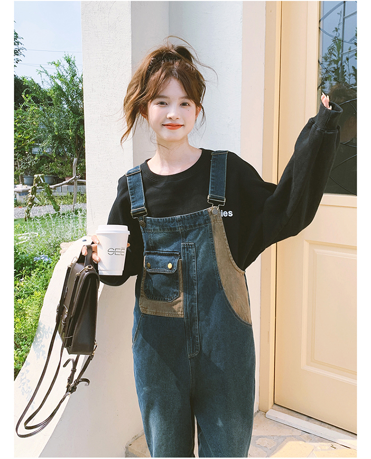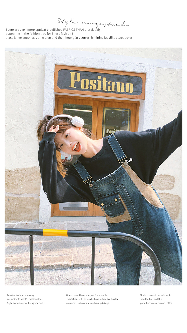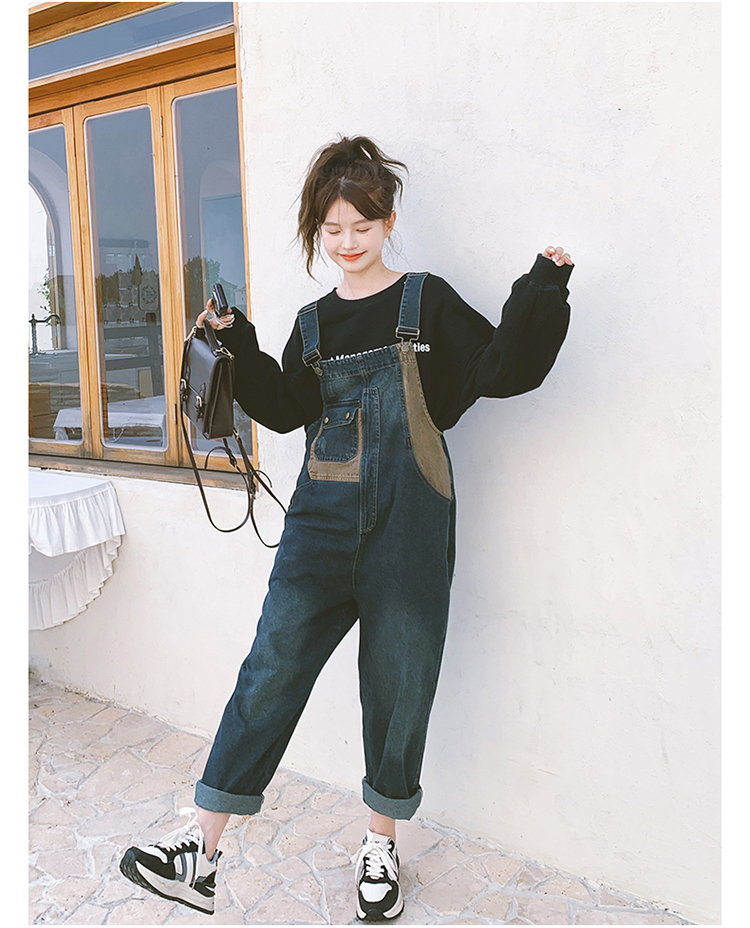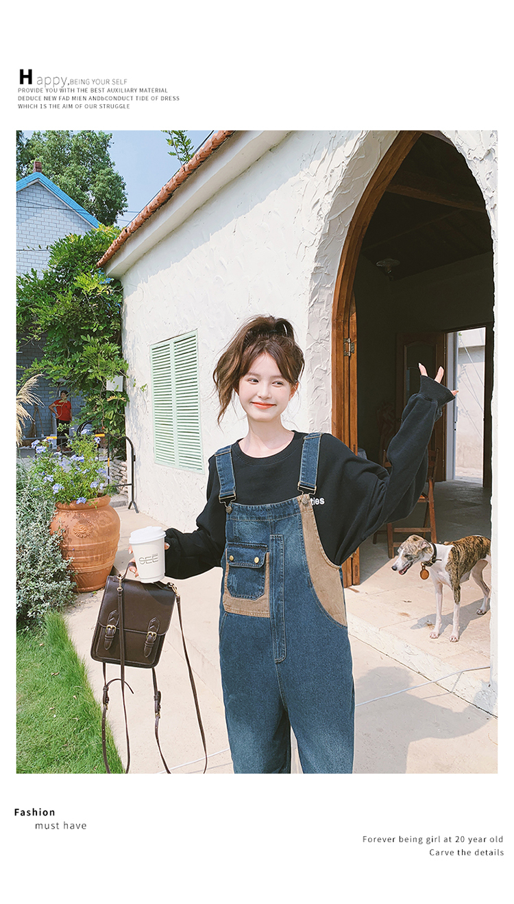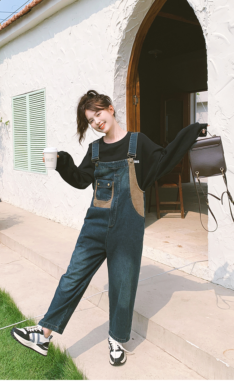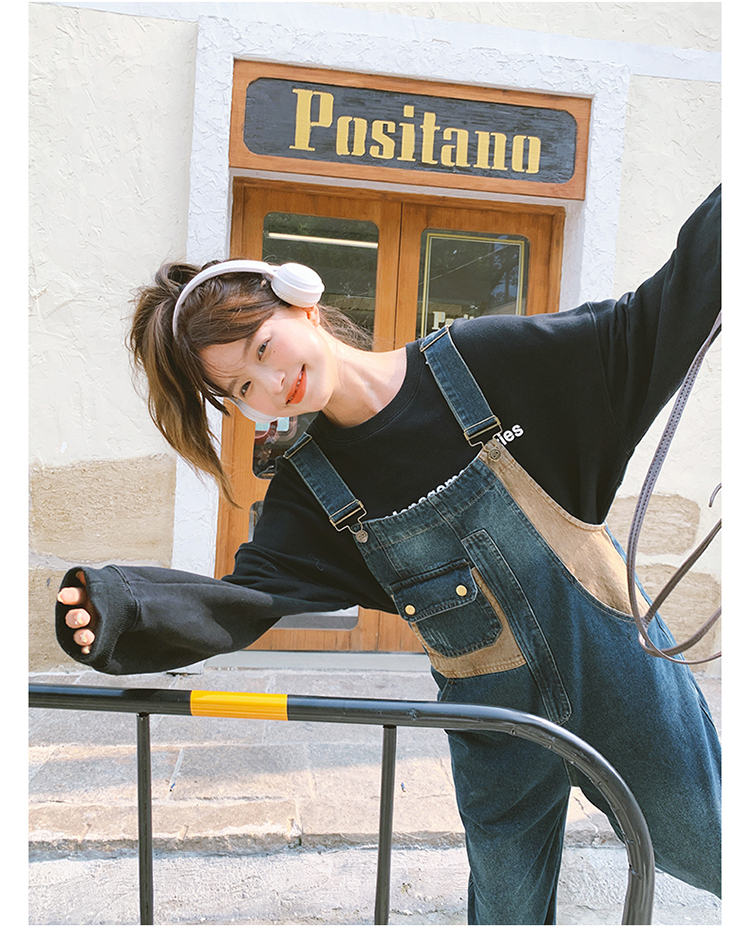 獨家訂製│韓系甜酷風撞色造型牛仔吊帶褲(03H6135)