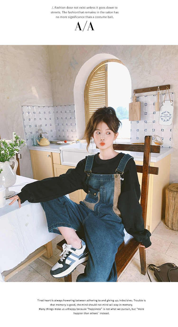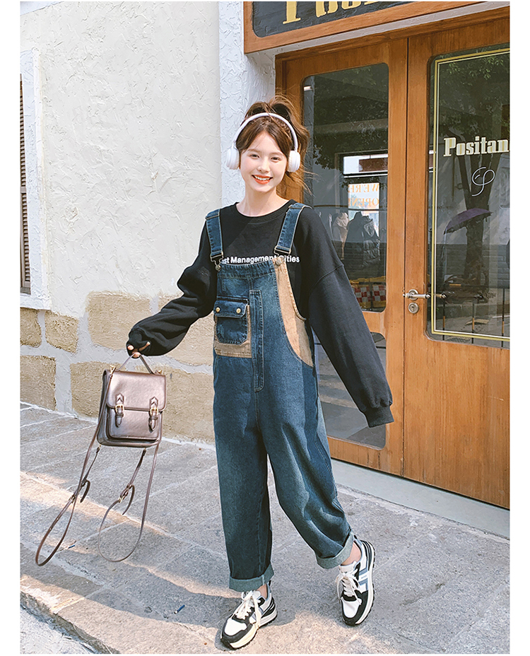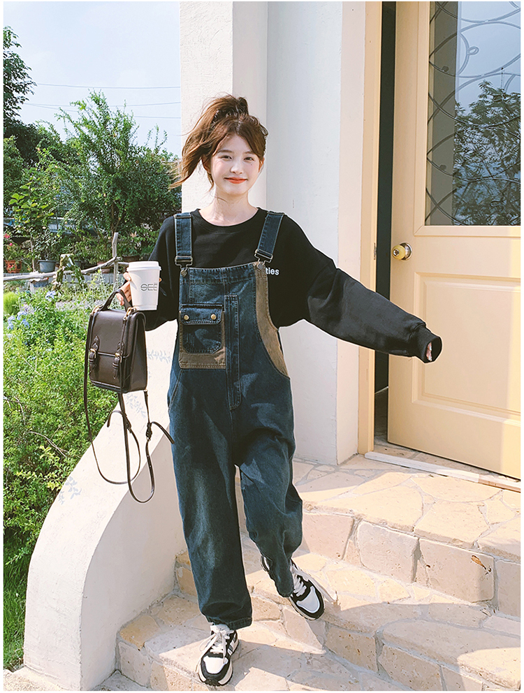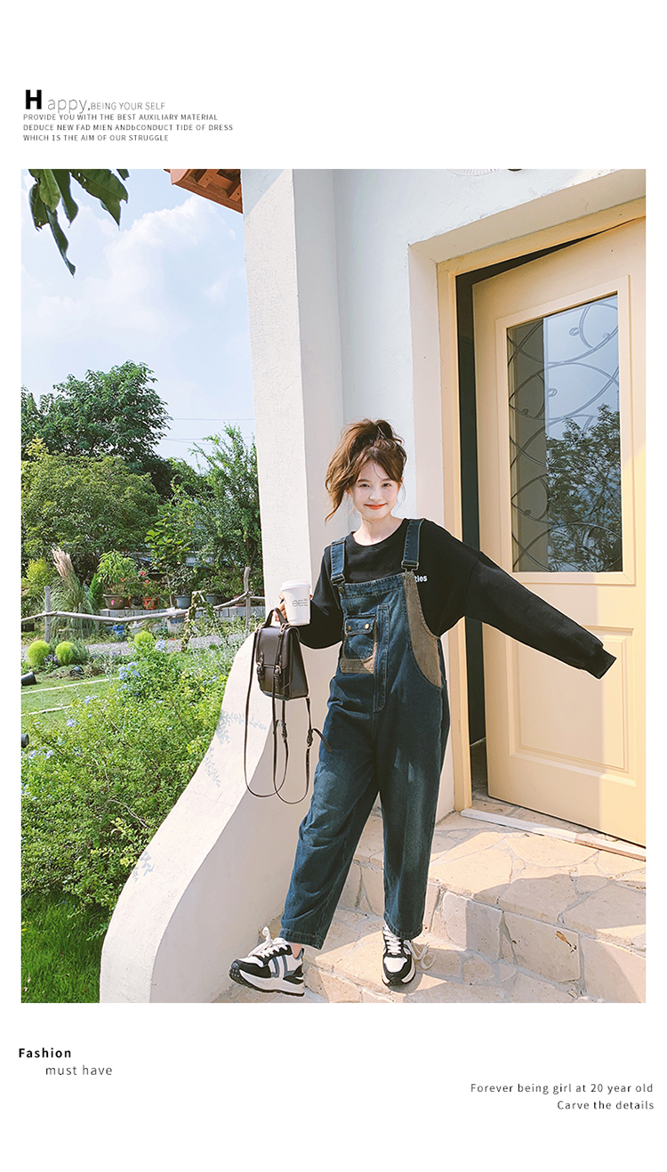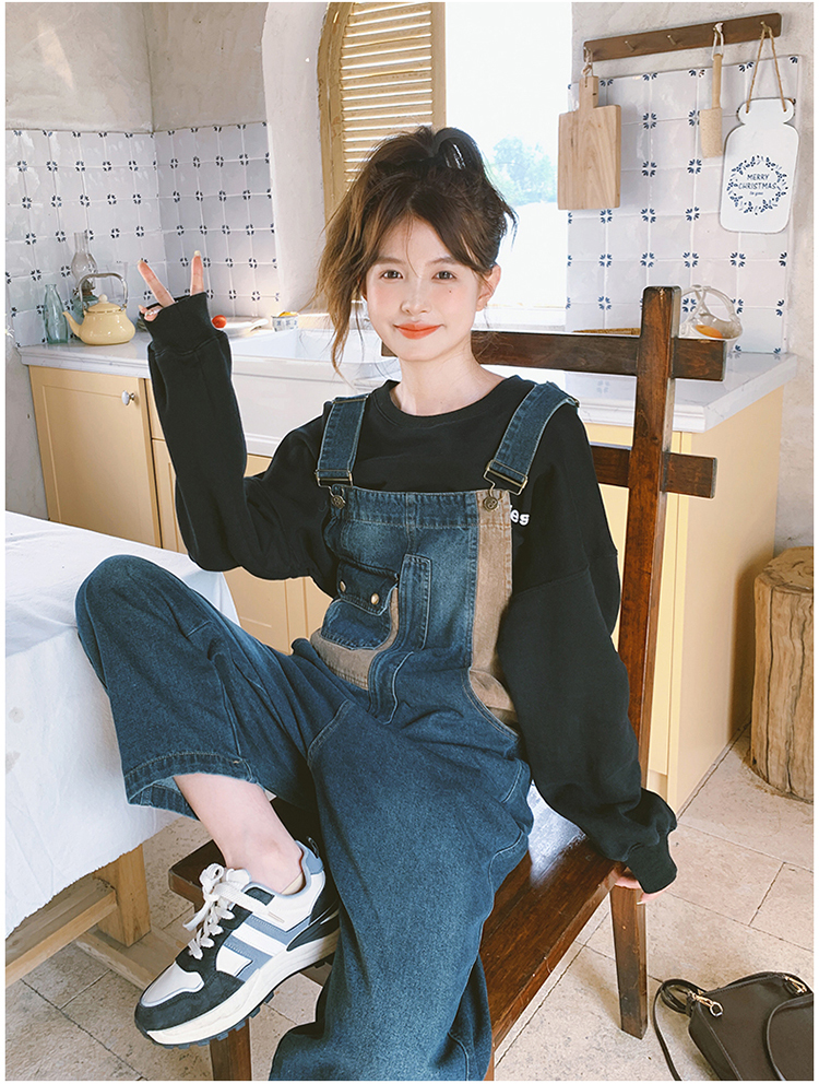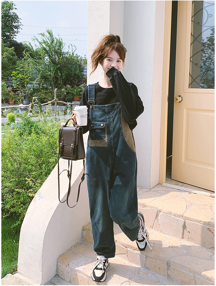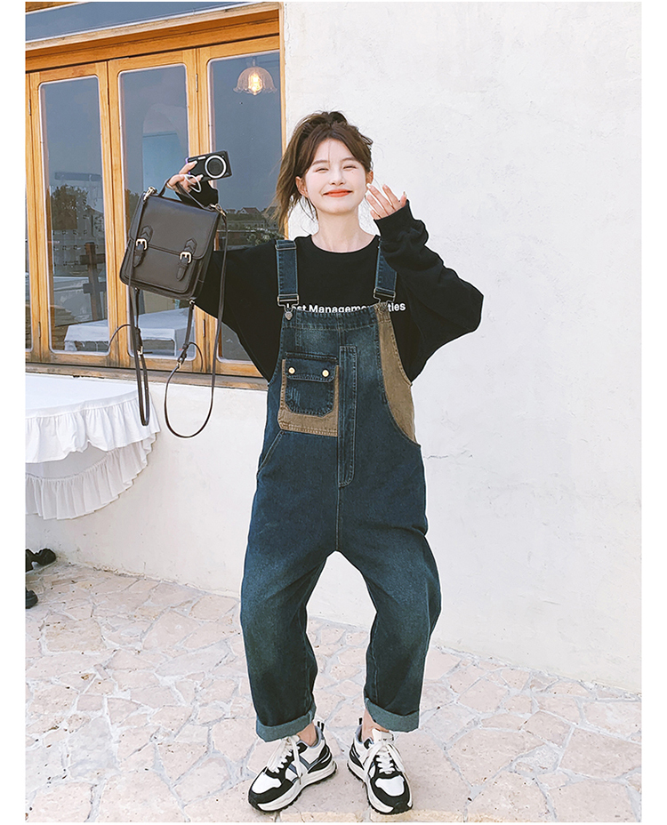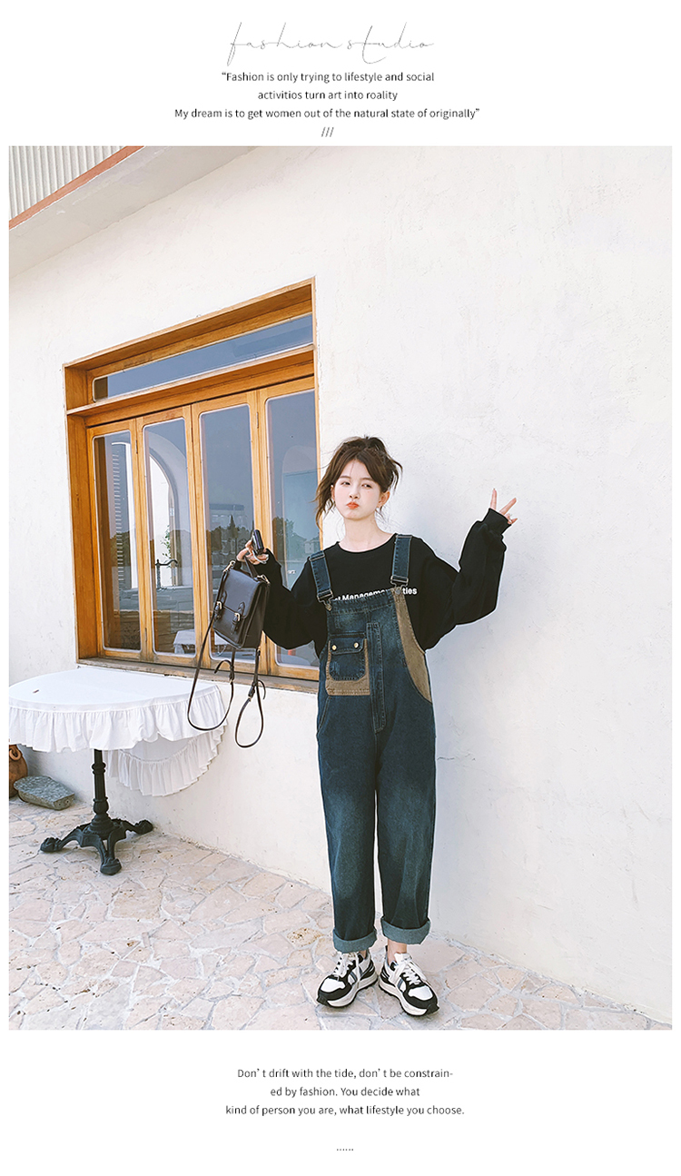 獨家訂製│韓系甜酷風撞色造型牛仔吊帶褲(03H6135)