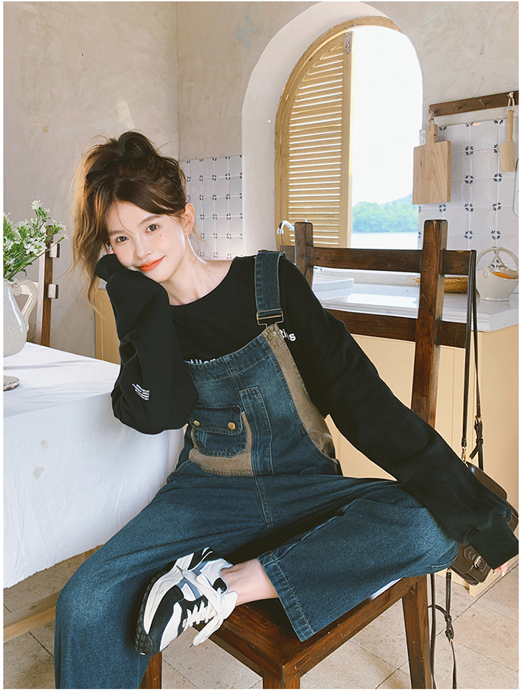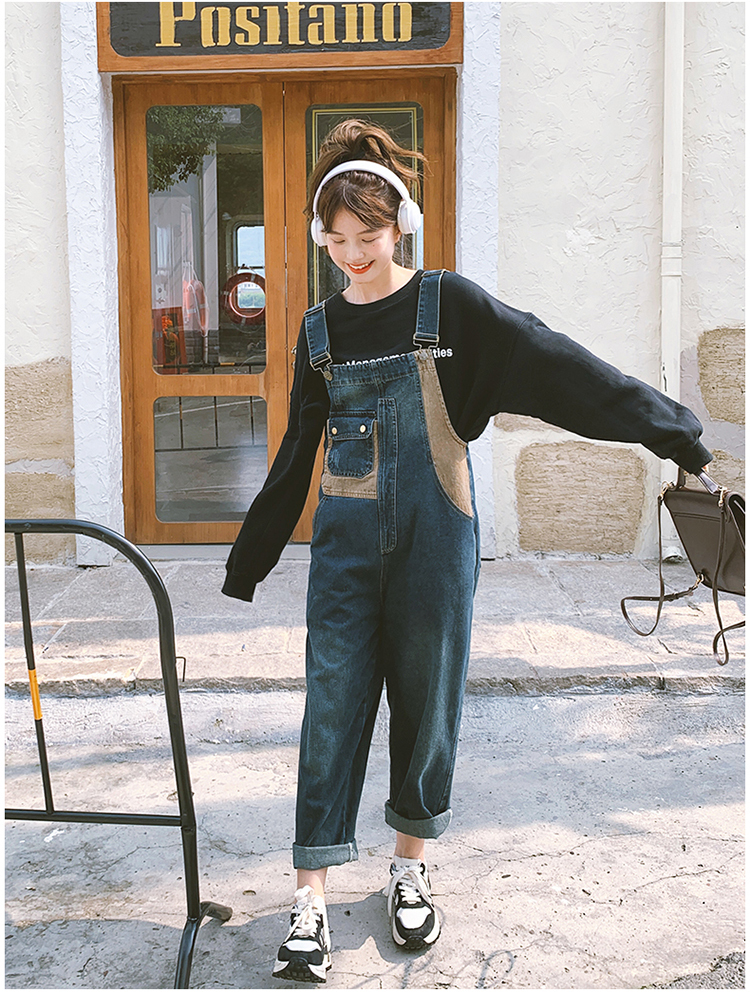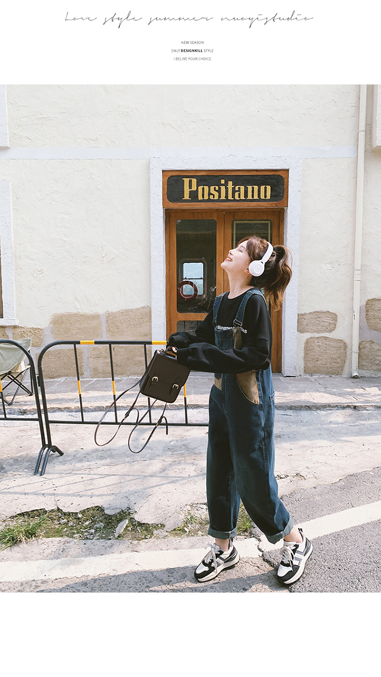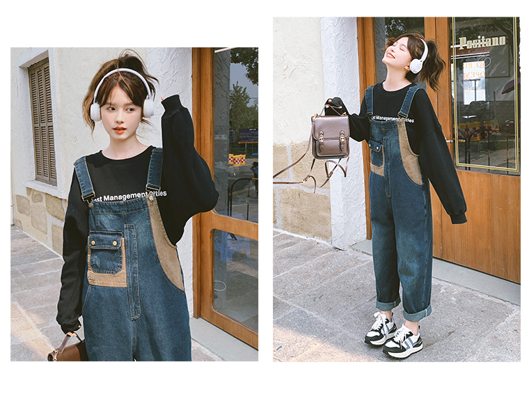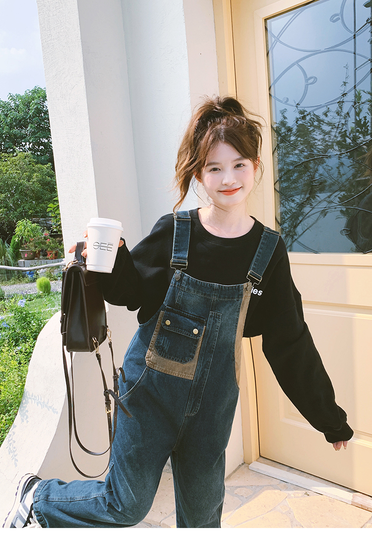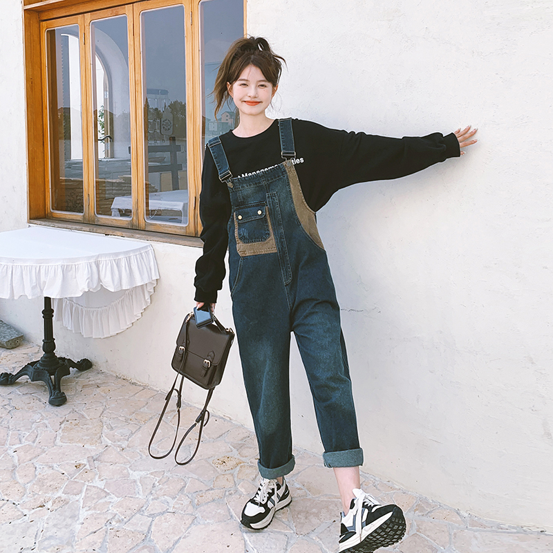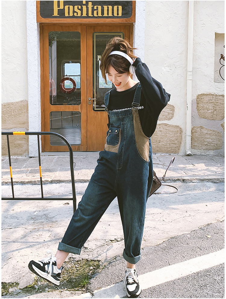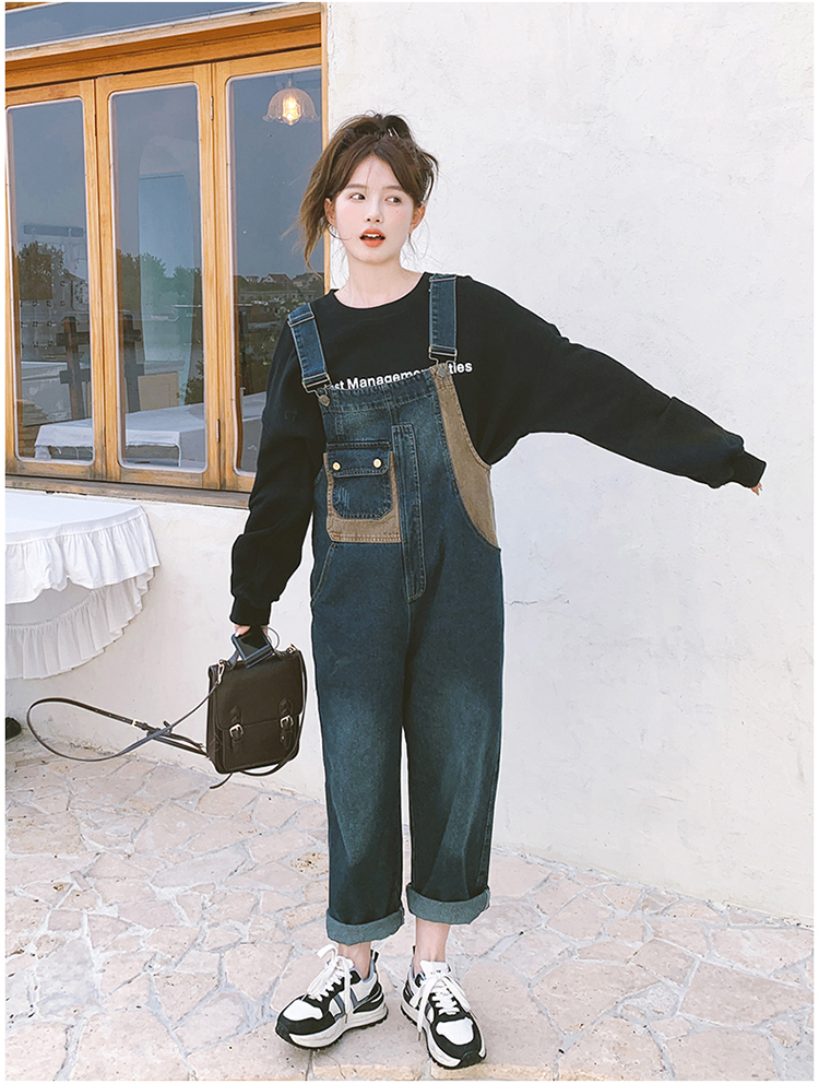 獨家訂製│韓系甜酷風撞色造型牛仔吊帶褲(03H6135)