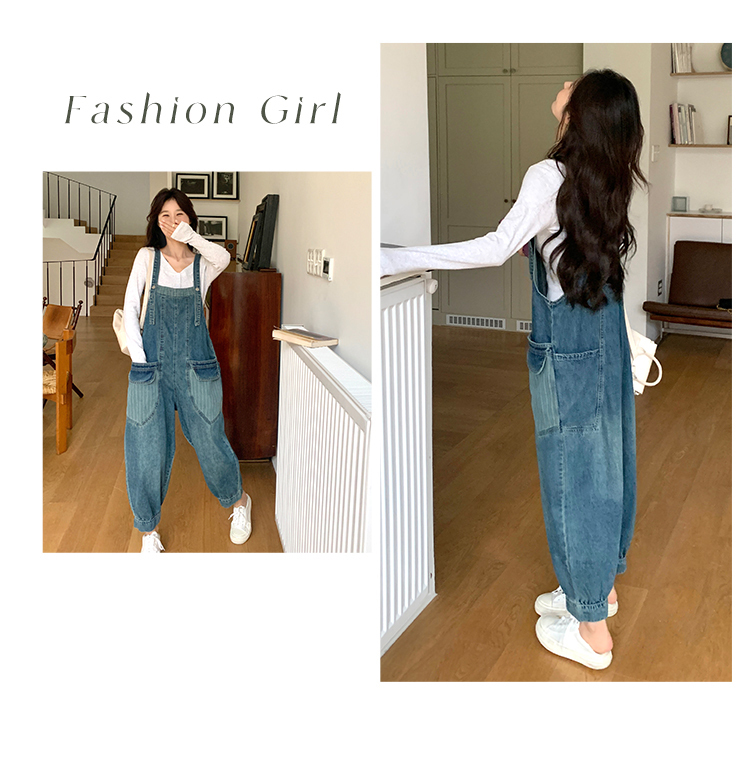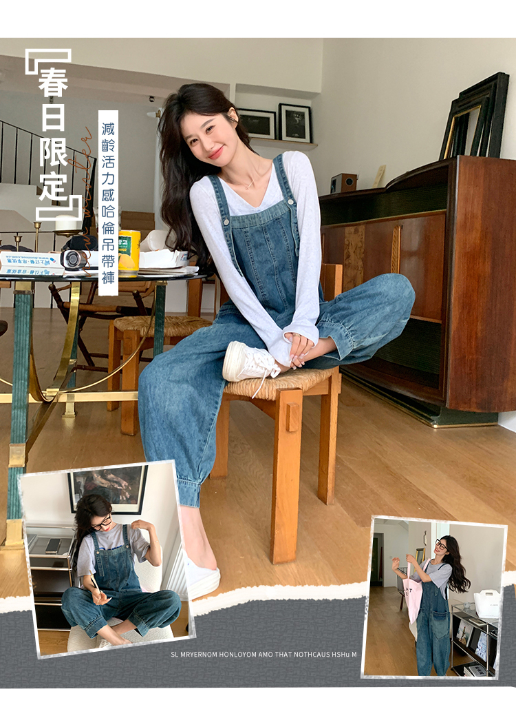 獨家訂製│韓系甜酷風束口褲腳造型闊腿哈倫吊帶褲(03H6137)