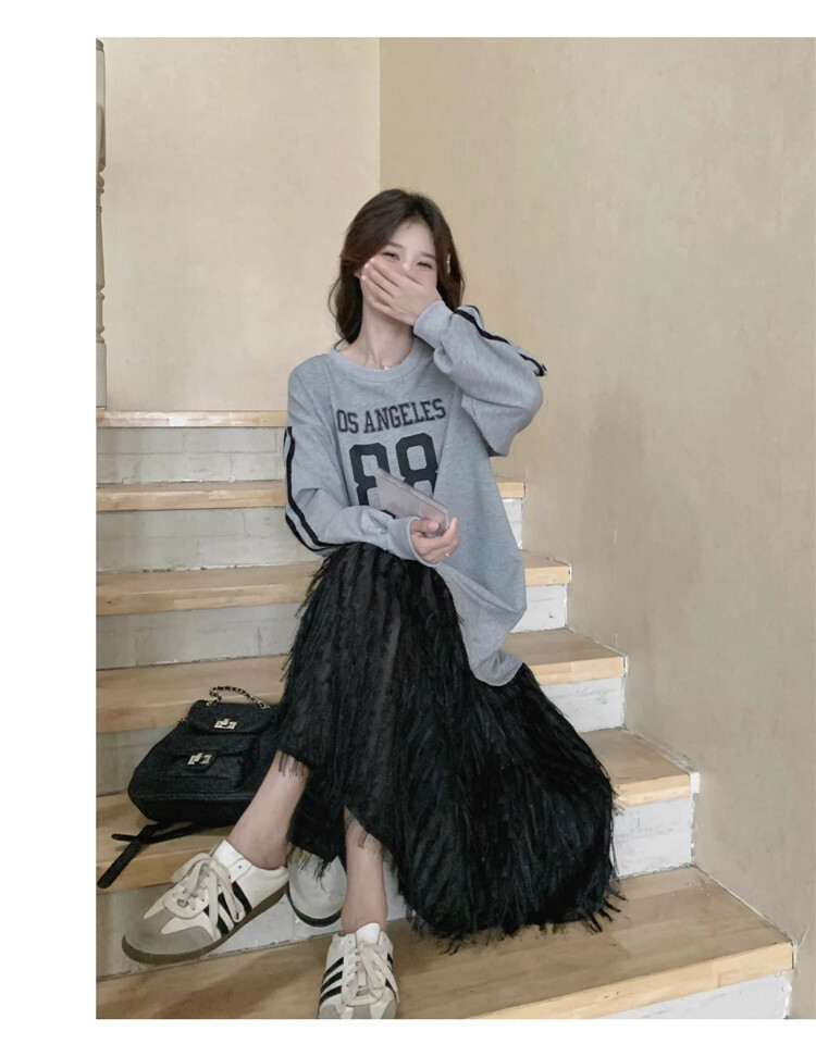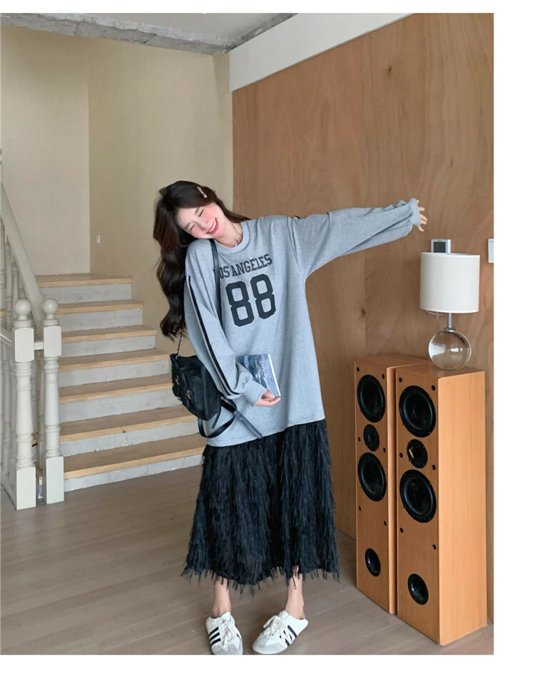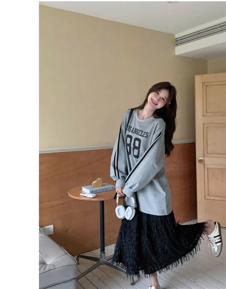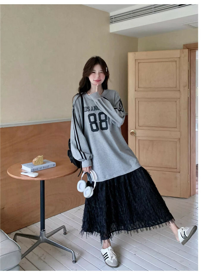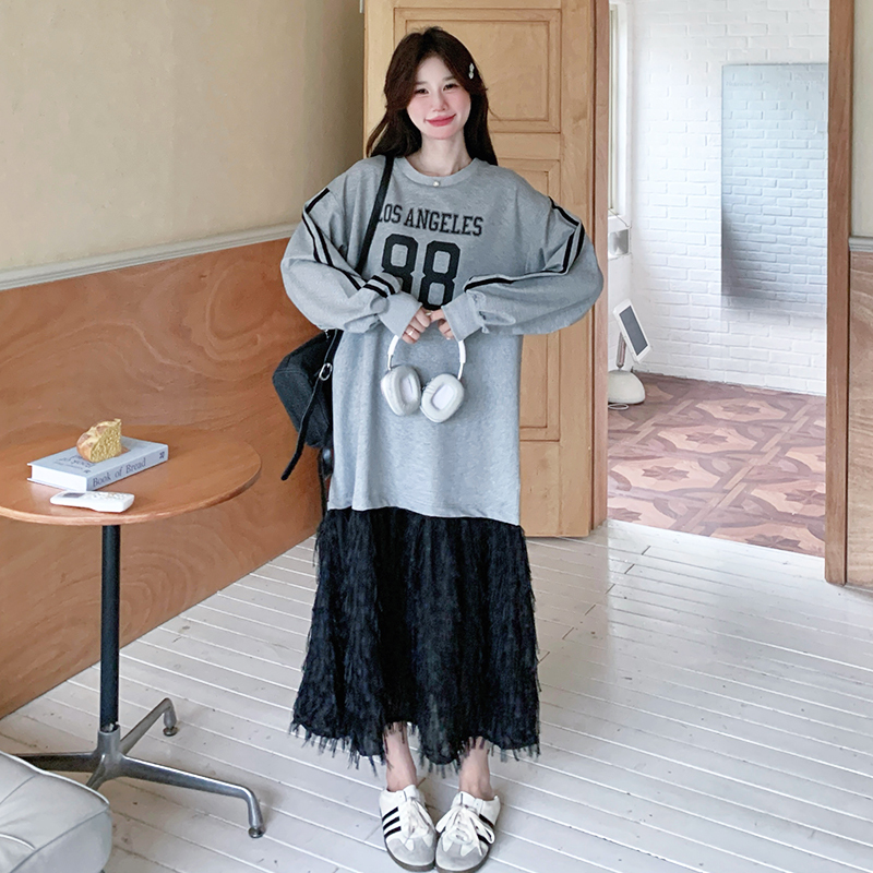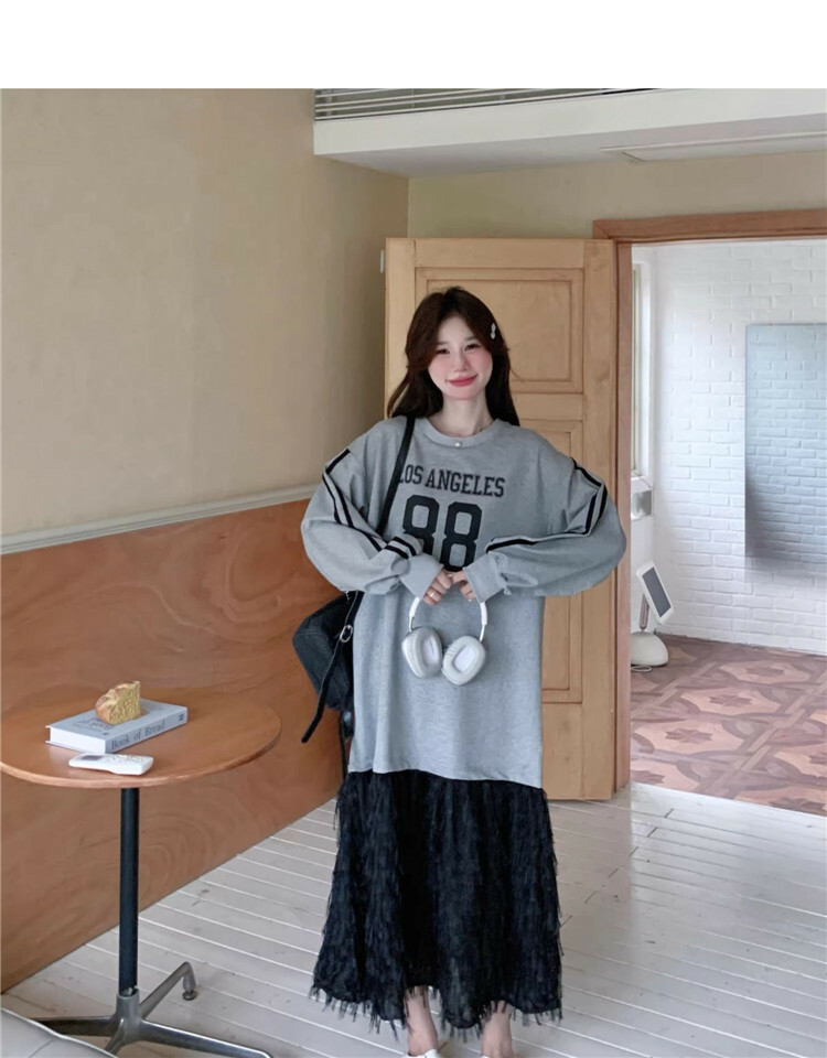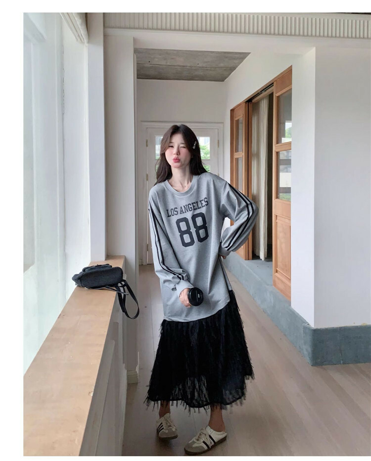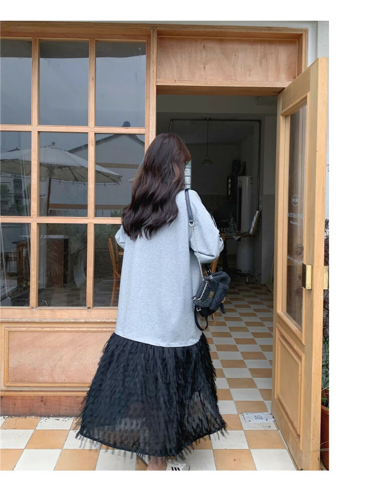 獨家訂製│假2件式連衣裙 韓系甜姊兒拼接流蘇裙襬連衣裙(03H7626)