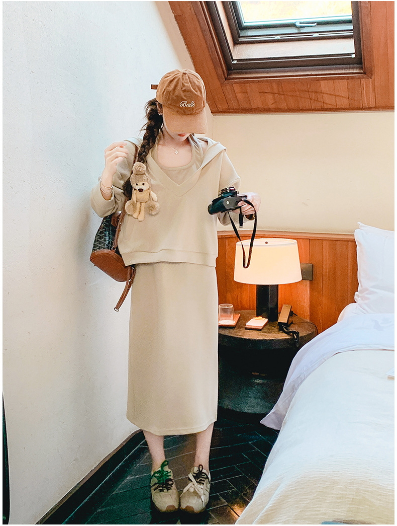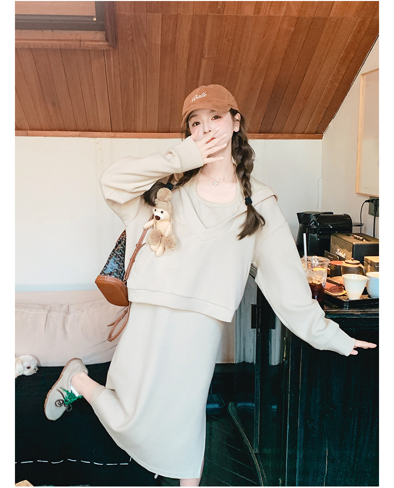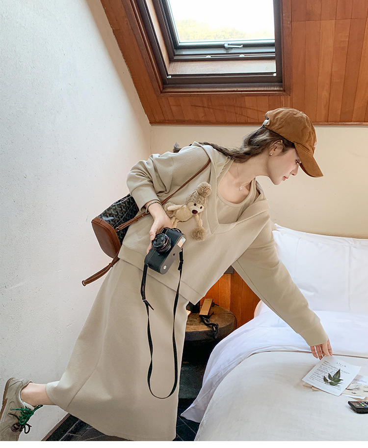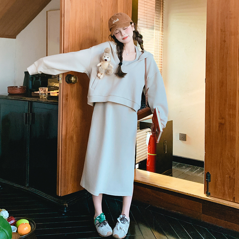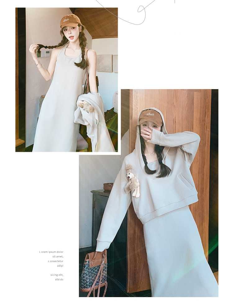 獨家訂製│2件式 韓系甜感玩偶裝飾連帽T恤+背心裙(03H7638)