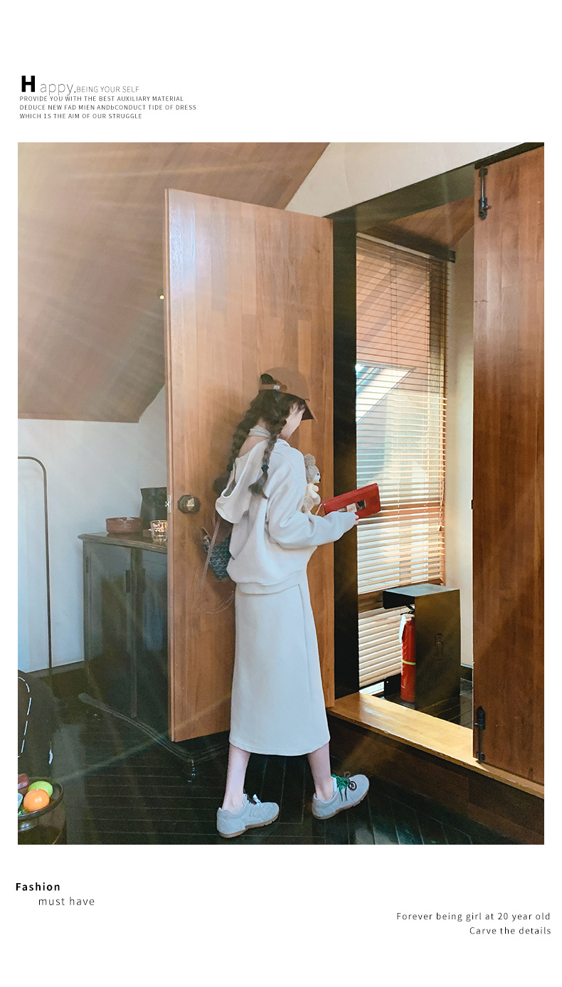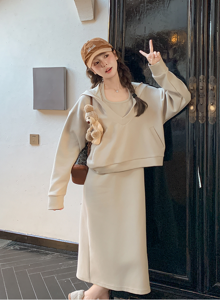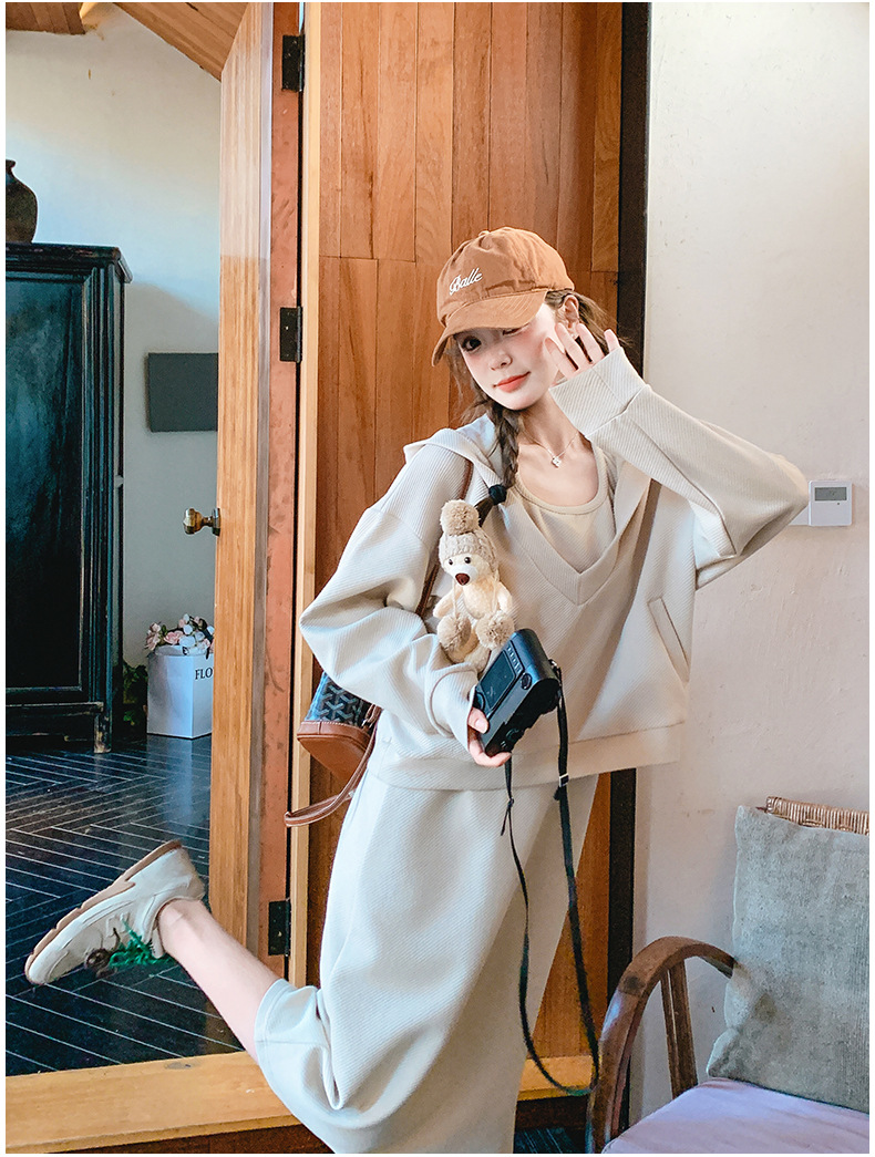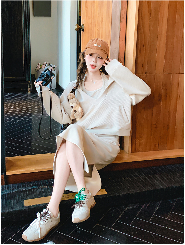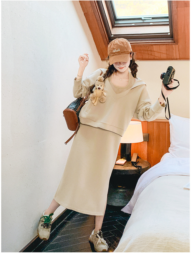 獨家訂製│2件式 韓系甜感玩偶裝飾連帽T恤+背心裙(03H7638)