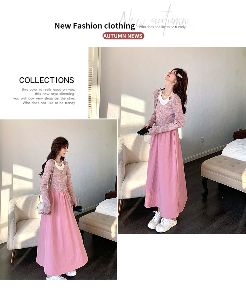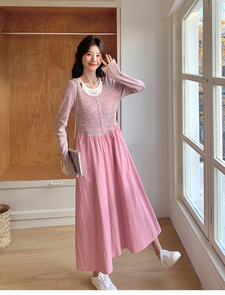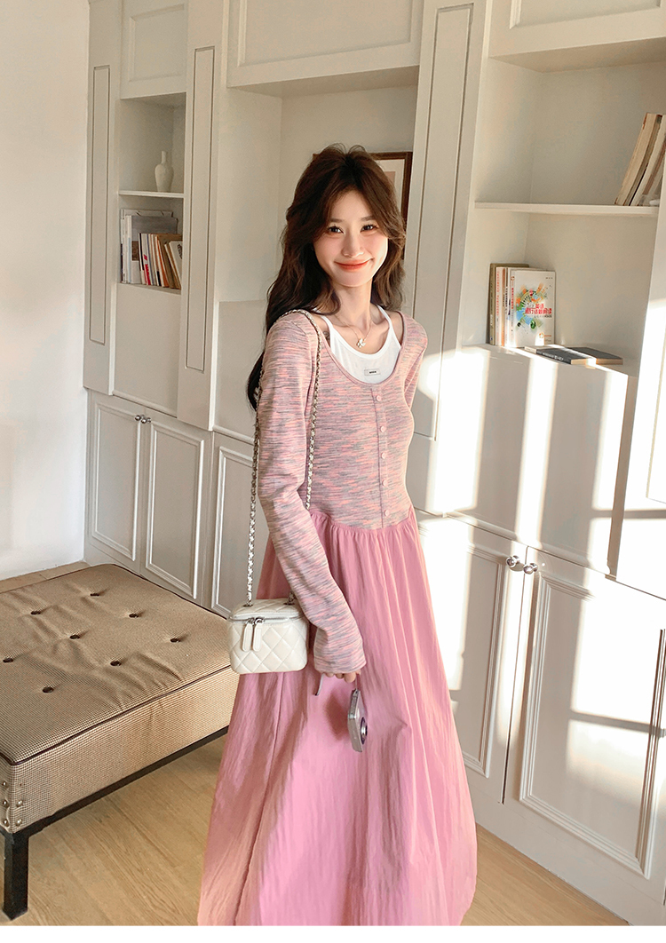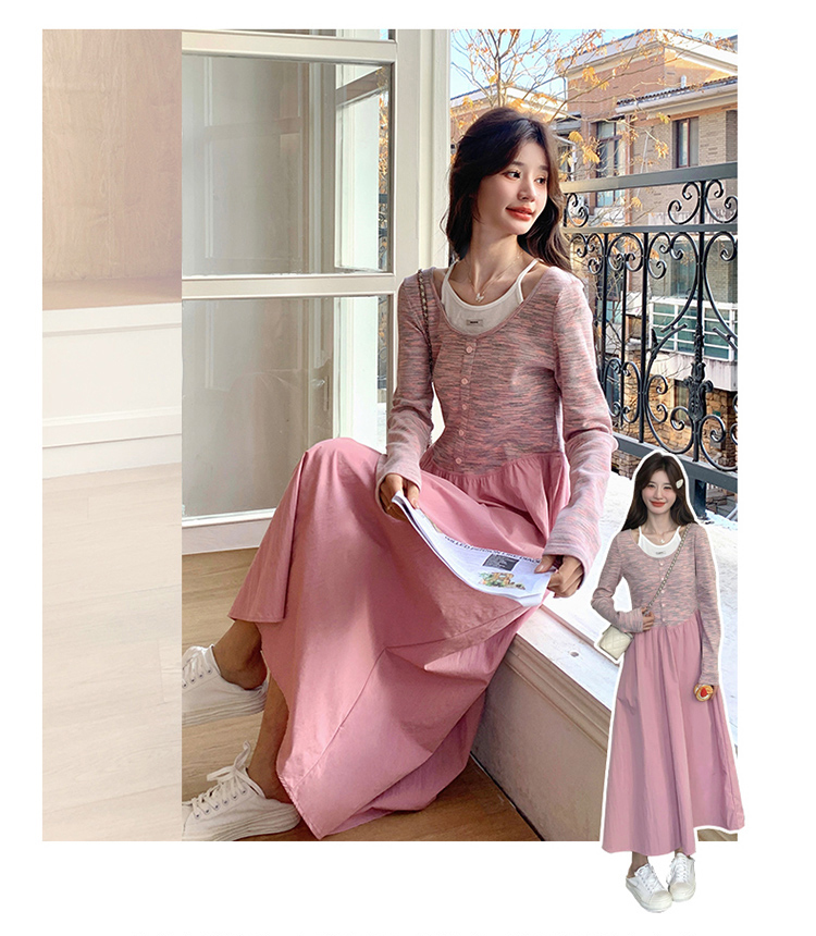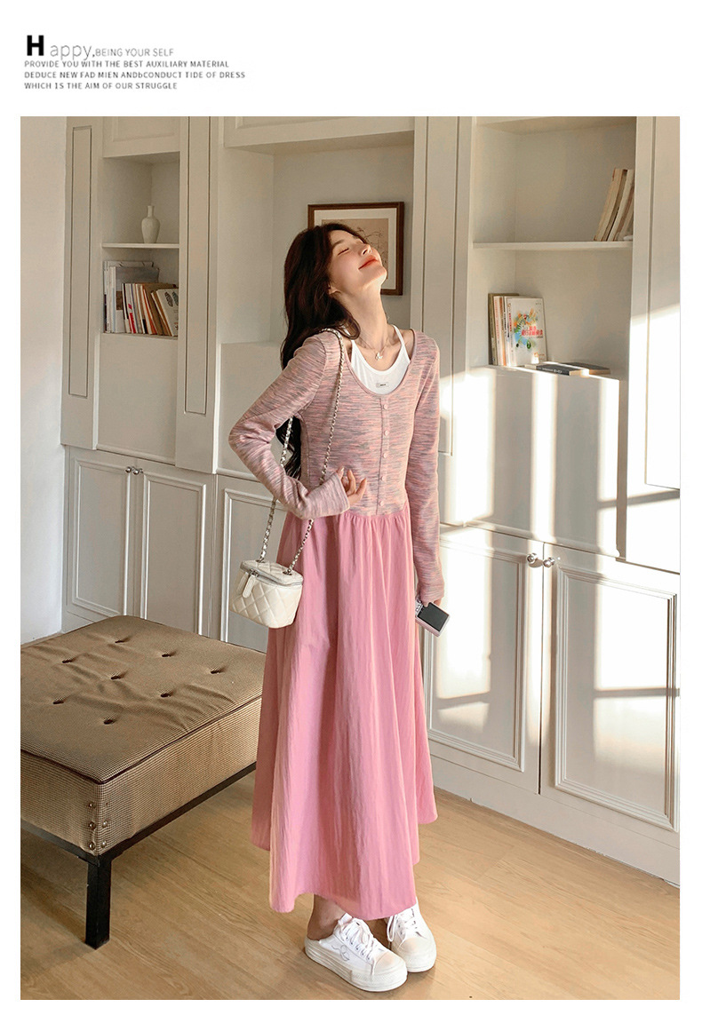 獨家訂製│假2件式連衣裙 韓系甜姊兒撞色拼接收腰連衣裙(03H7654)