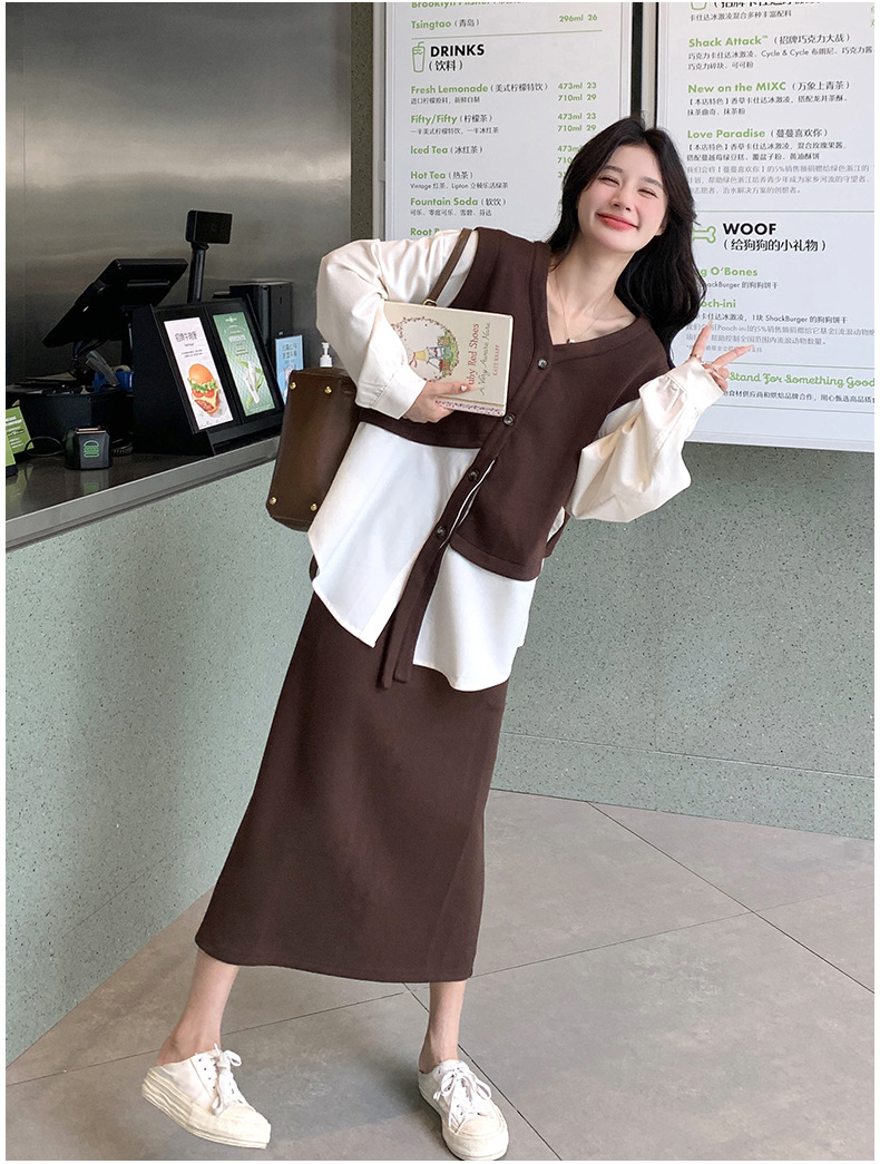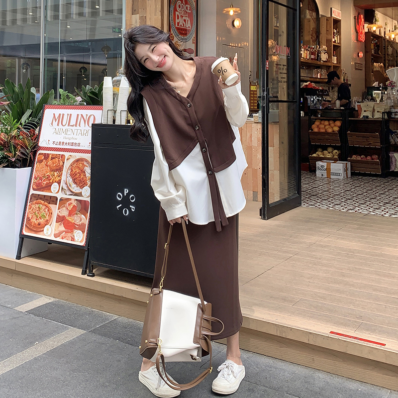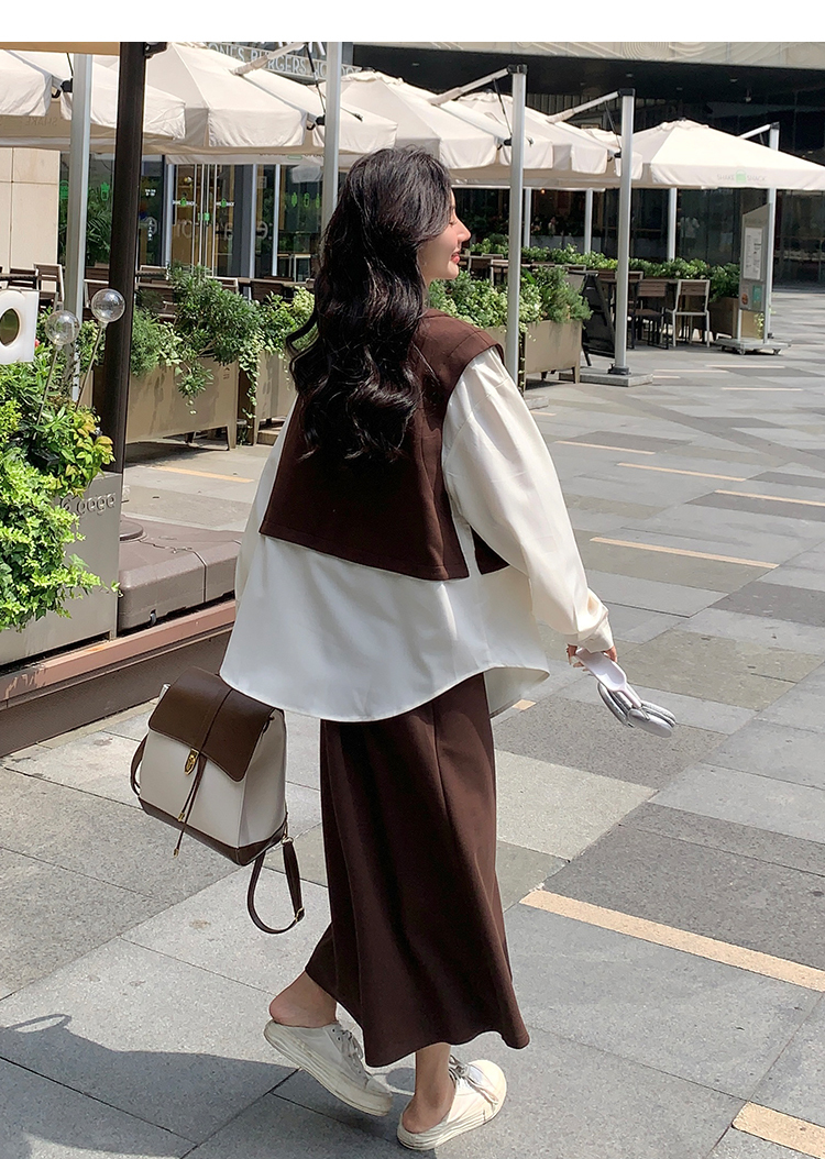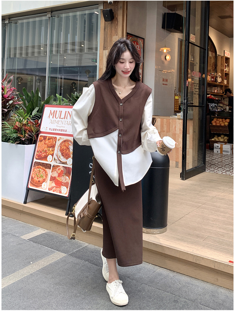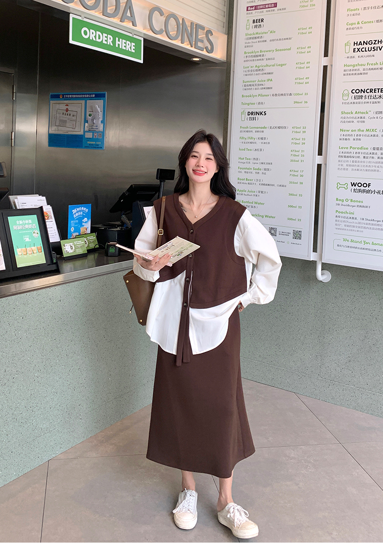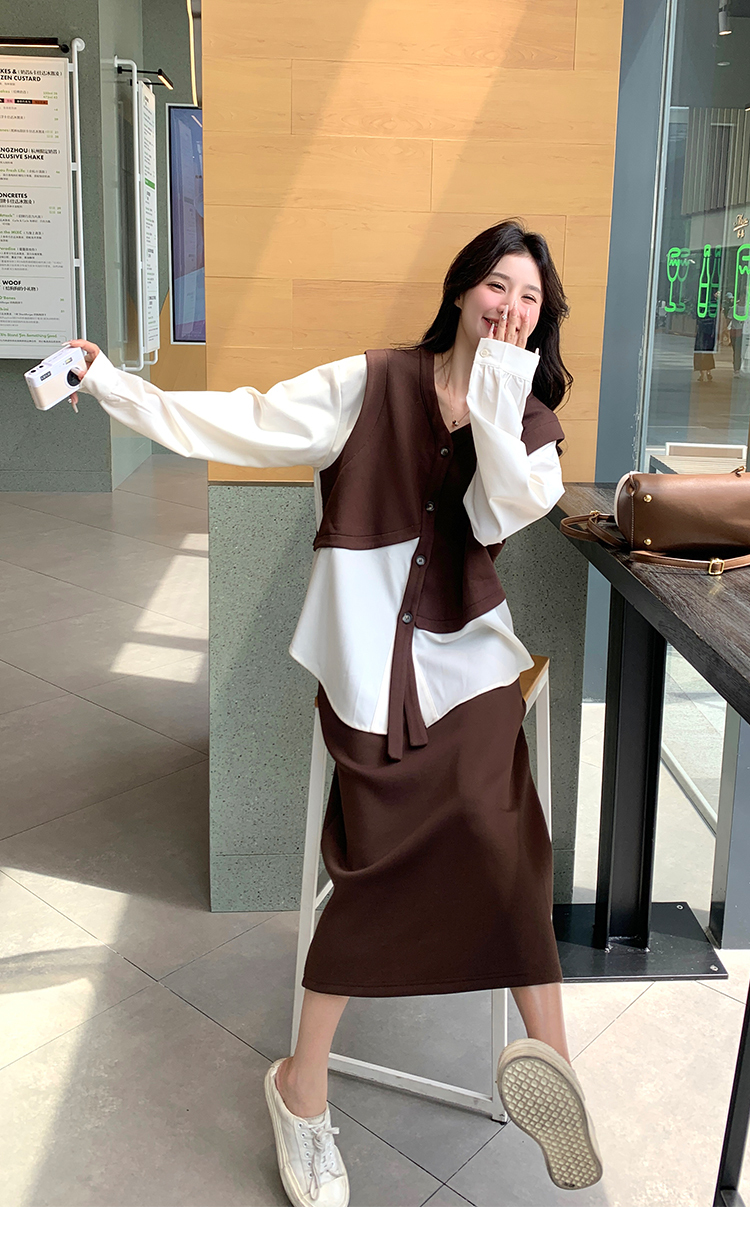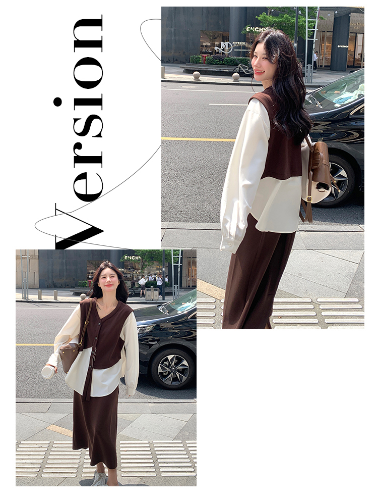 獨家訂製│2件式 韓系氣質感撞色假兩件式上衣+A字裙(03H7688)