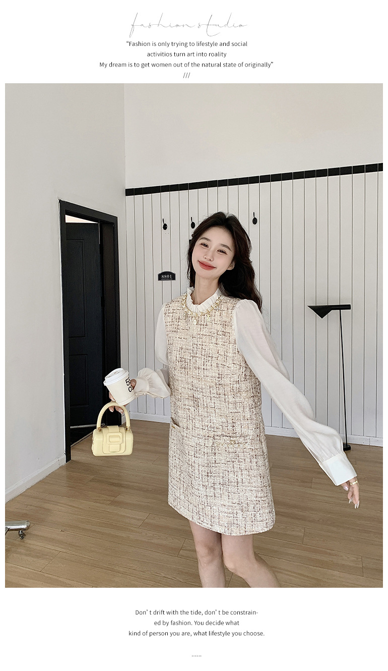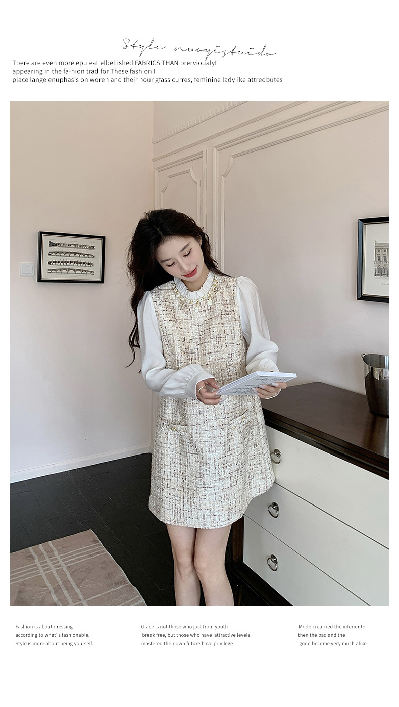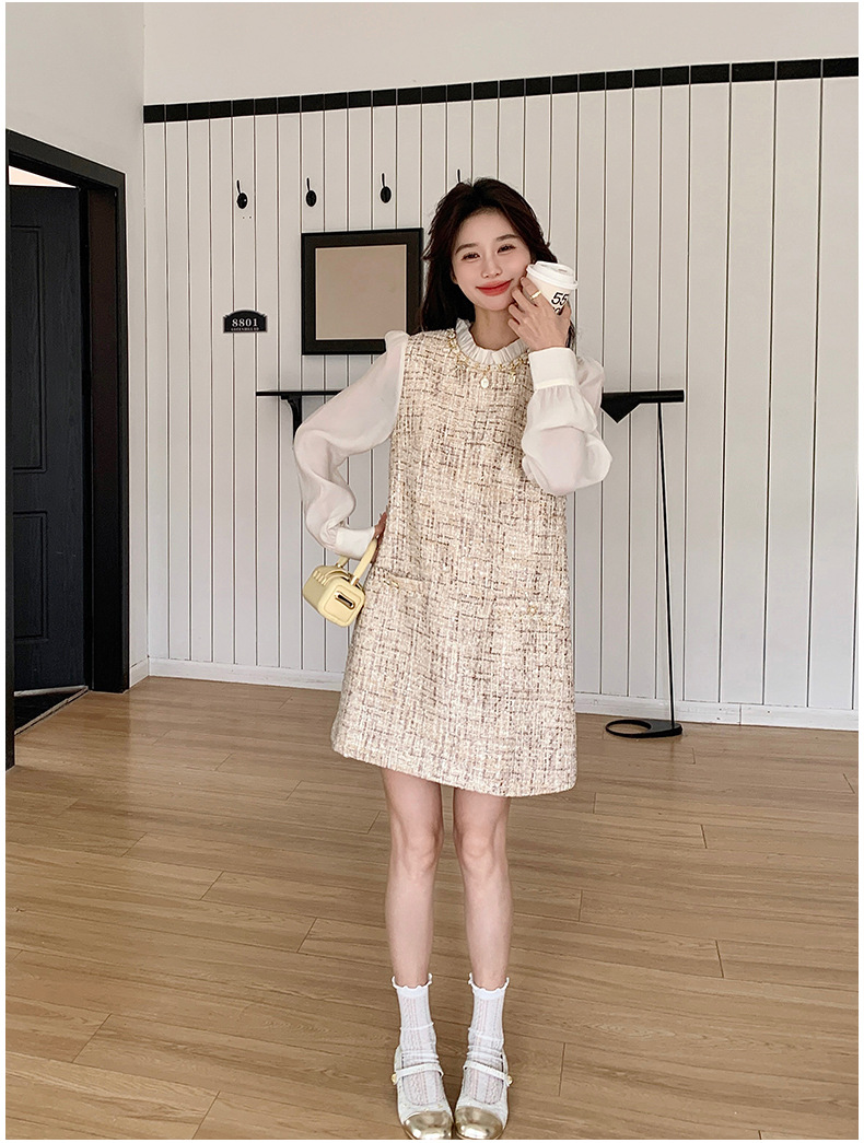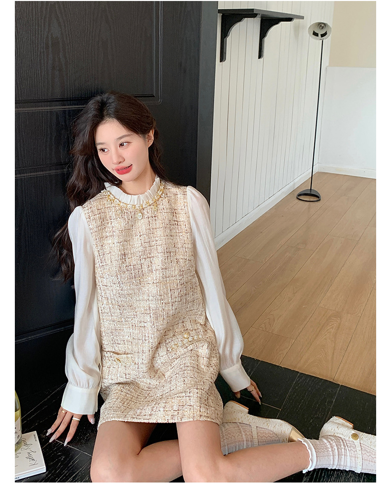 🔺面料:雪紡+粗花呢