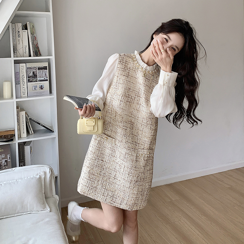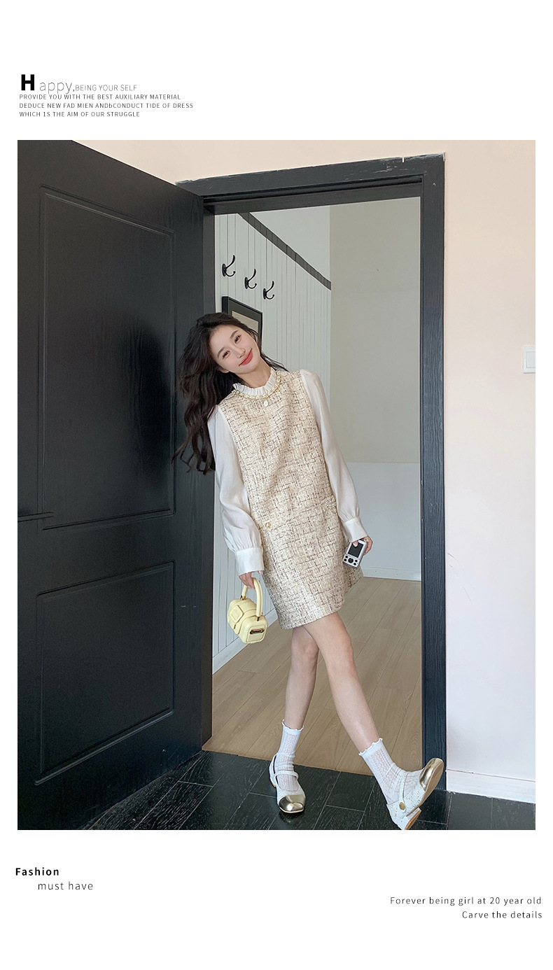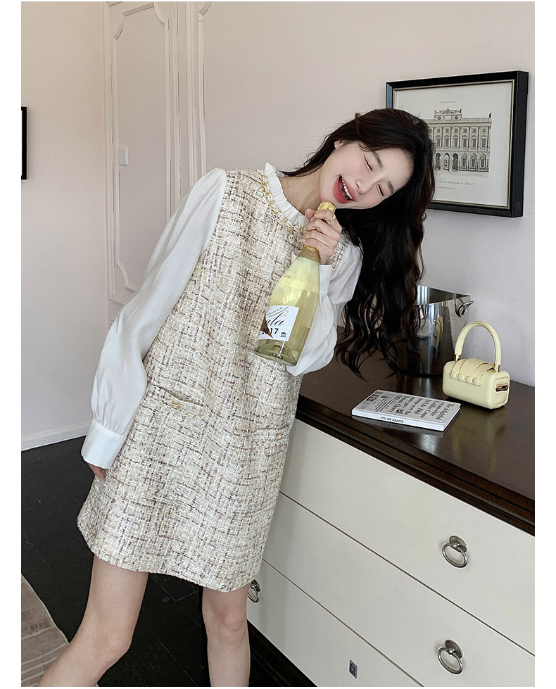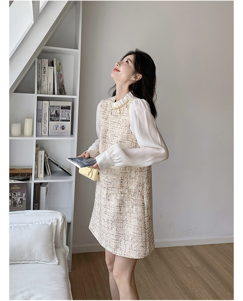 🔺面料:雪紡+粗花呢