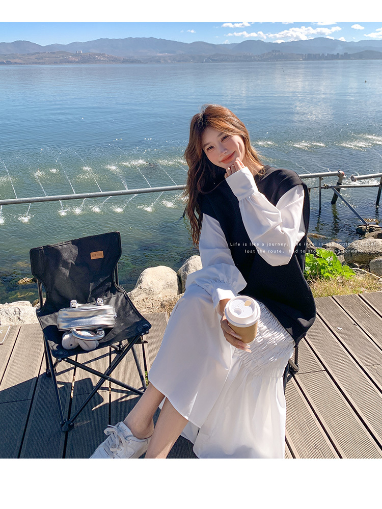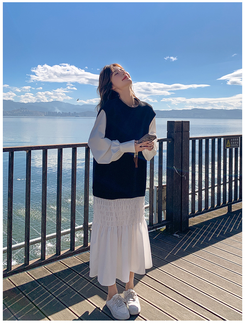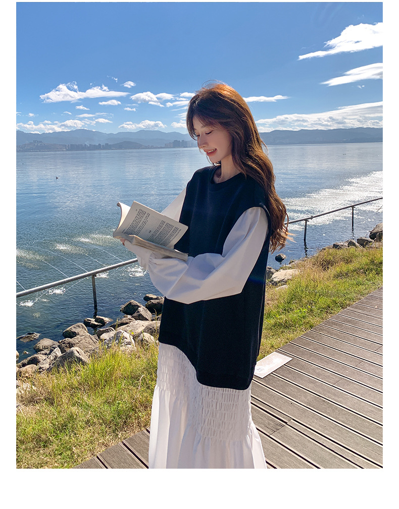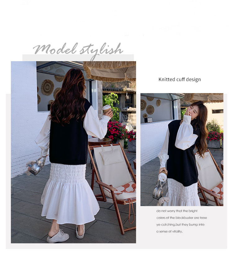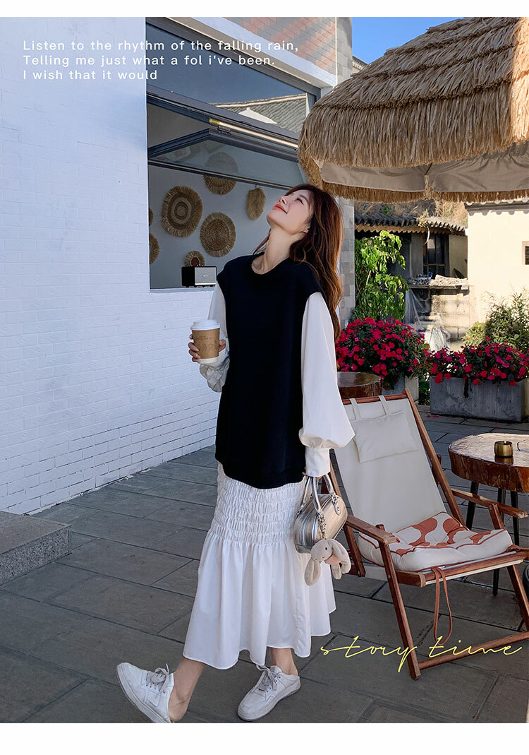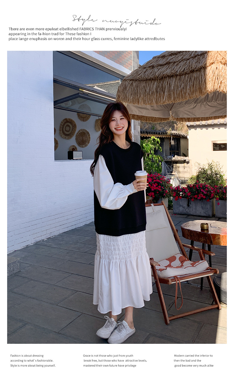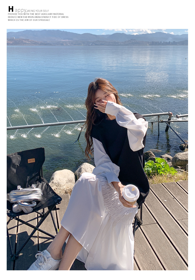 獨家訂製│假2件連衣裙 韓系氣質感撞色拼接連衣裙(03H7728)