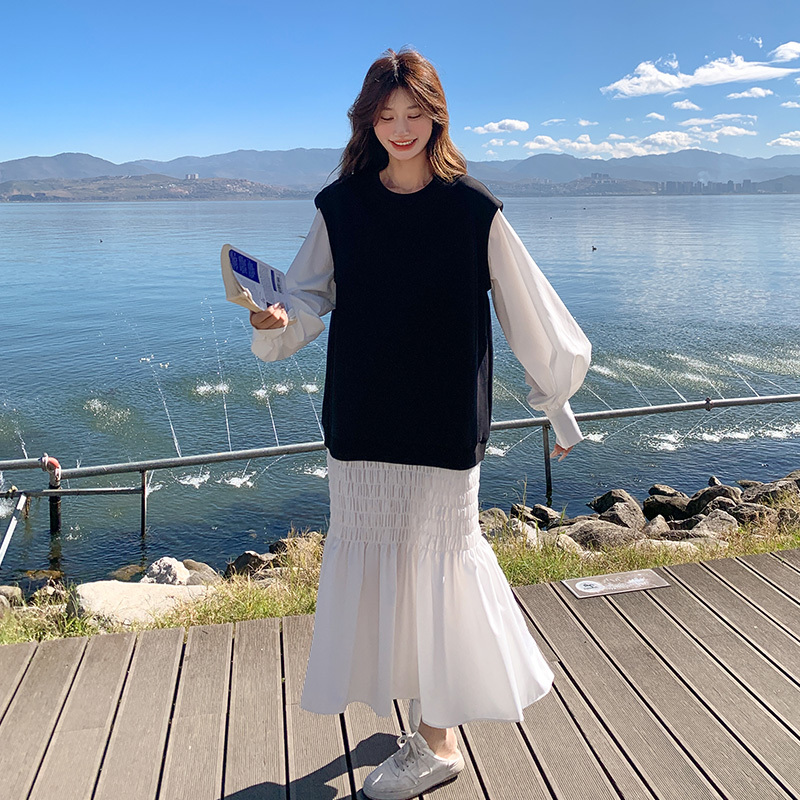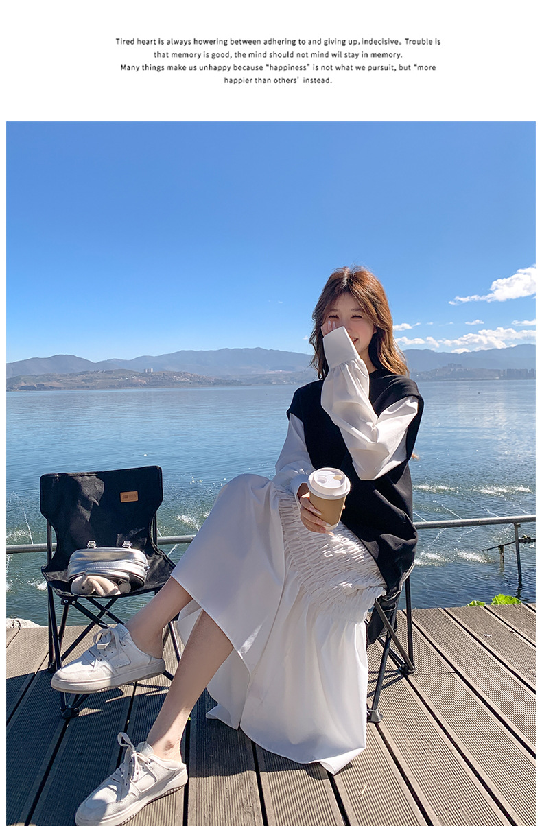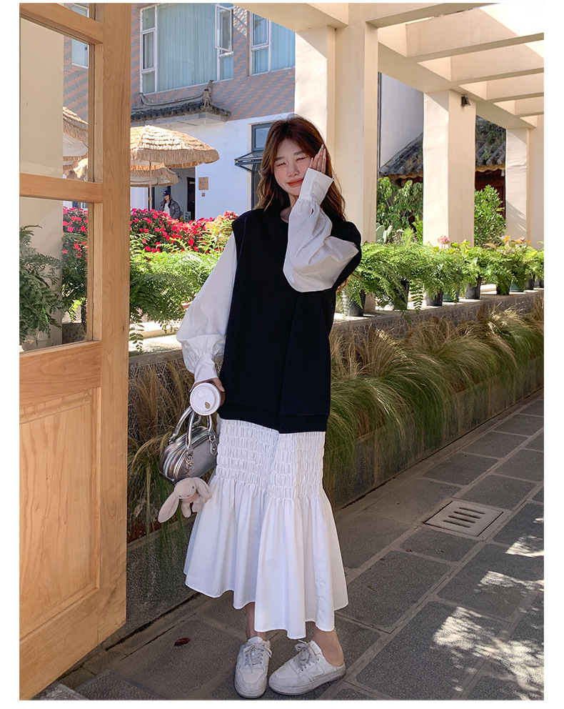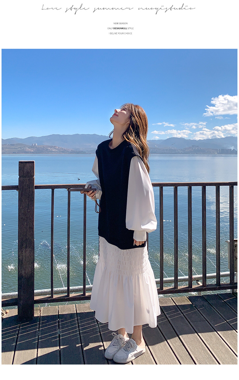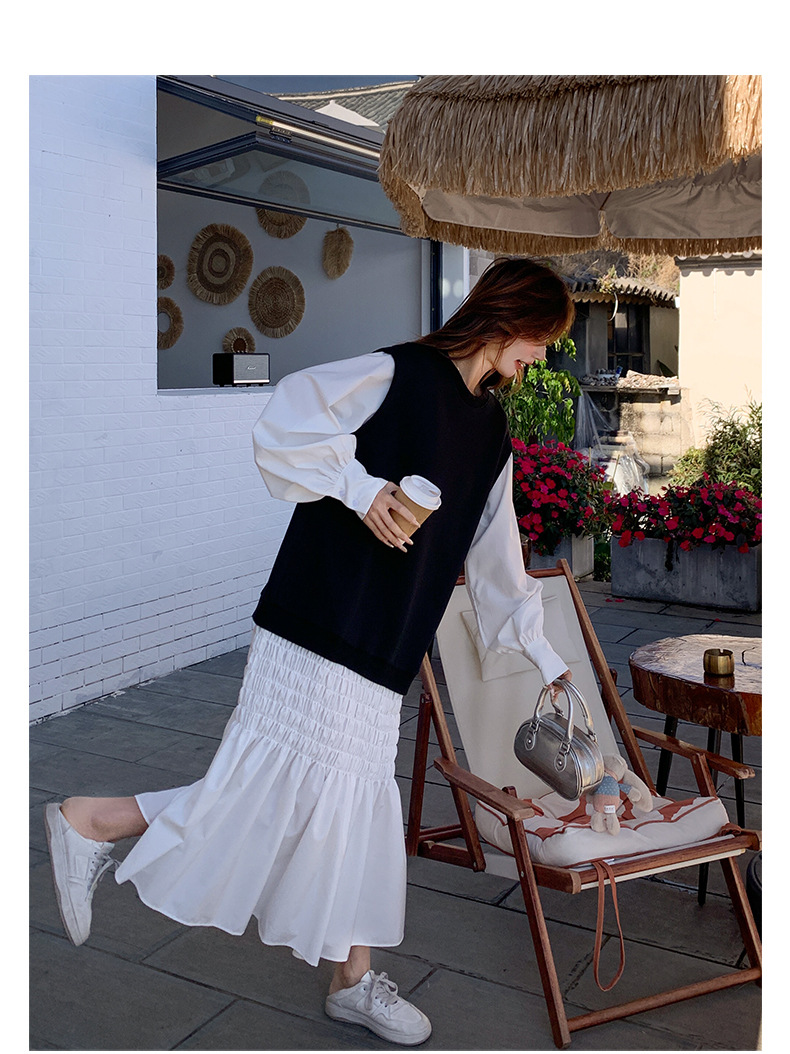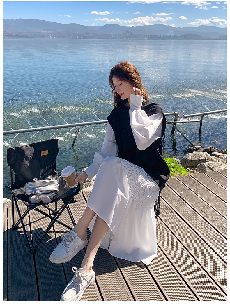 獨家訂製│假2件連衣裙 韓系氣質感撞色拼接連衣裙(03H7728)