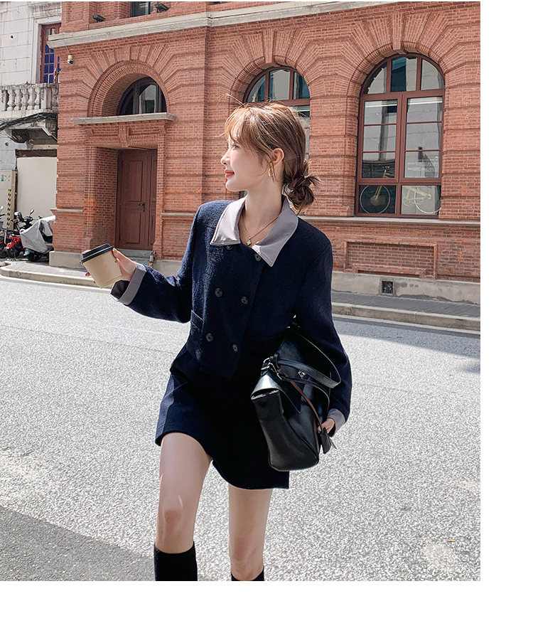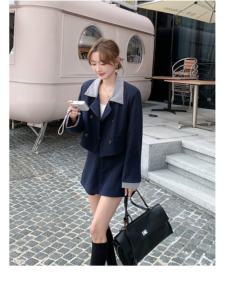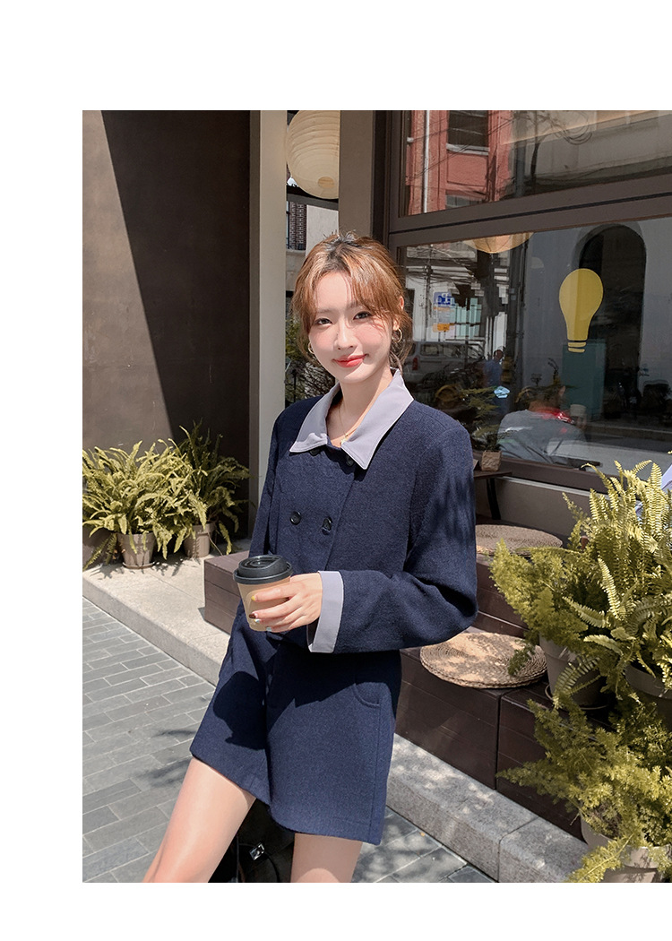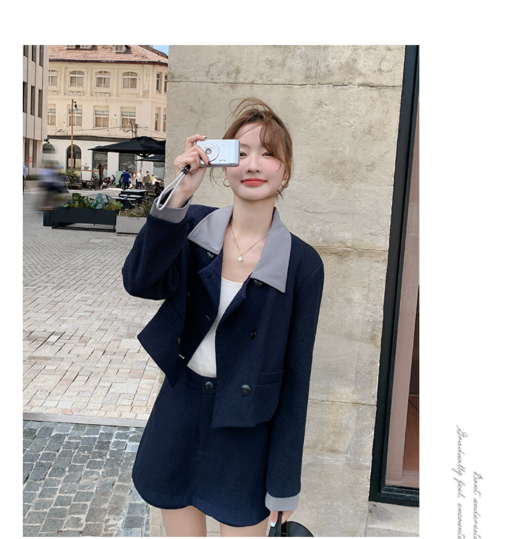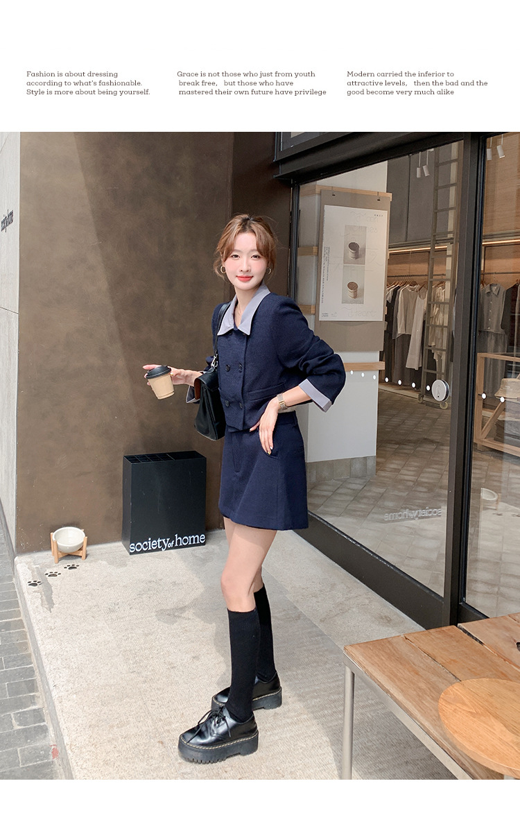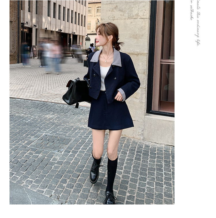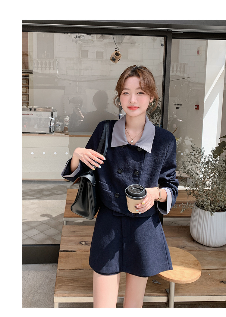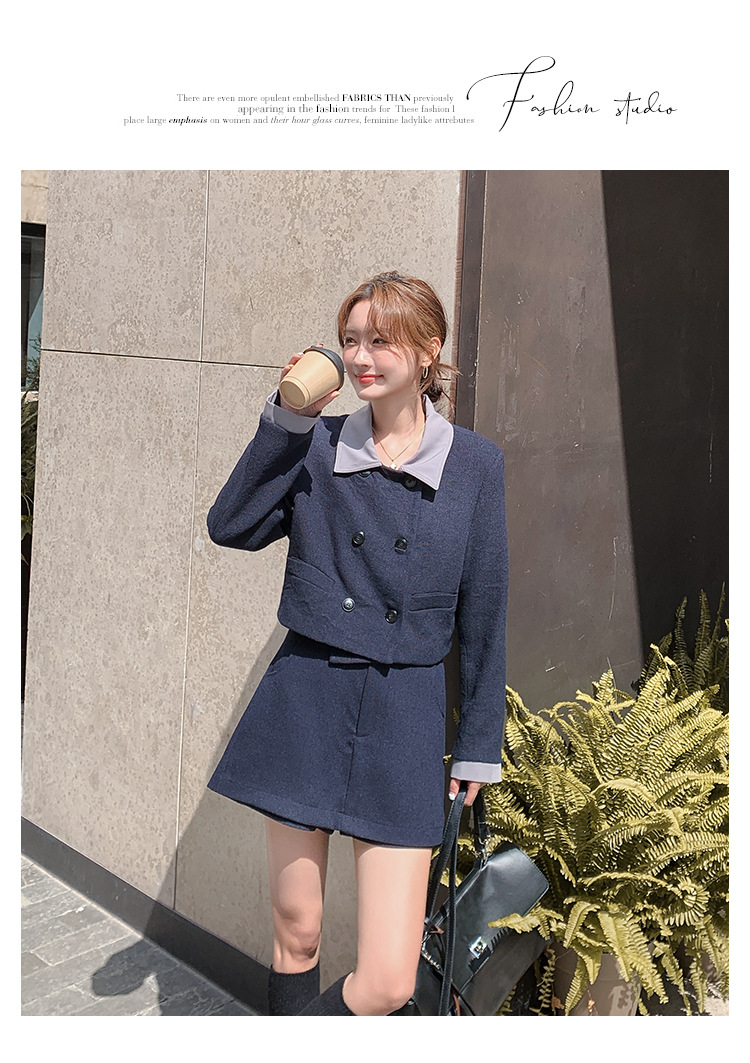 獨家訂製│2件式 韓系率性撞色翻領外套+拼接造型褲裙(03H7729)