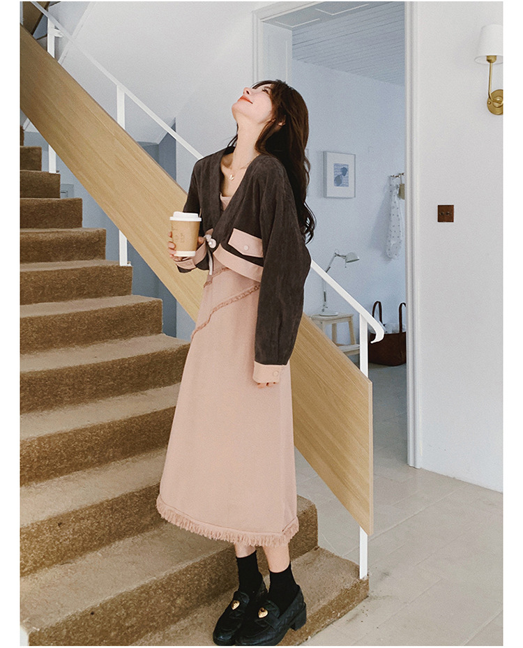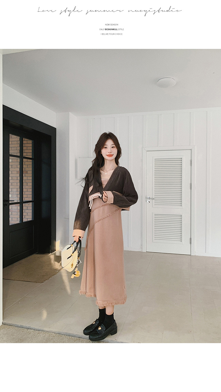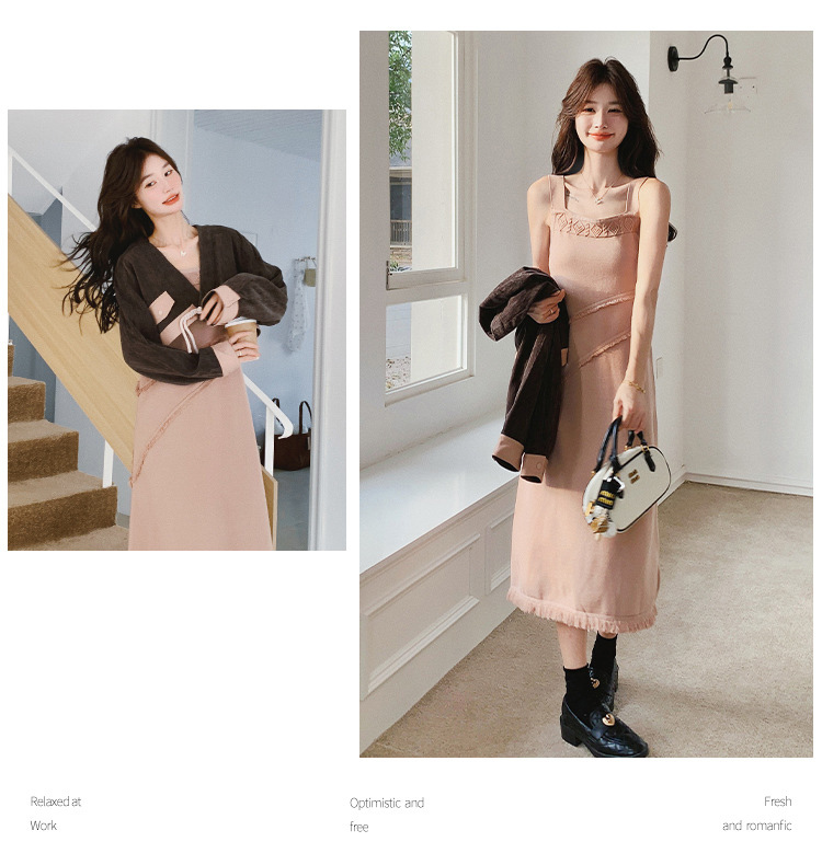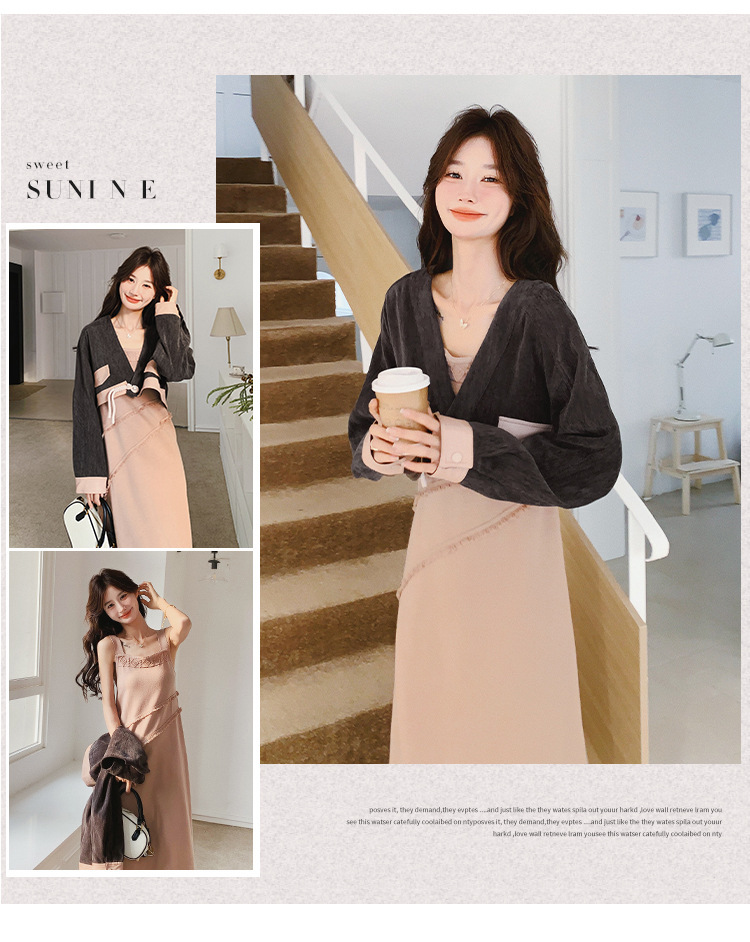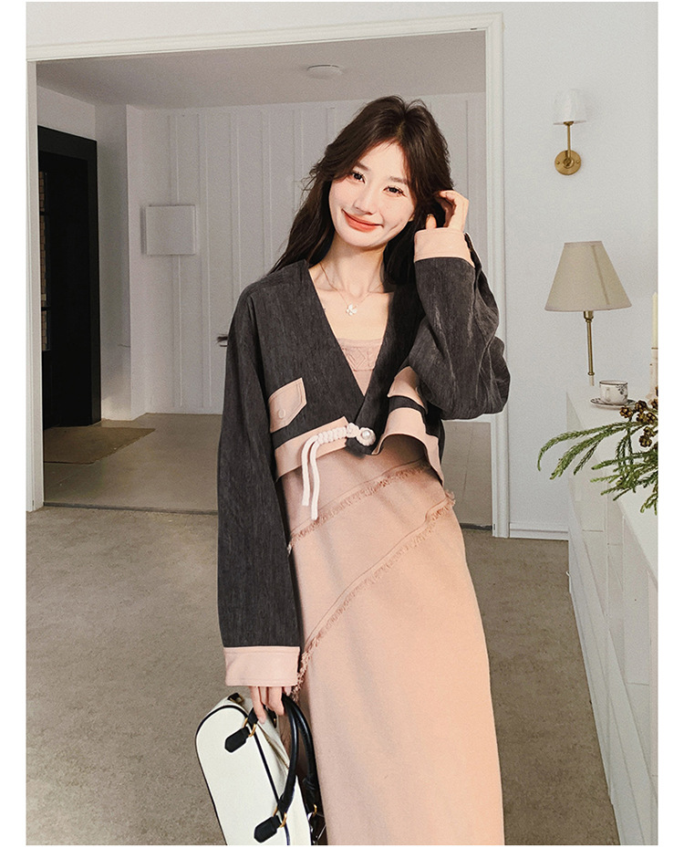 獨家訂製│2件式 韓系氣質感撞色外套+吊帶裙(03H7767)