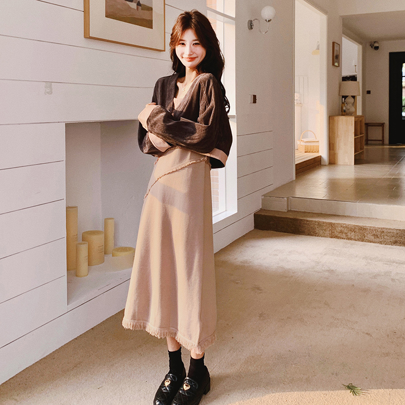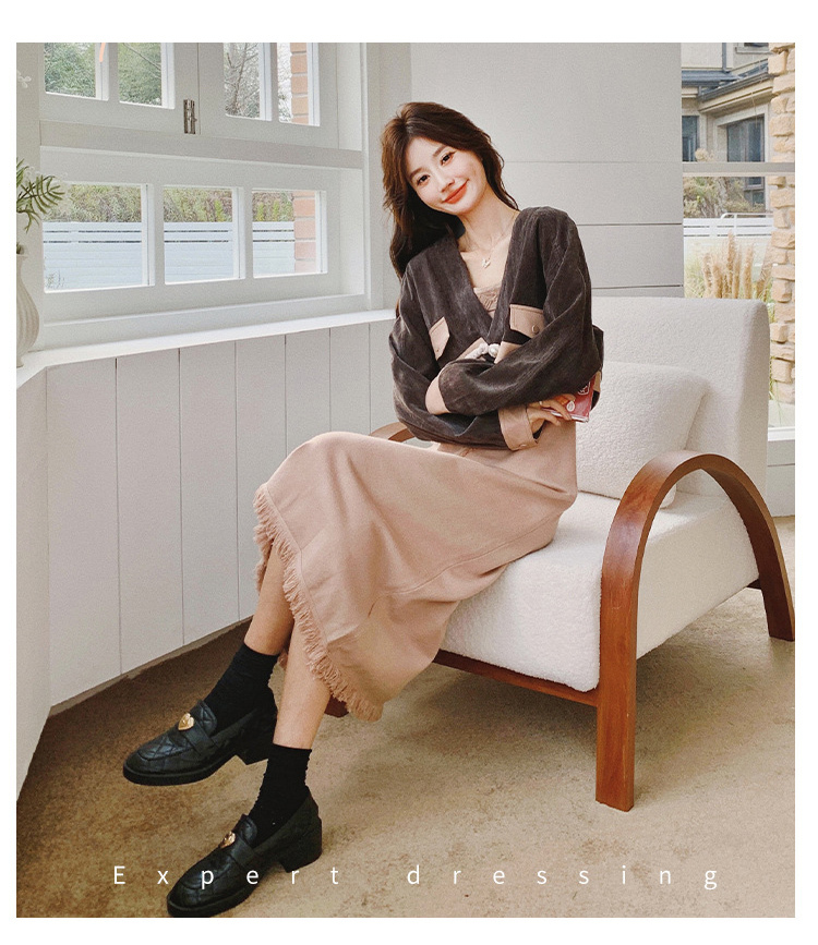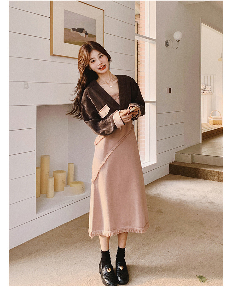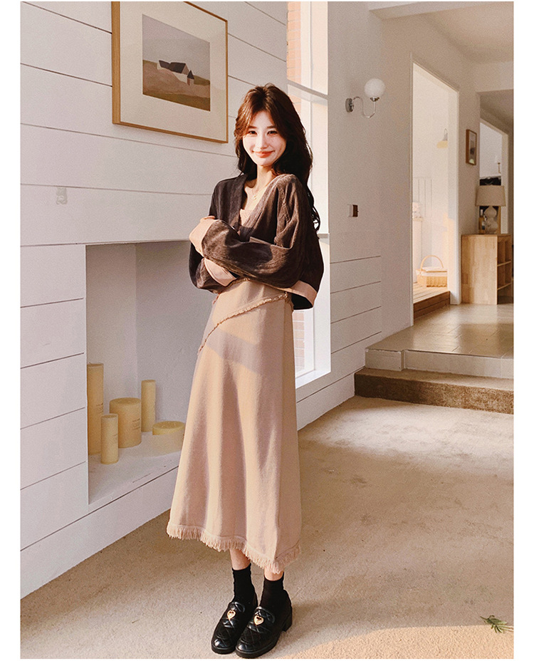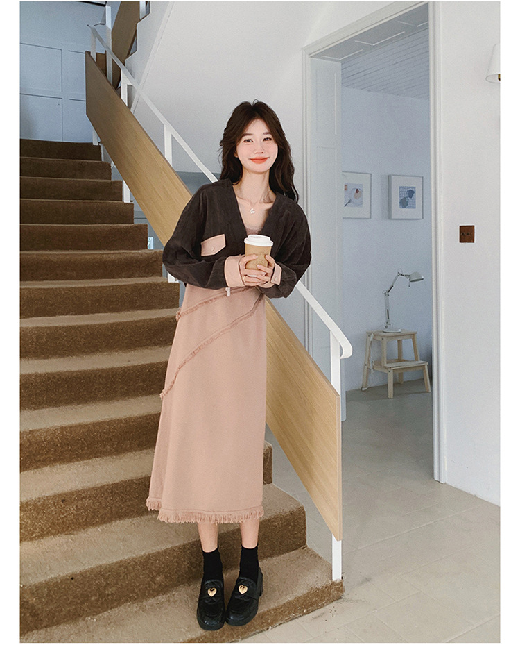 獨家訂製│2件式 韓系氣質感撞色外套+吊帶裙(03H7767)