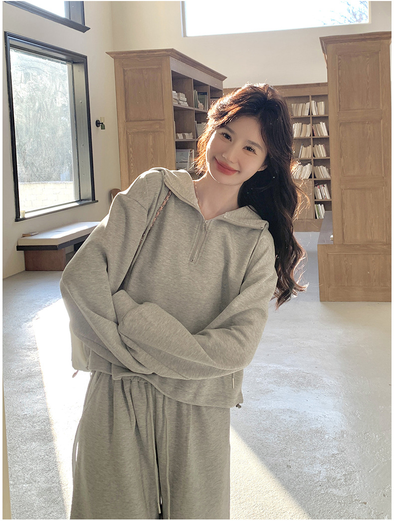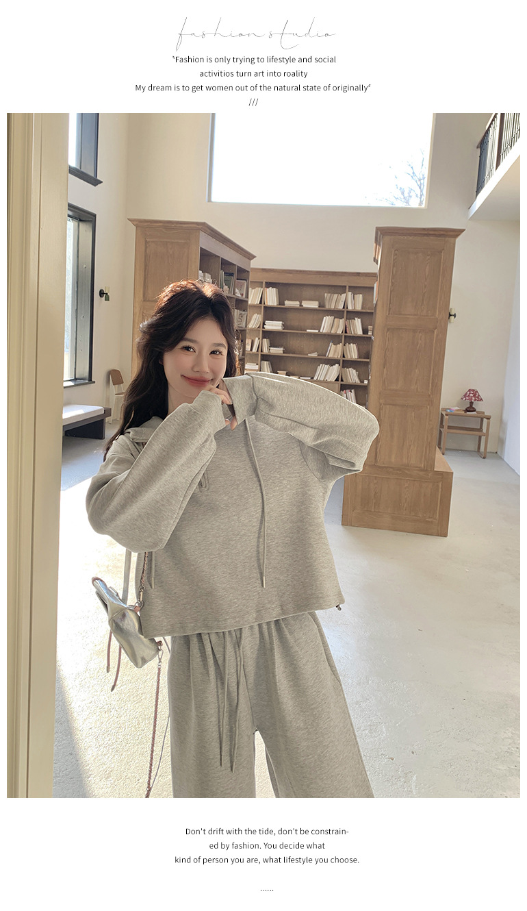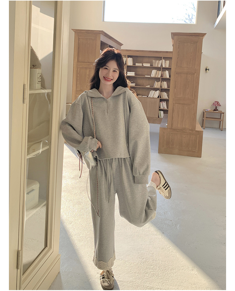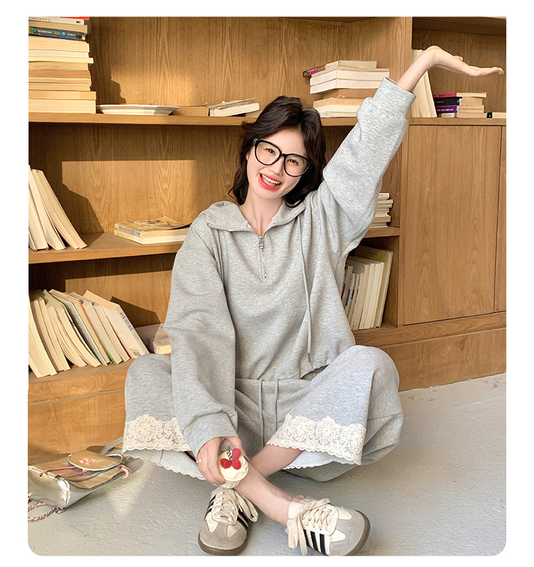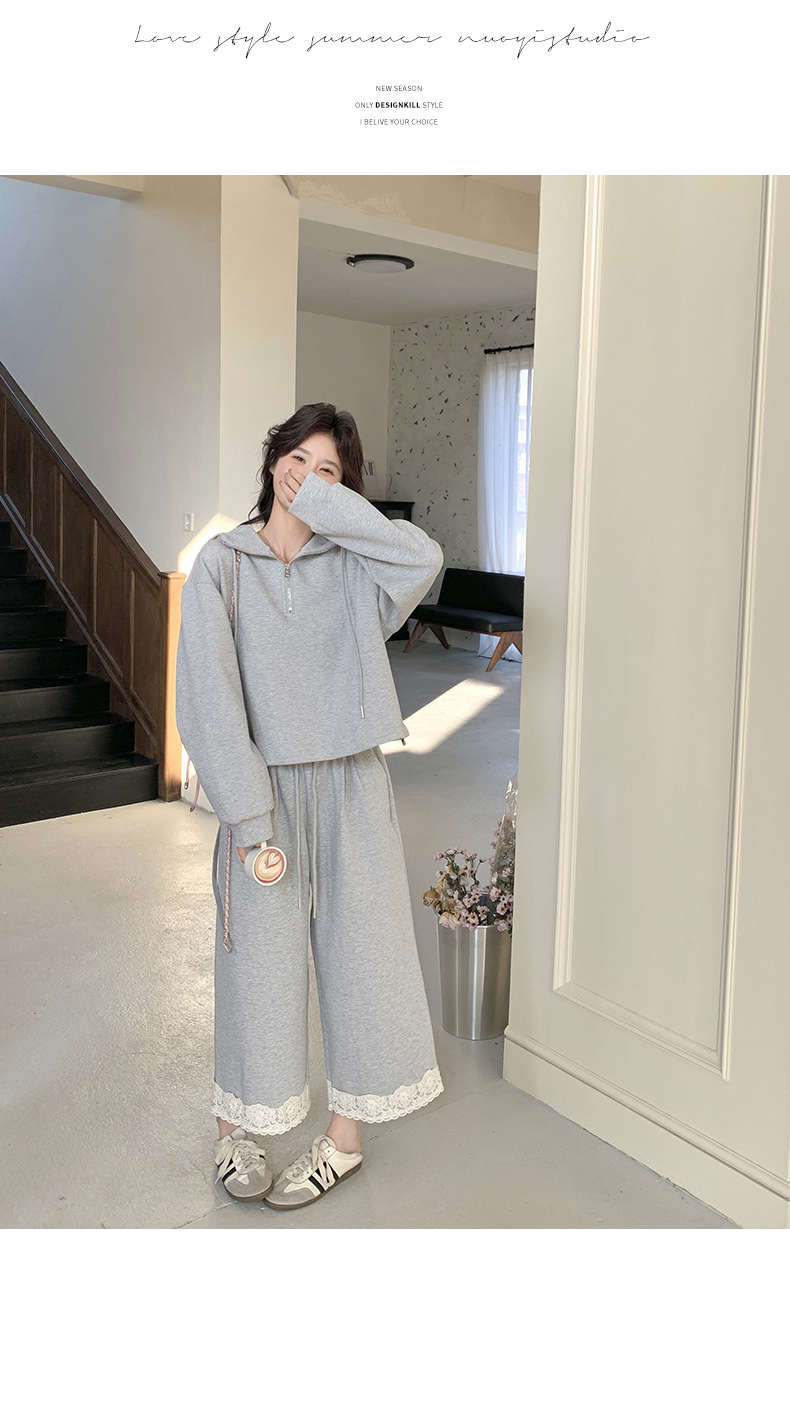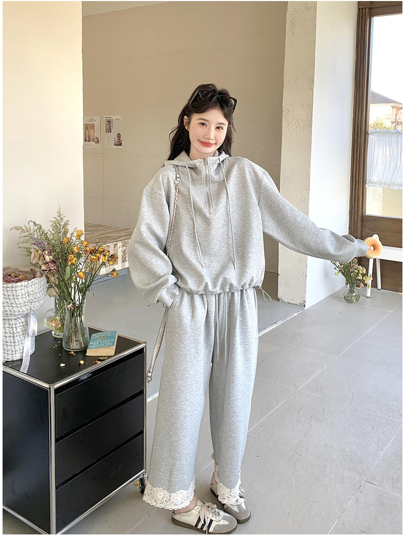 獨家訂製│2件式 韓系休閒感連帽上衣+蕾絲拼接造型闊腿褲(03H7939)