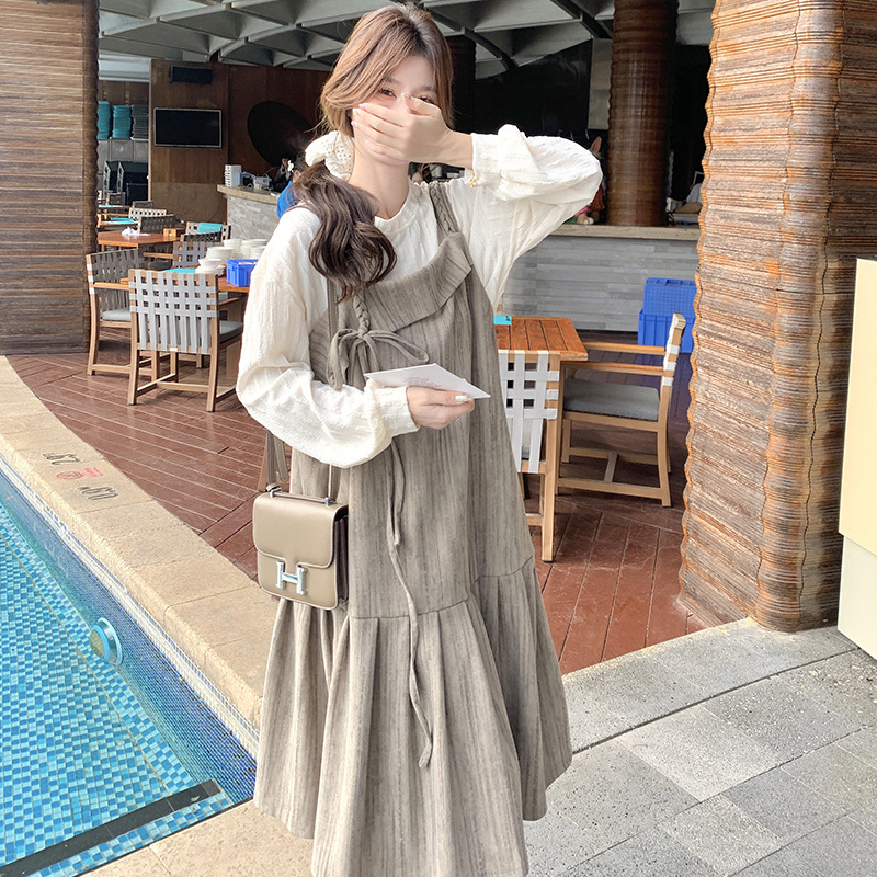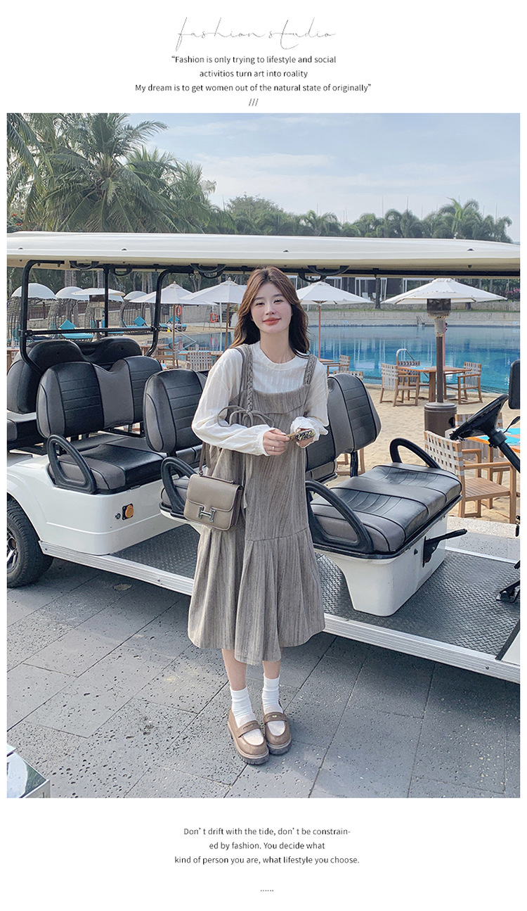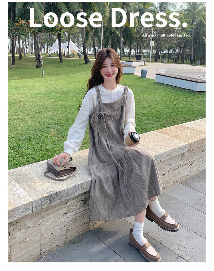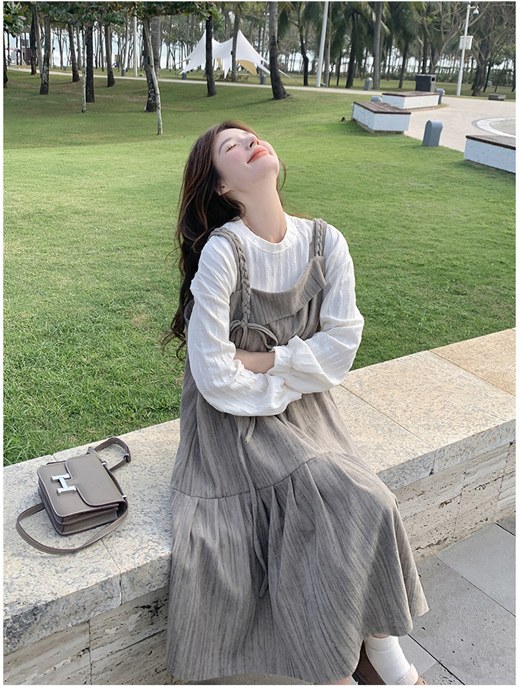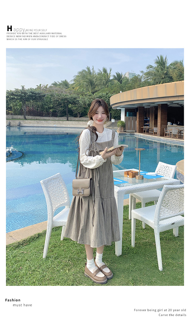 獨家訂製│2件式 韓系甜感上衣+編織肩帶吊帶裙(03H8136)