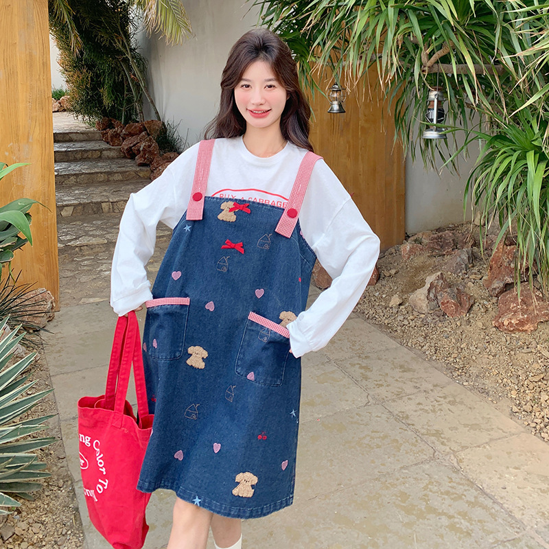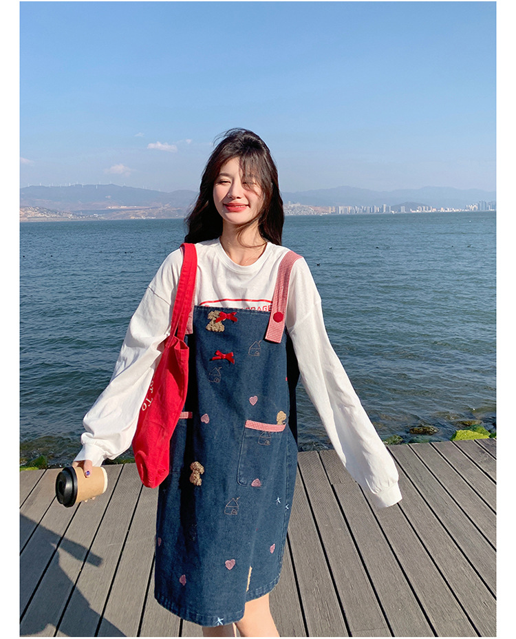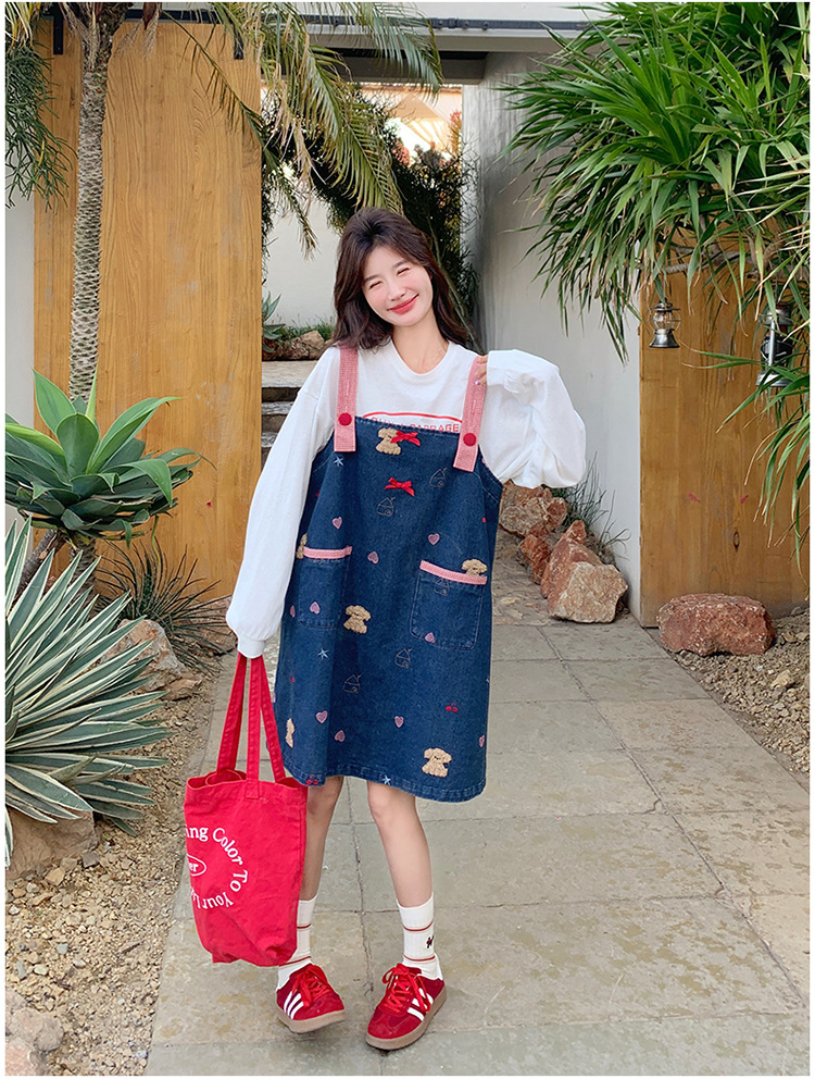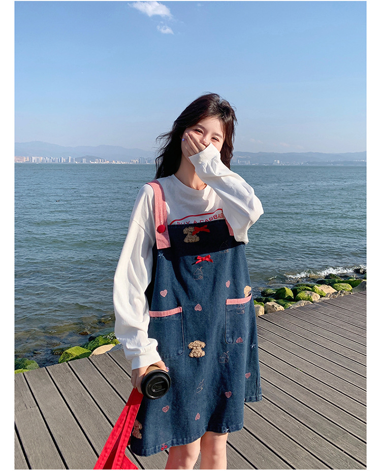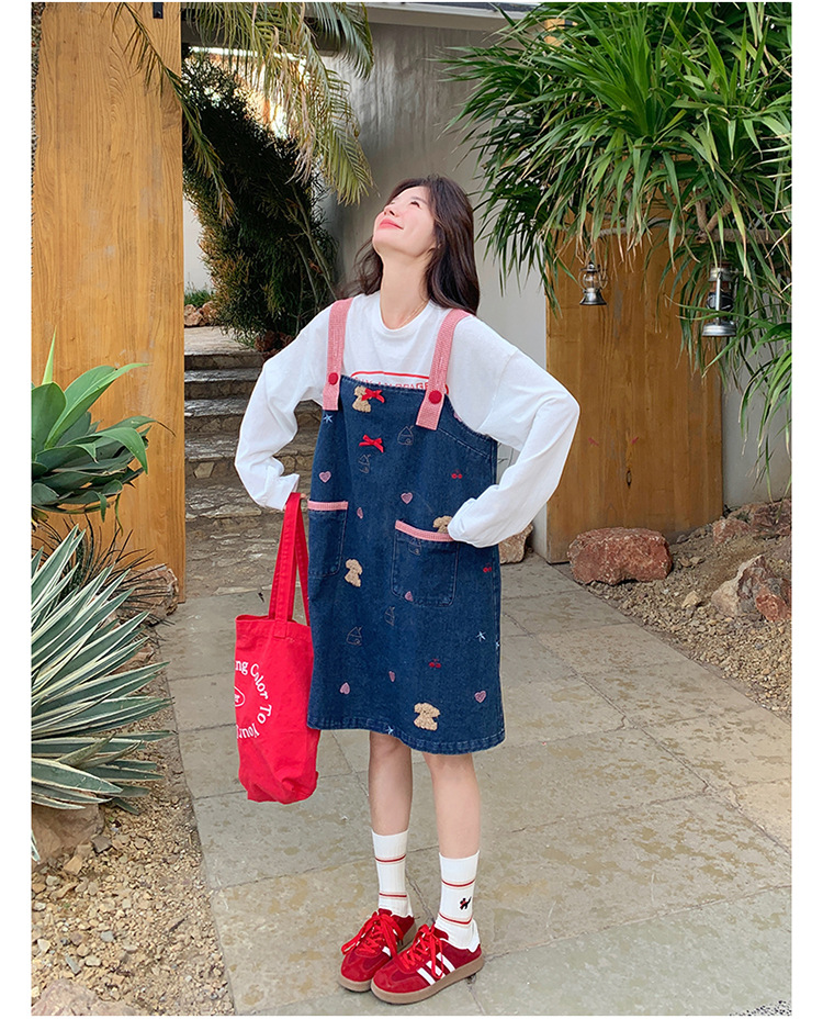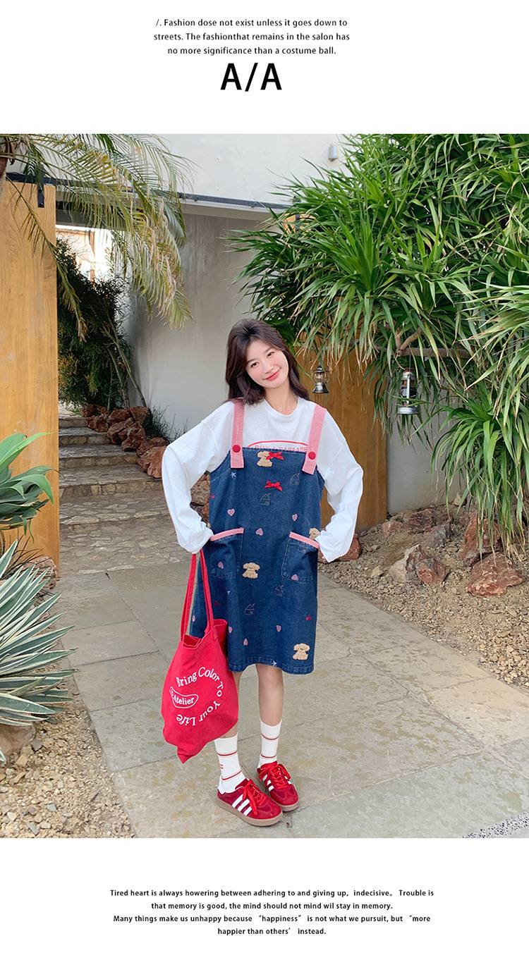 獨家訂製│2件式 韓系甜感印花T恤+勳貼刺繡吊帶裙(03H8165)