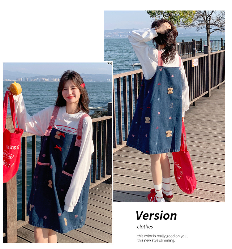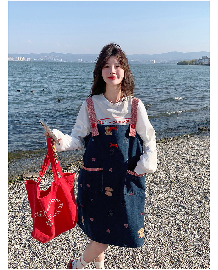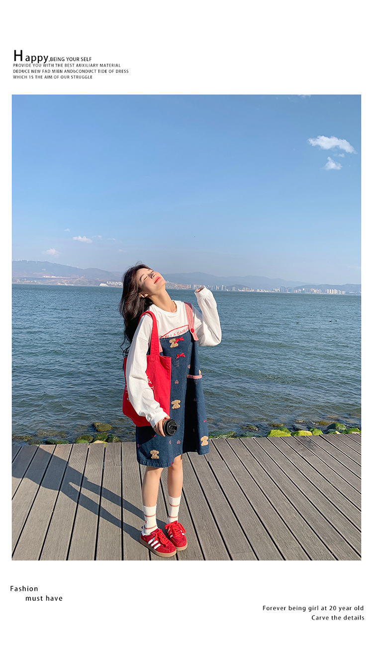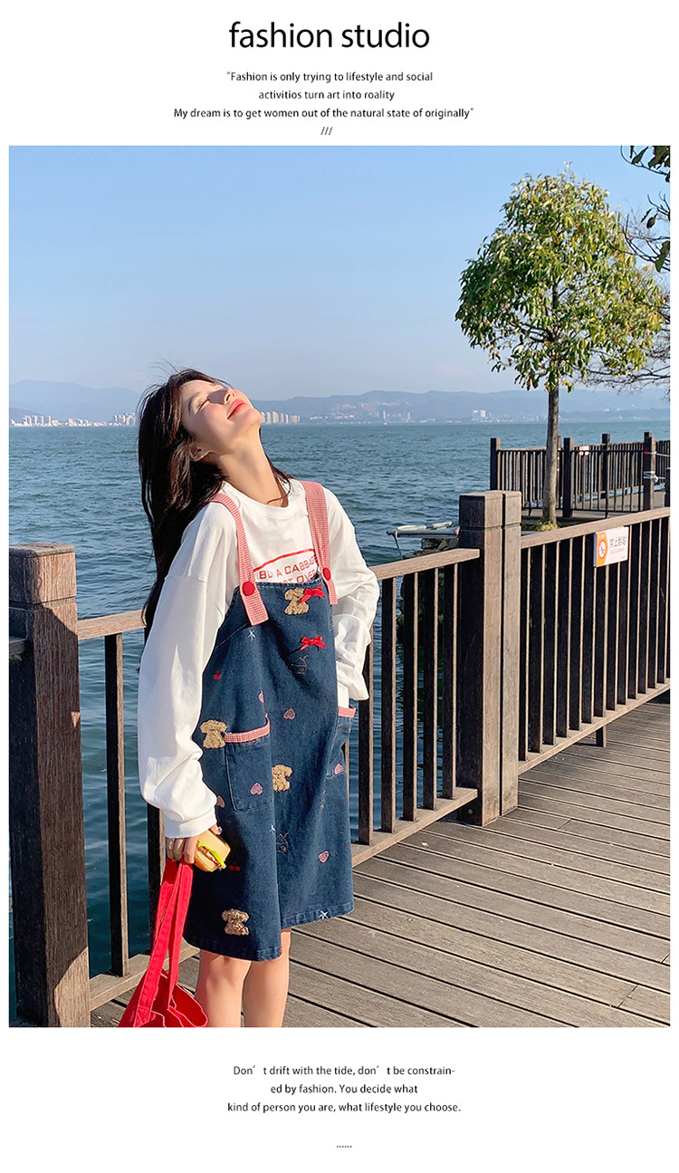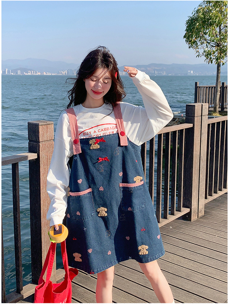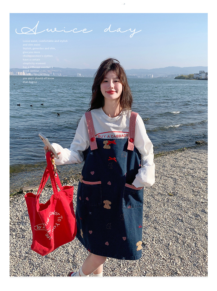 獨家訂製│2件式 韓系甜感印花T恤+勳貼刺繡吊帶裙(03H8165)