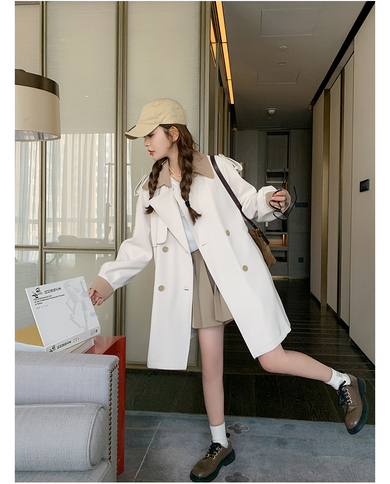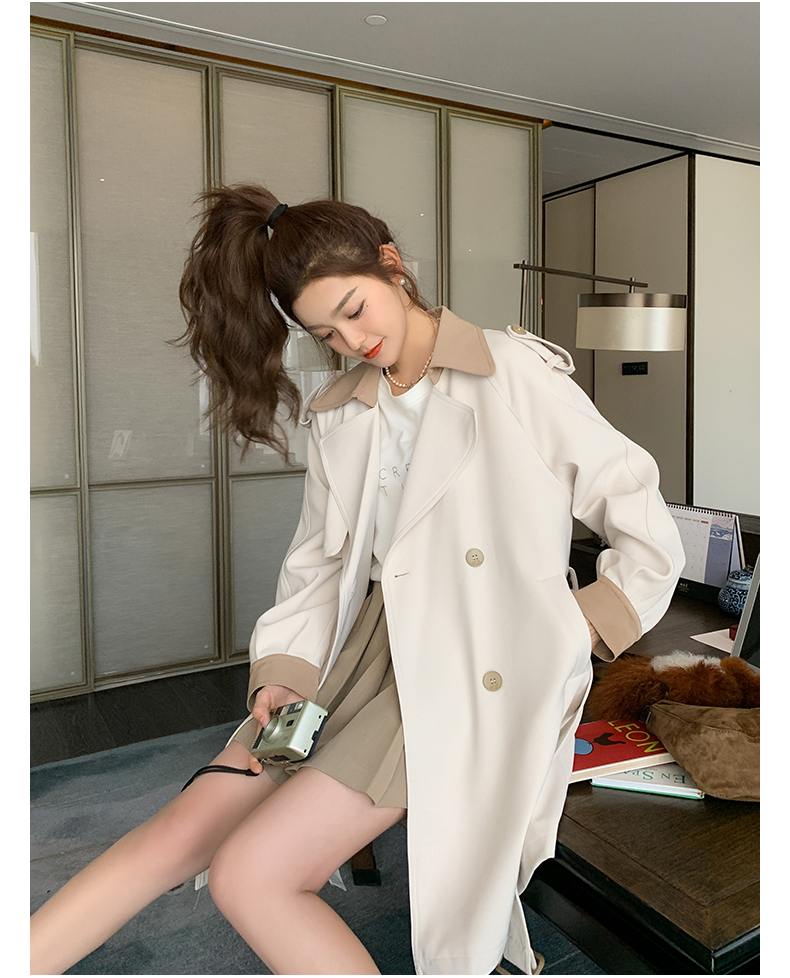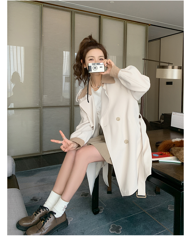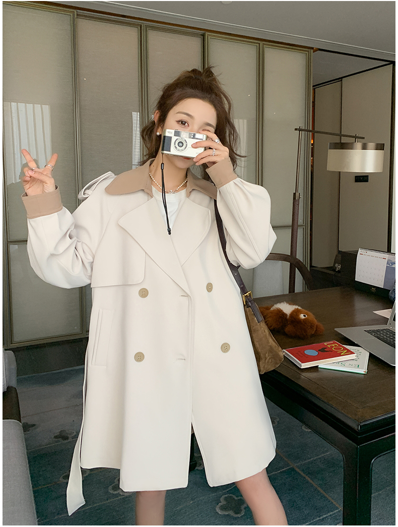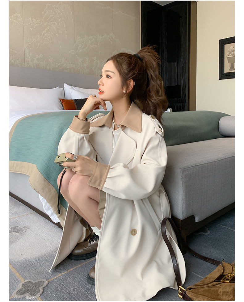 獨家訂製│簡約撞色翻領雙排扣繫帶風衣外套(03TA3071)