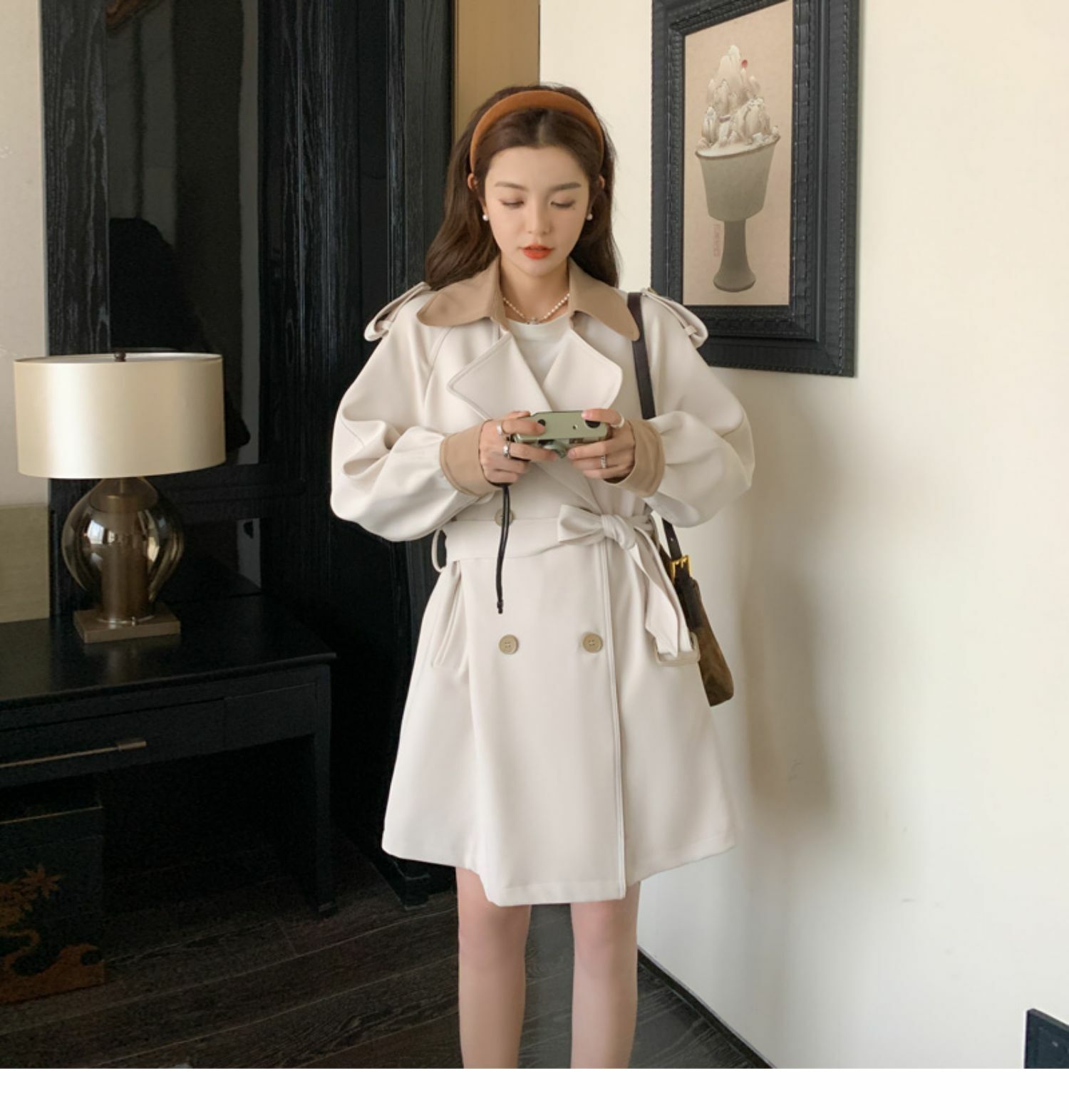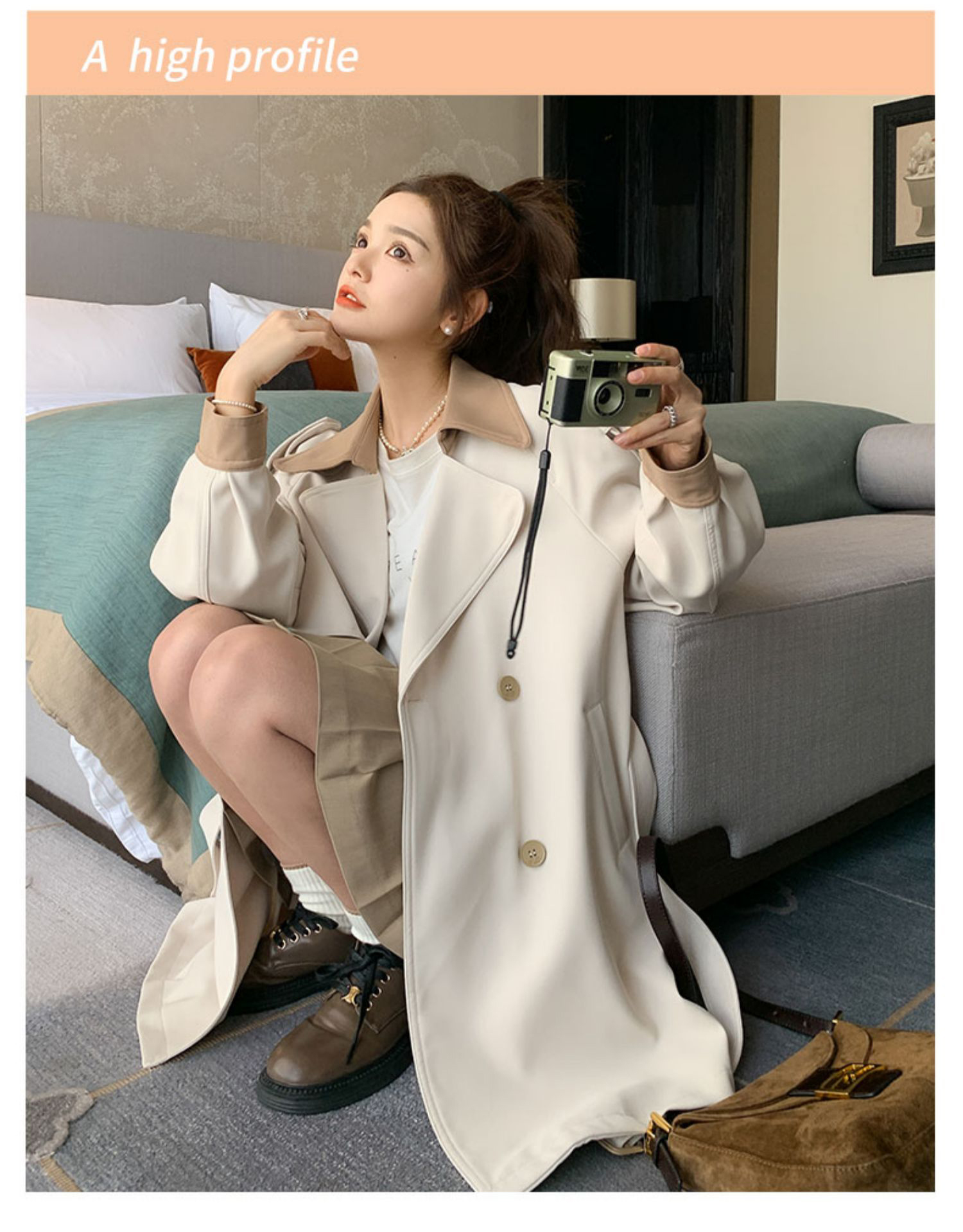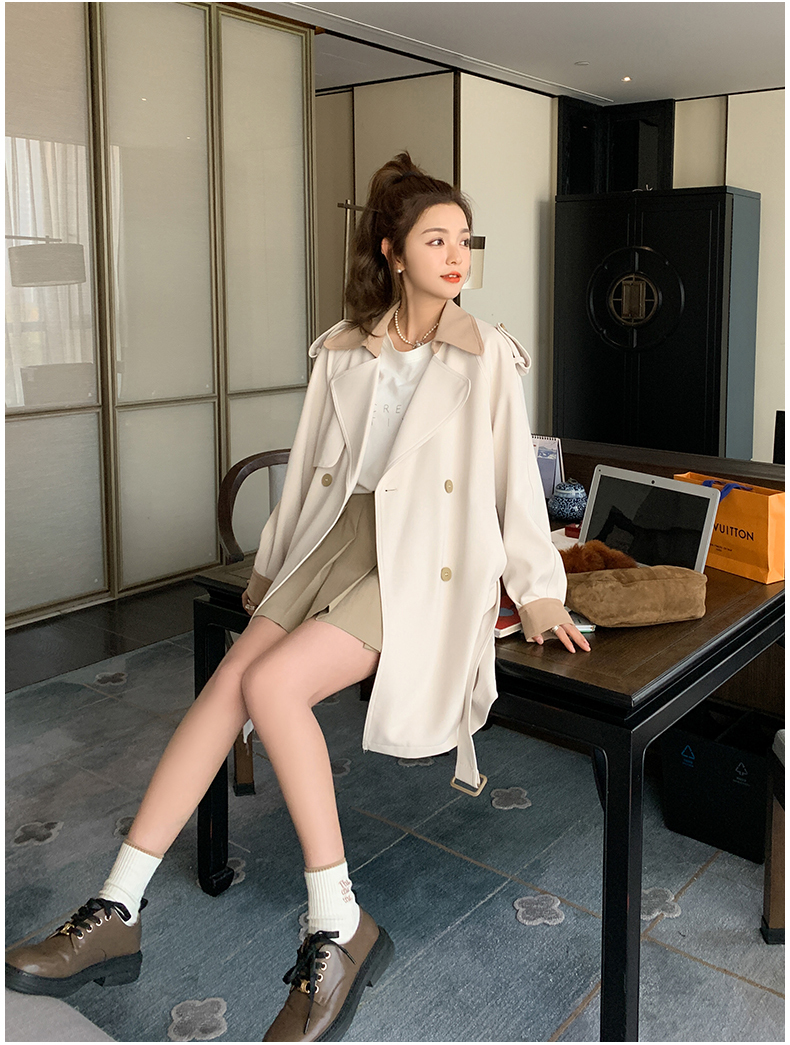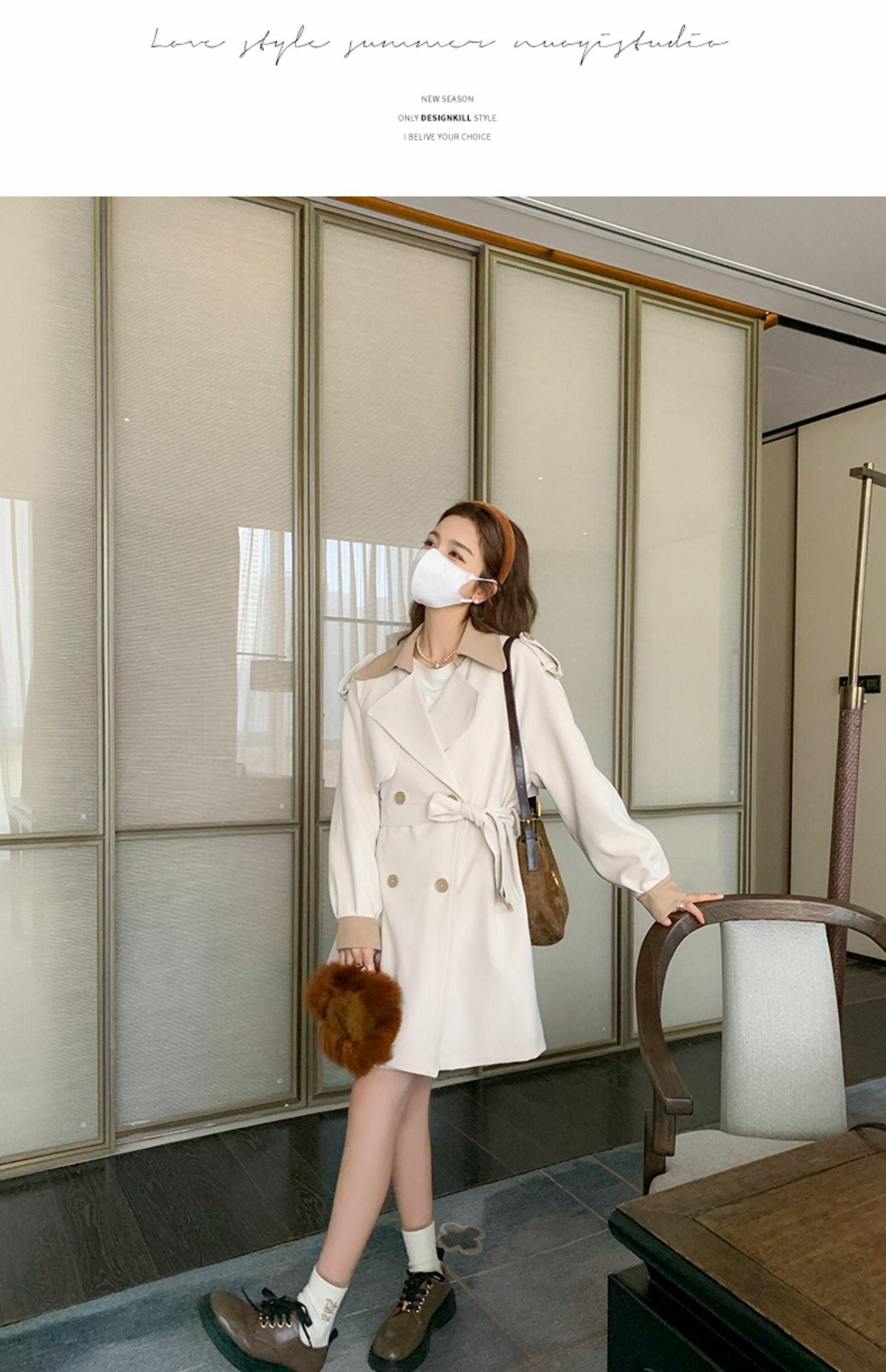 獨家訂製│簡約撞色翻領雙排扣繫帶風衣外套(03TA3071)