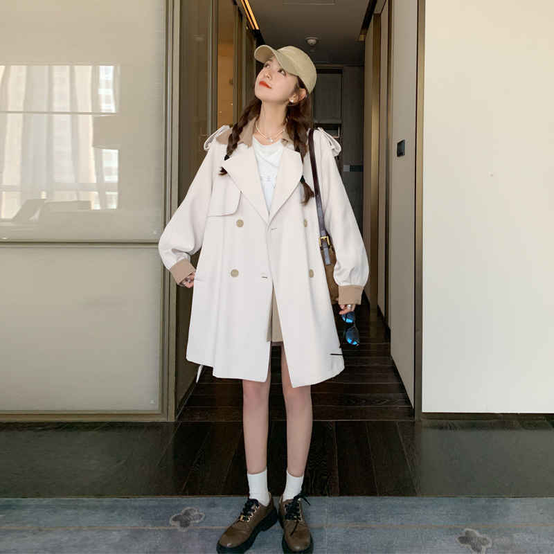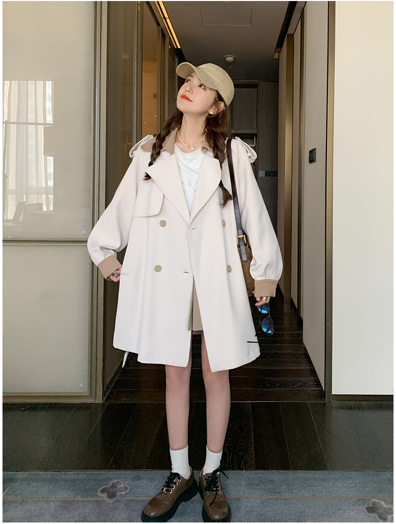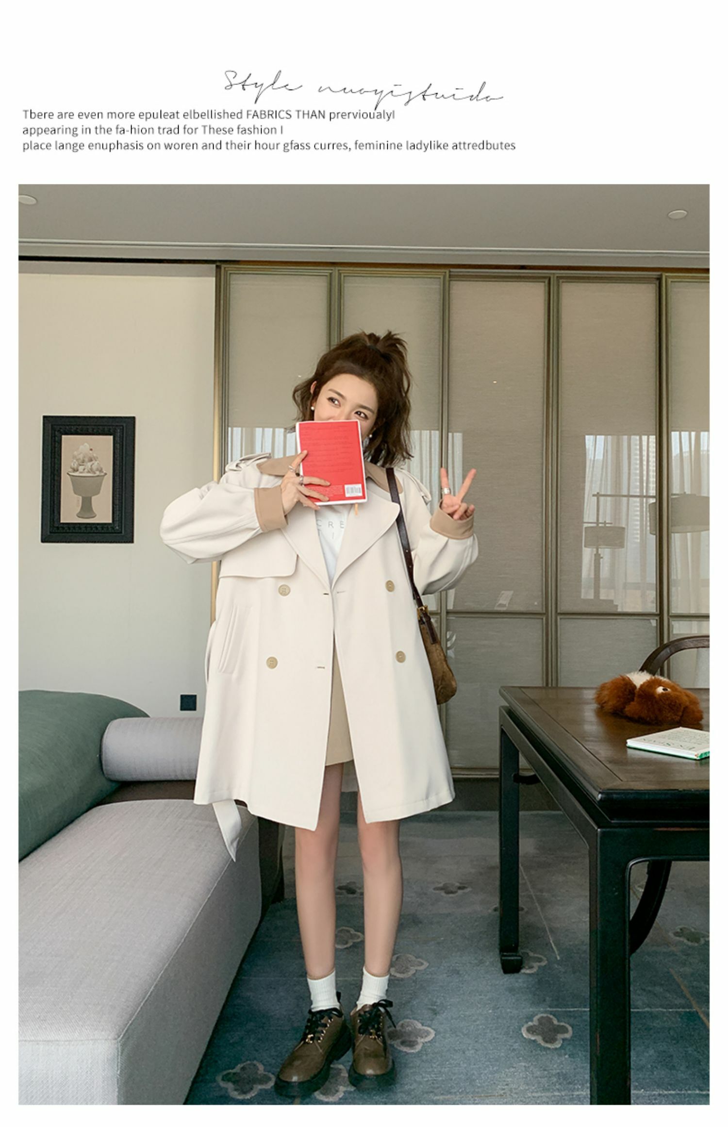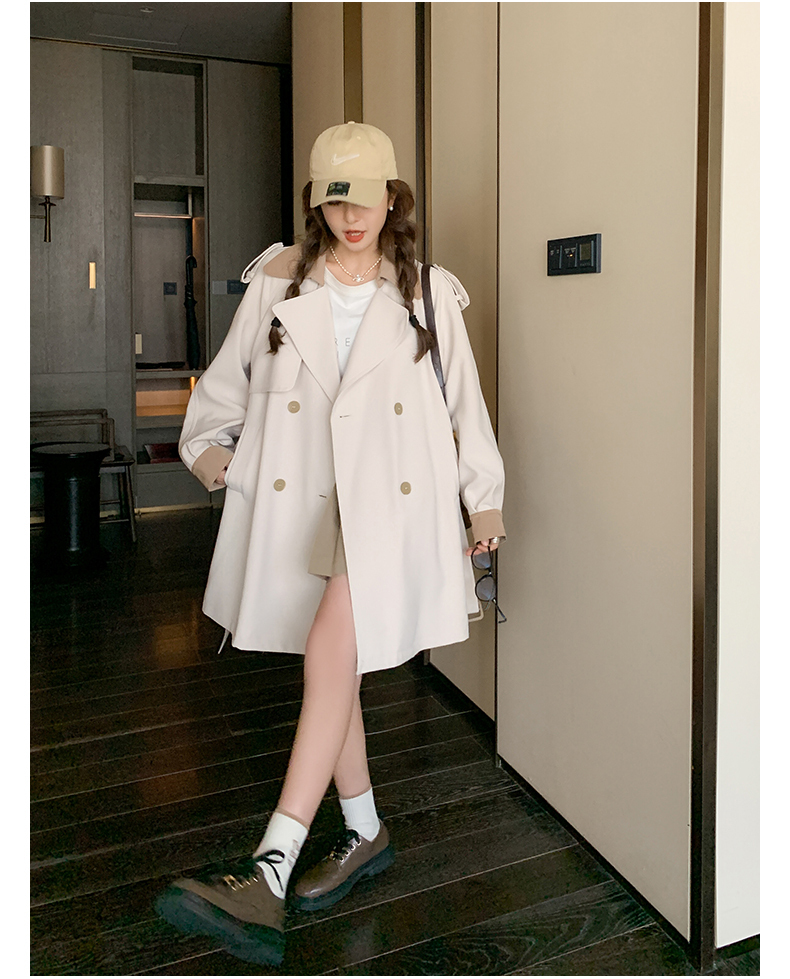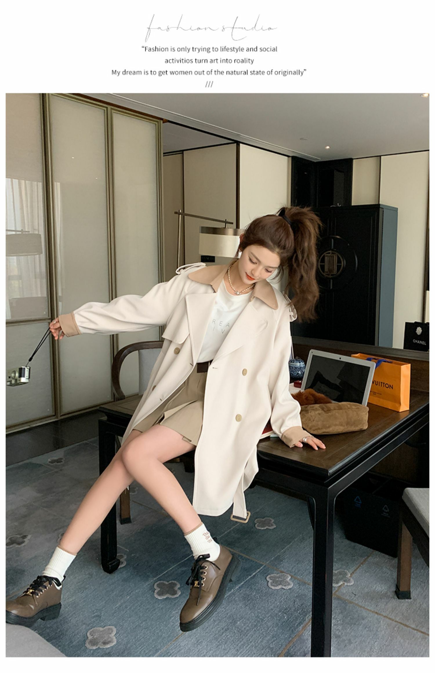 獨家訂製│簡約撞色翻領雙排扣繫帶風衣外套(03TA3071)