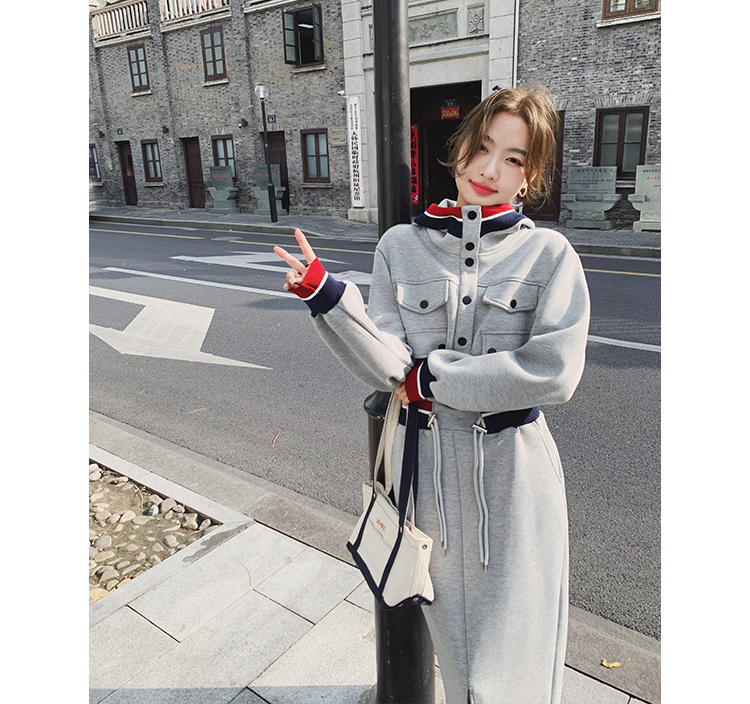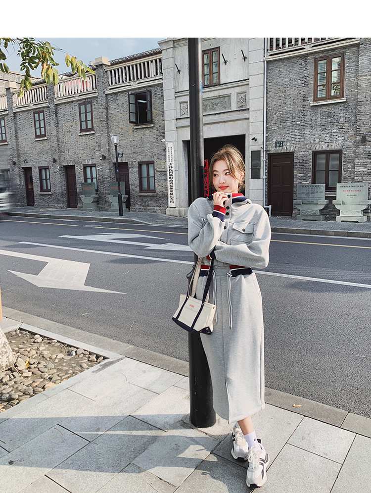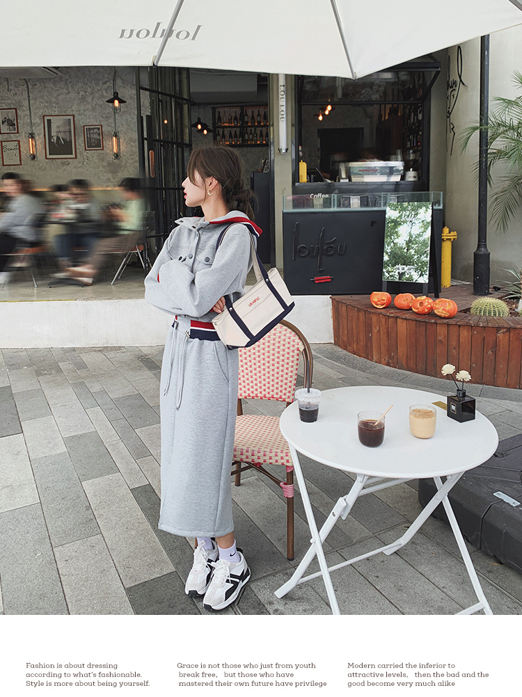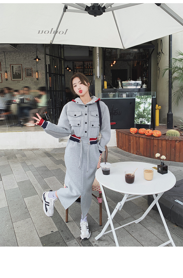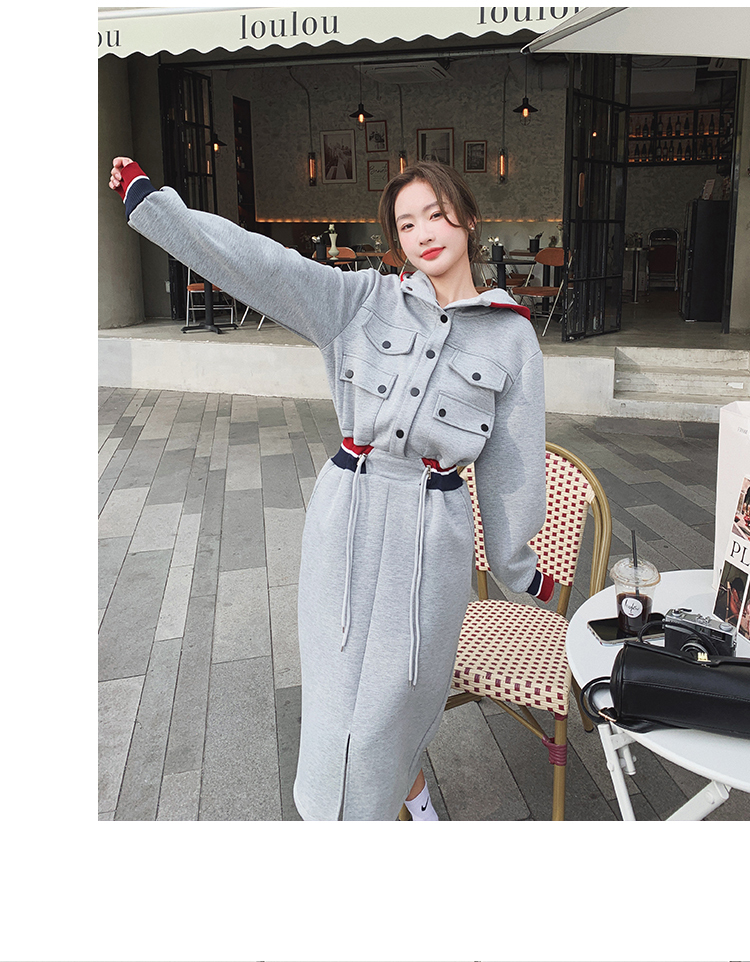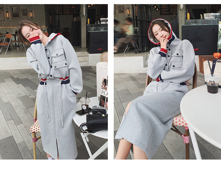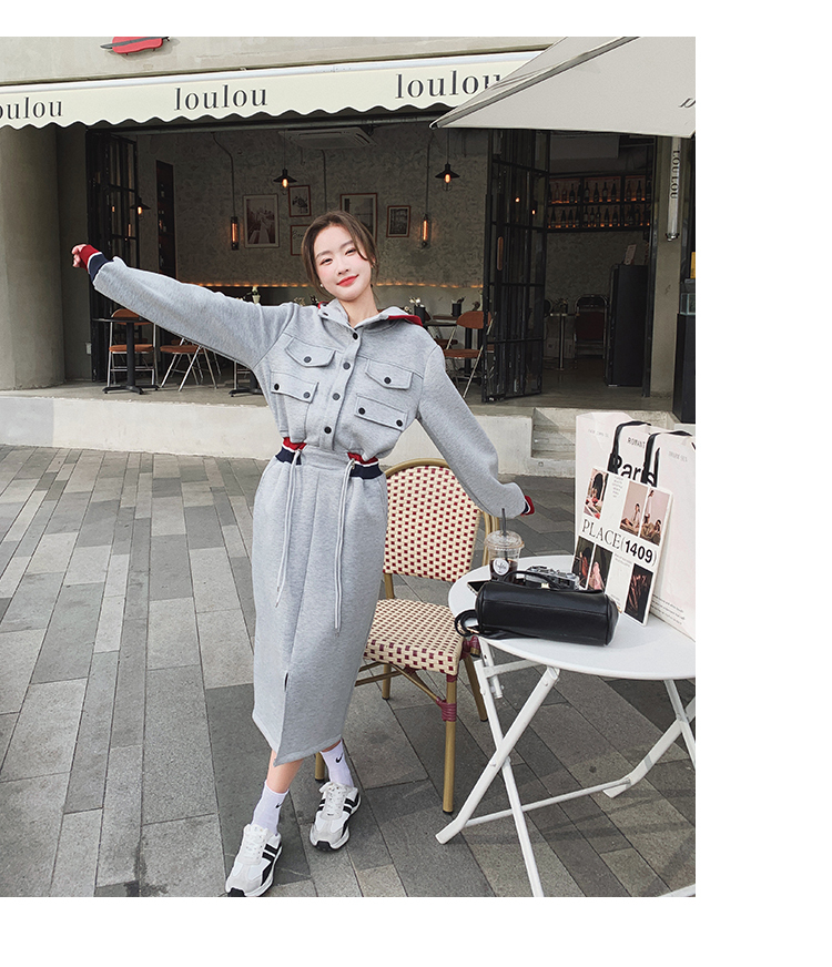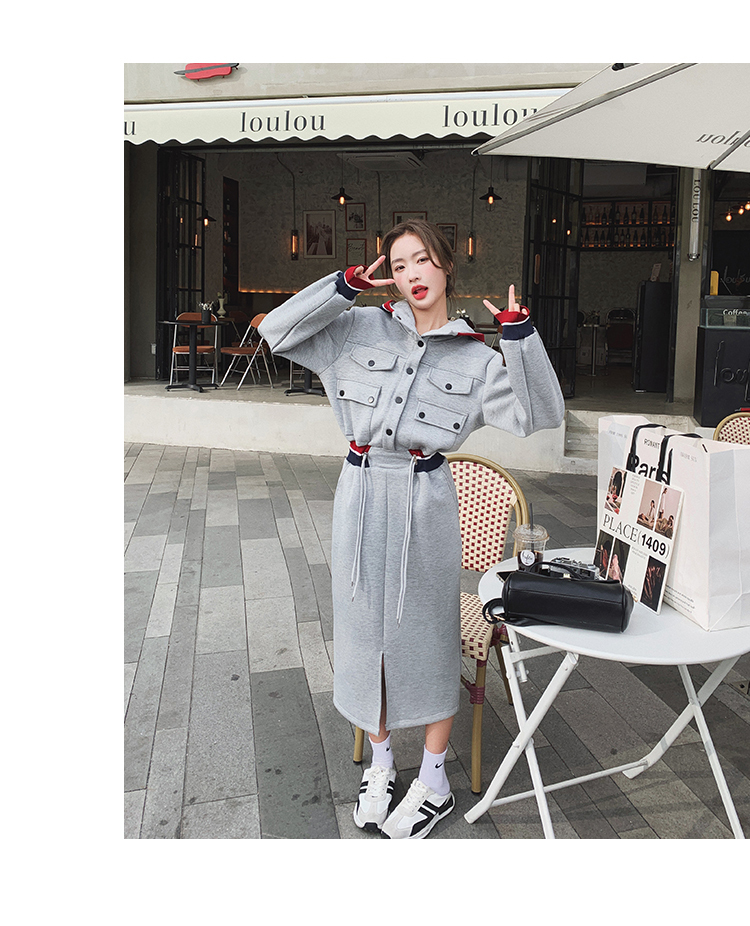獨家訂製│率性舒適連帽抽繩收腰開叉連衣裙(03TA3086)