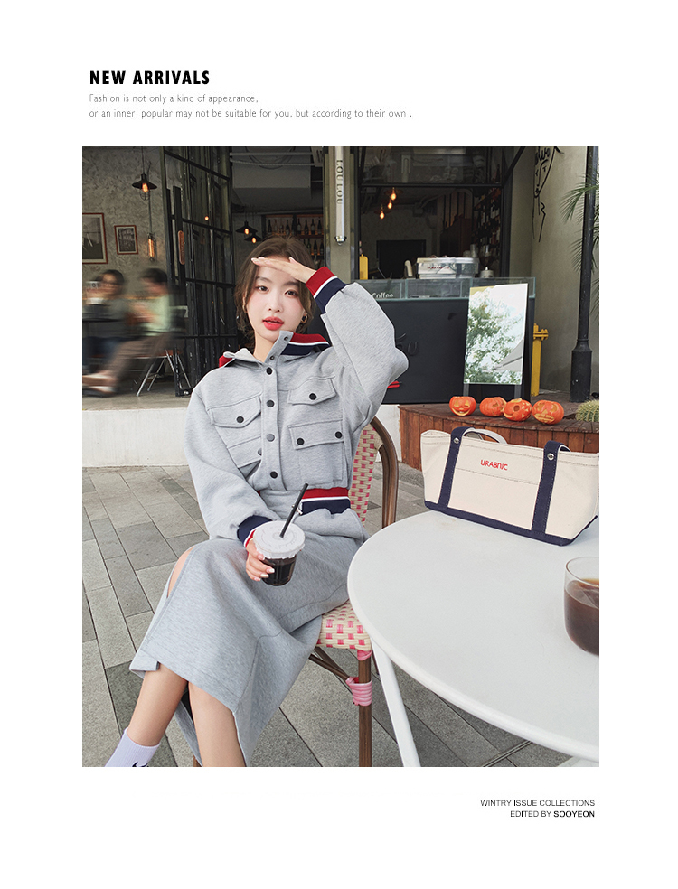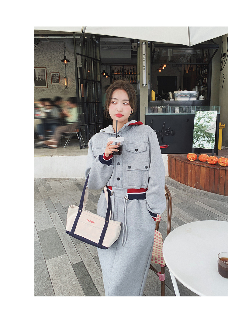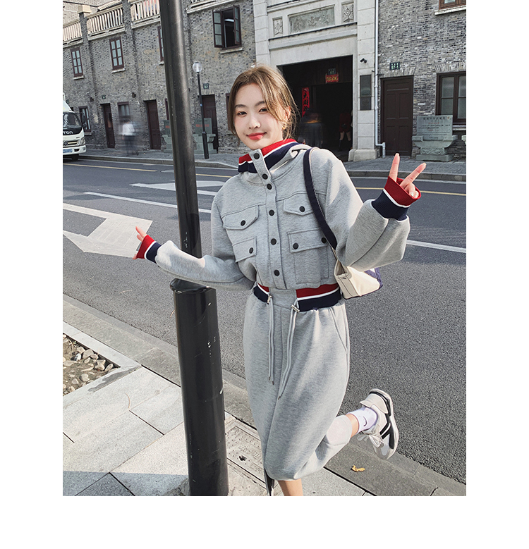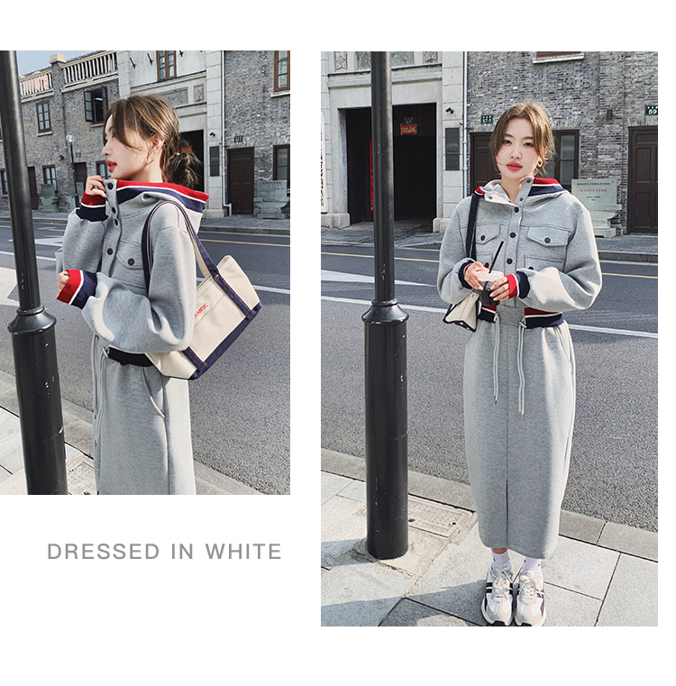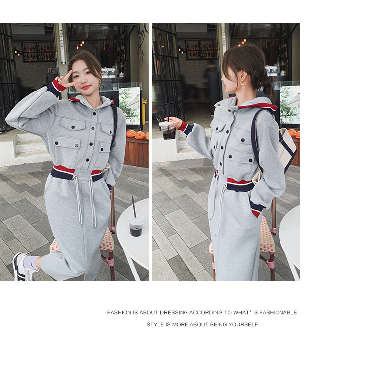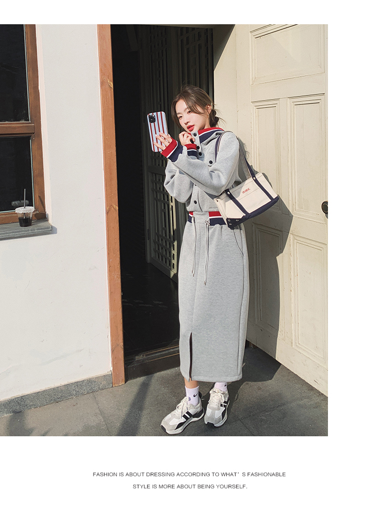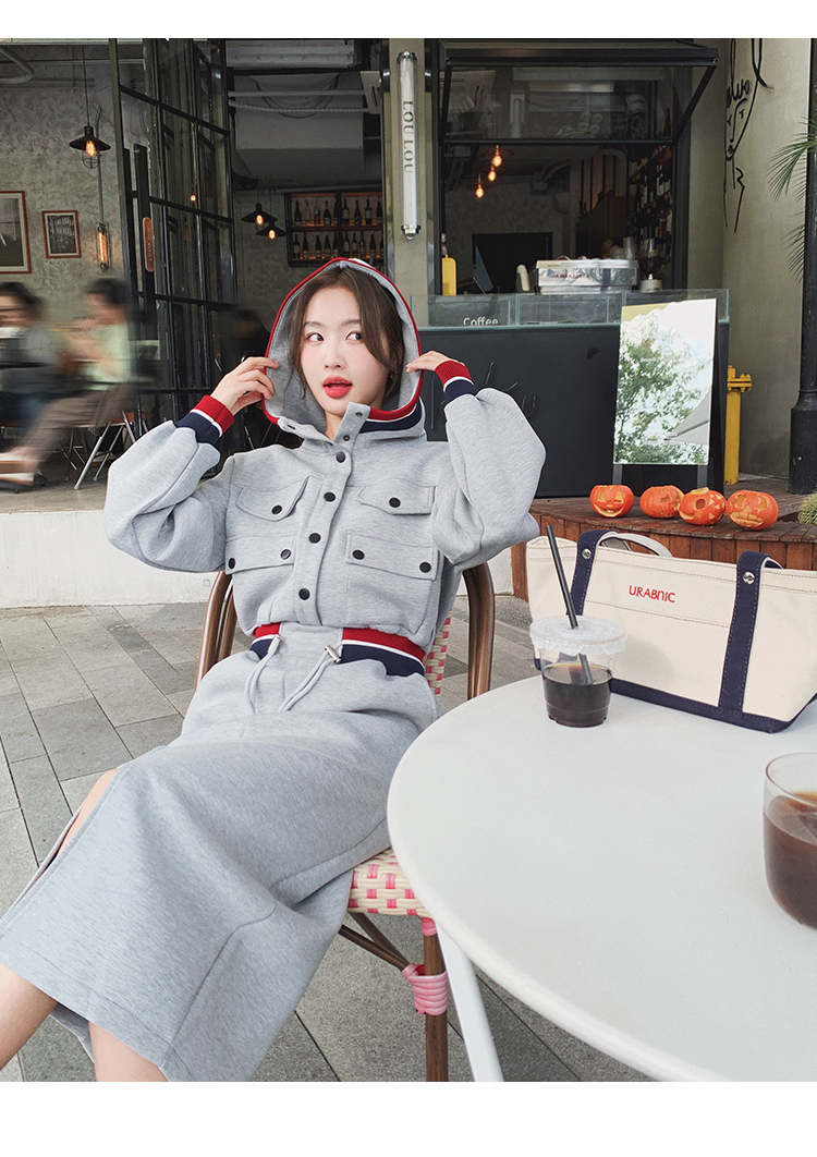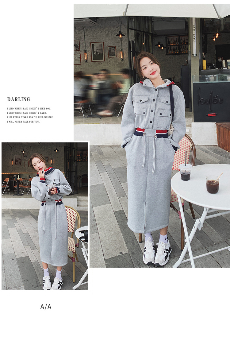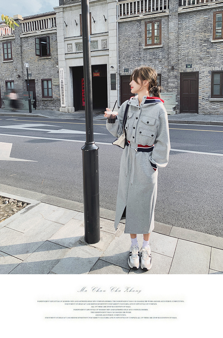 獨家訂製│率性舒適連帽抽繩收腰開叉連衣裙(03TA3086)